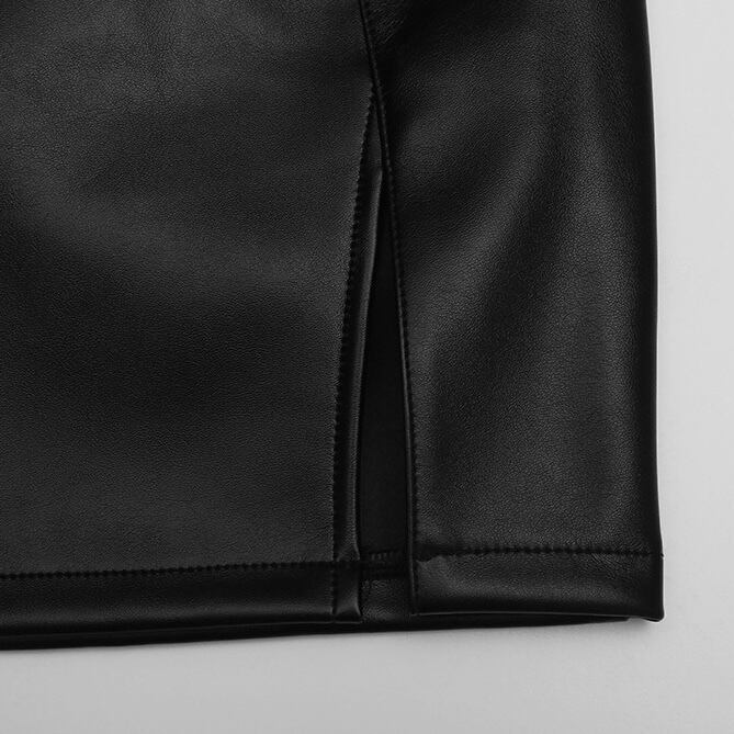 【bottoms】スリットレザーミニスカート KQ0357