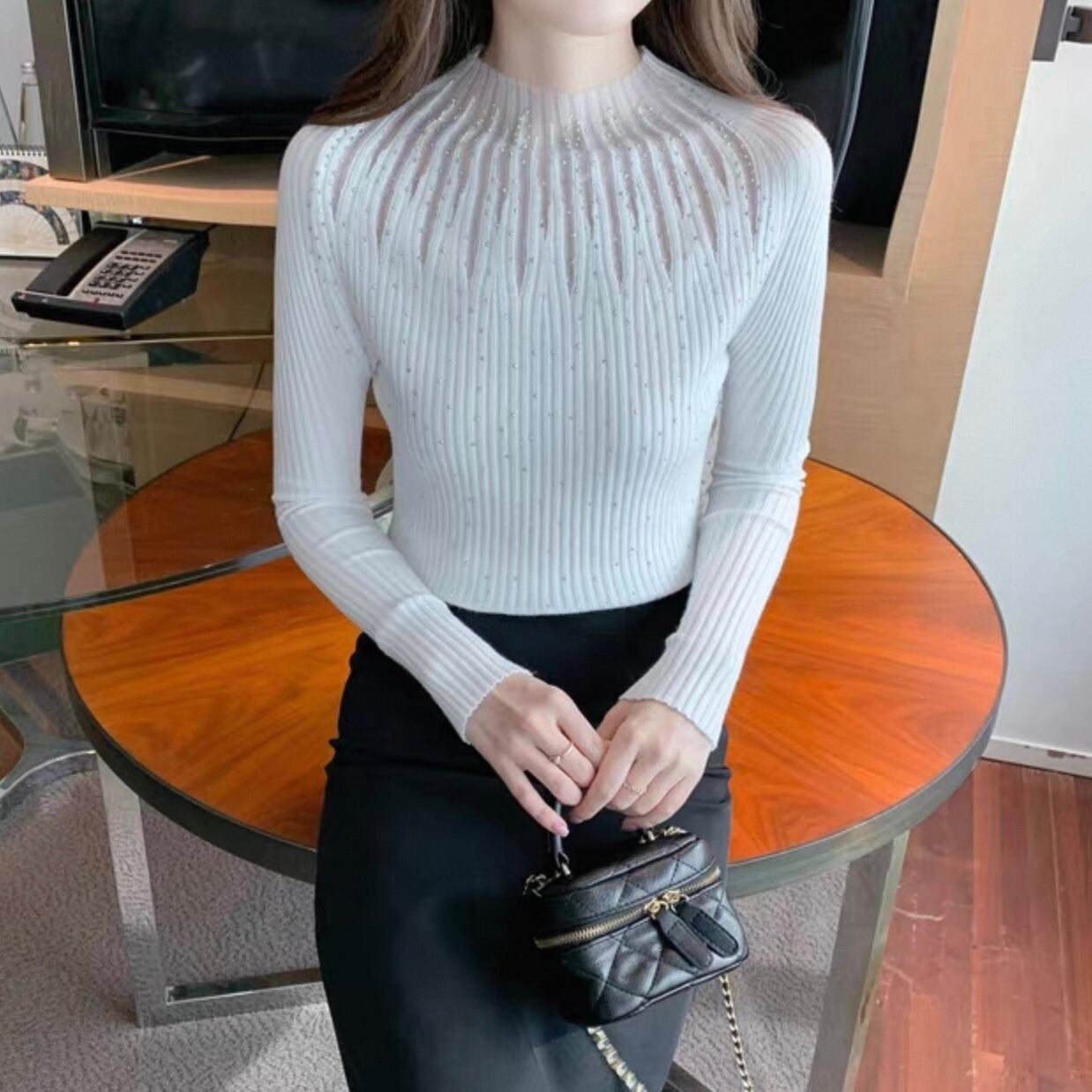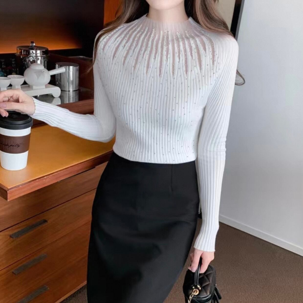 【tops】ハーフネックシースルートップス3色 KQ0361