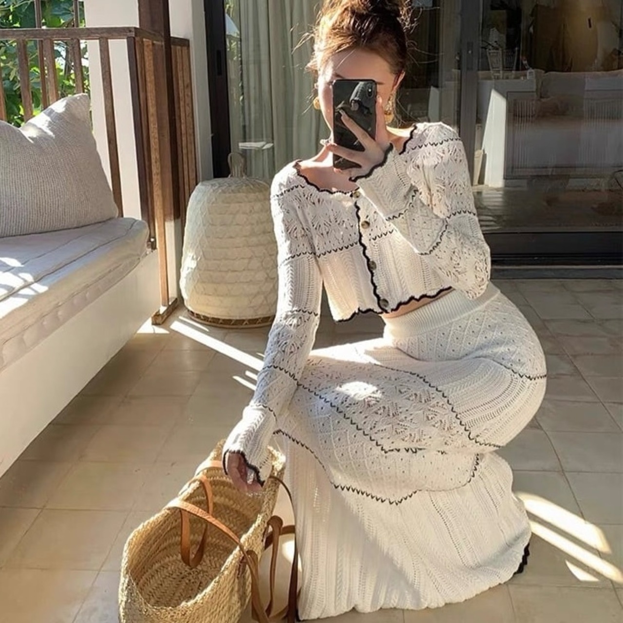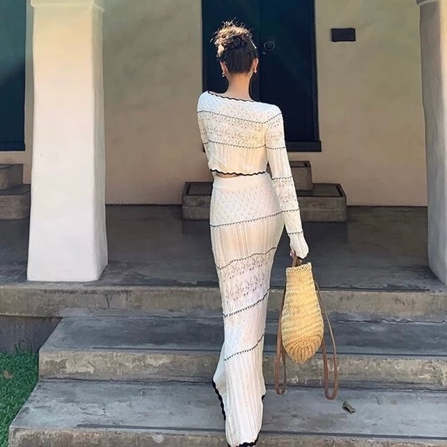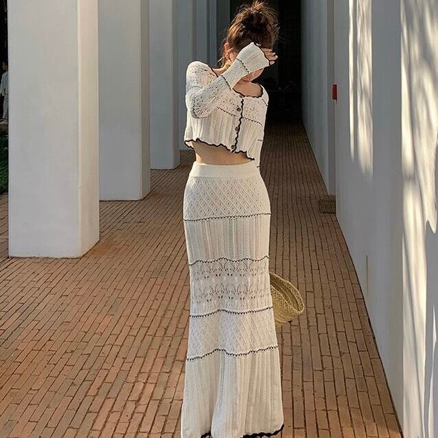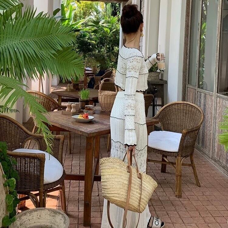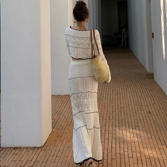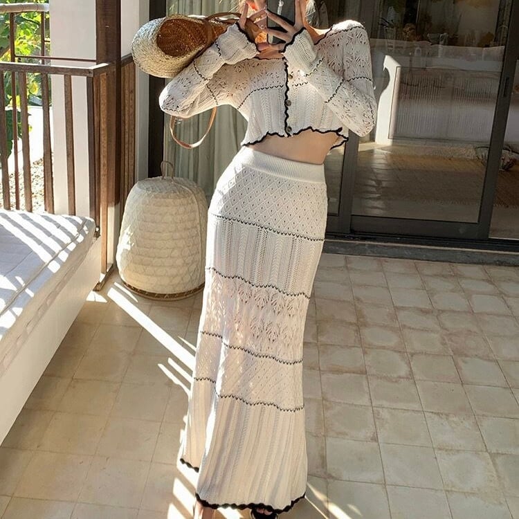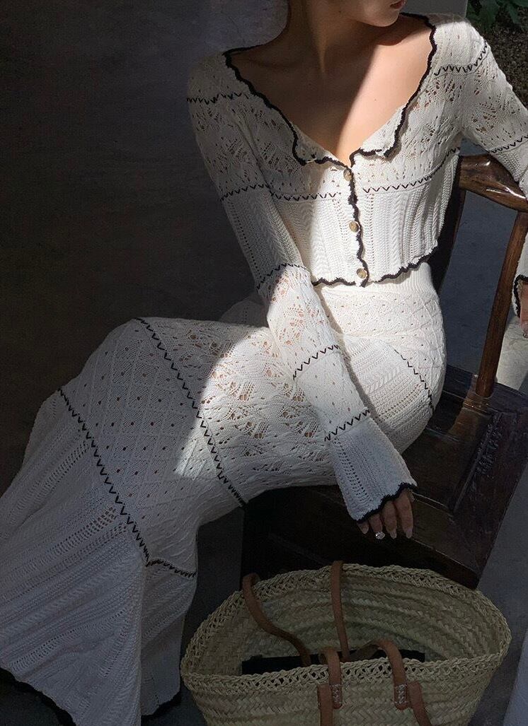 【set】刺繍シースルーカーディガン×刺繍シースルーロングスカート KQ0364