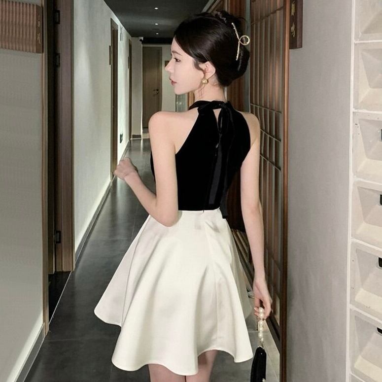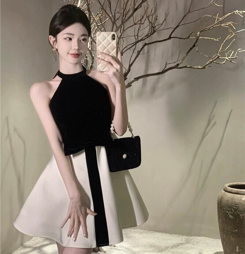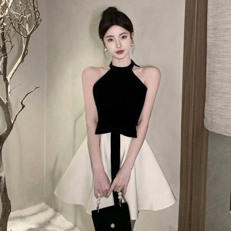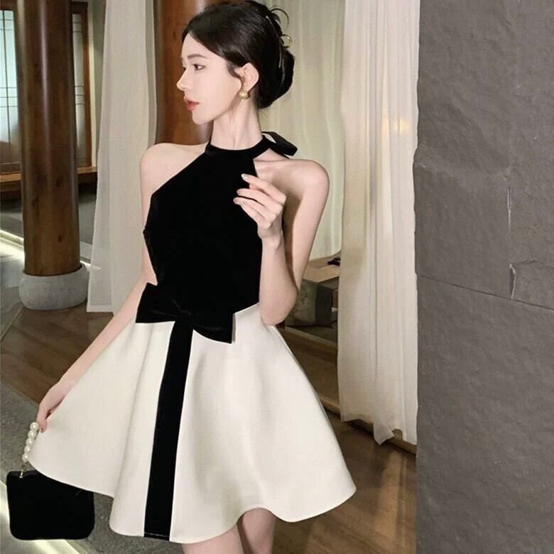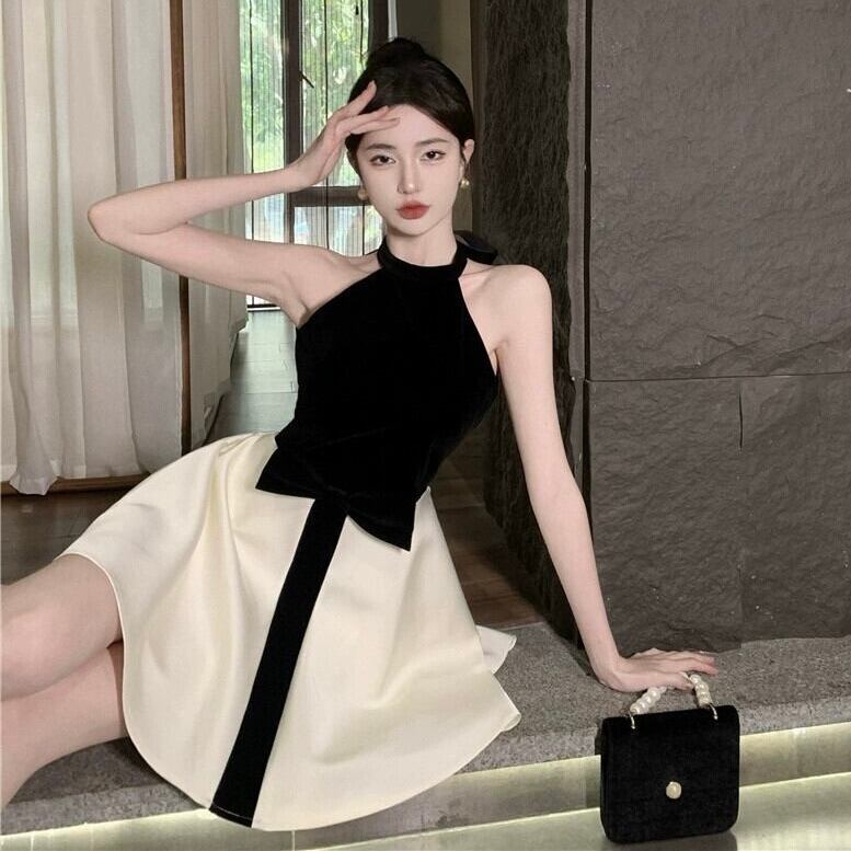【dress】オフショルダーホルターネックリボンワンピース KQ0368