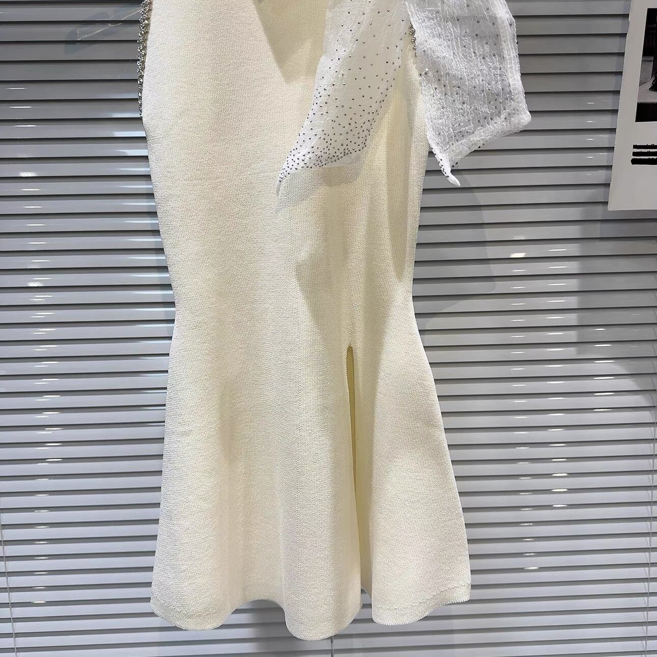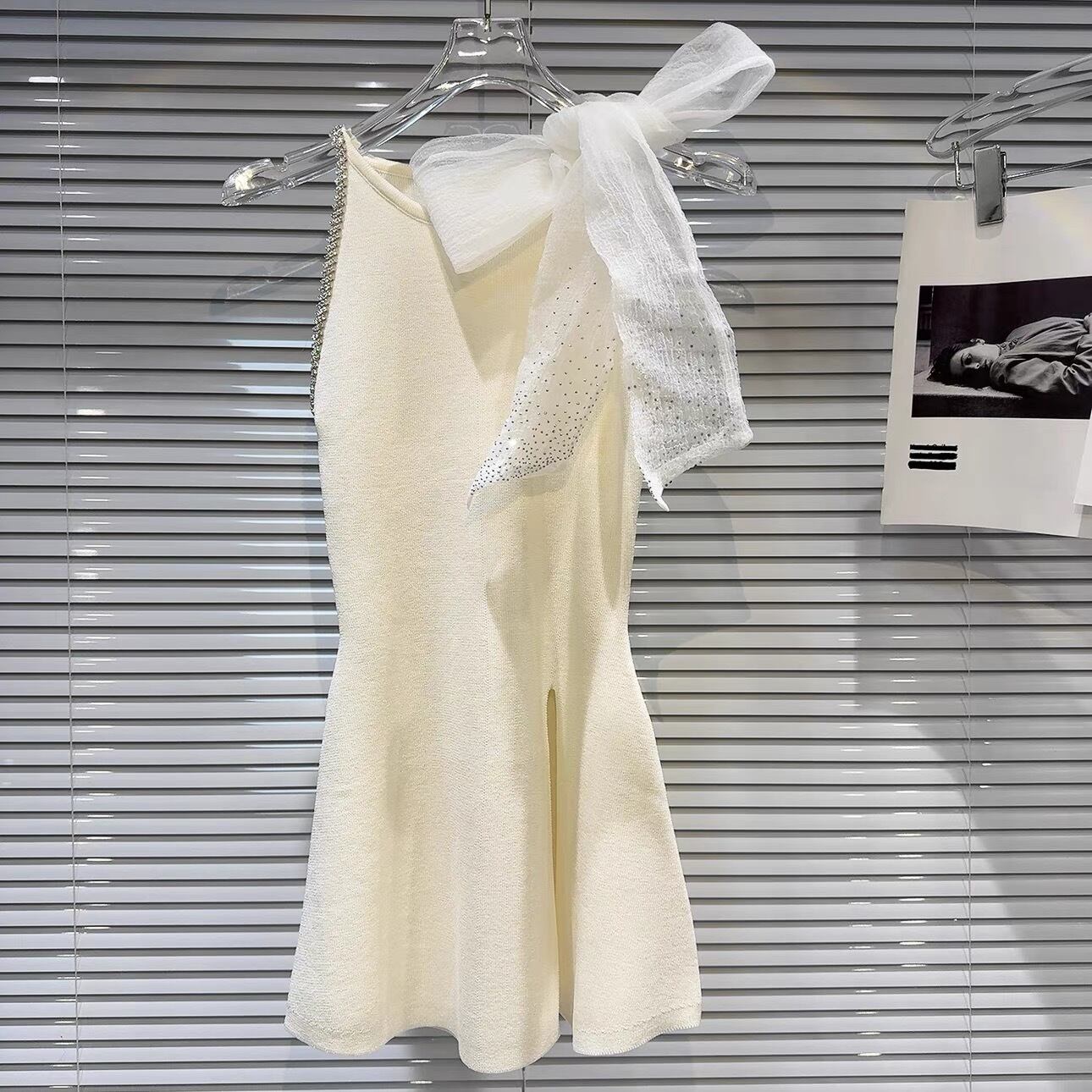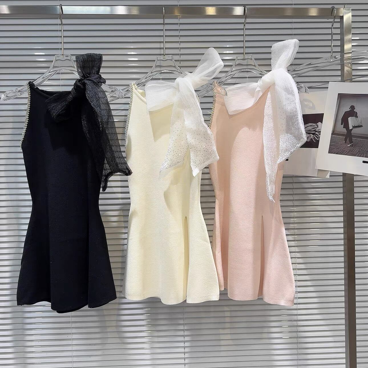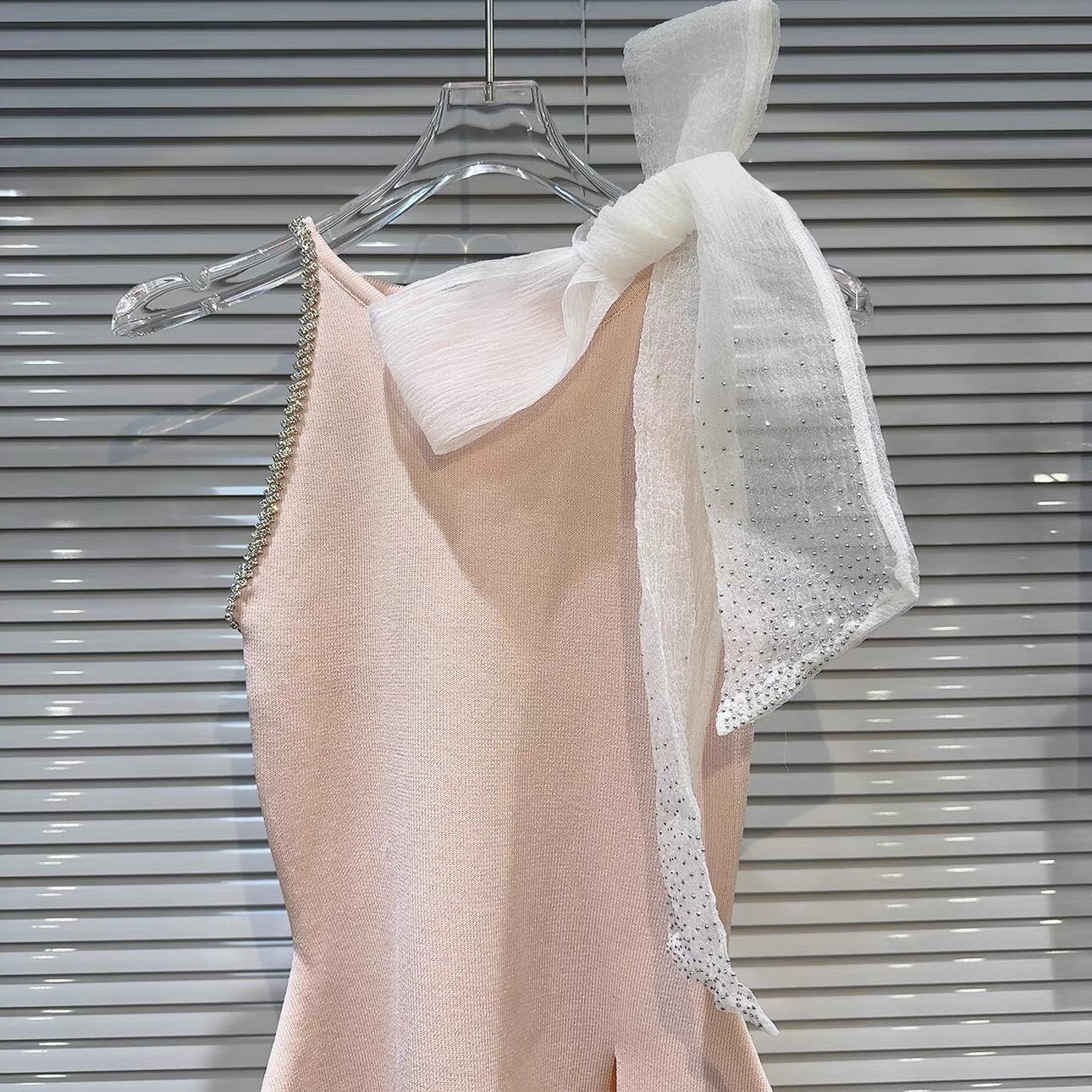 【tops】スリット入りリボンビジューニットトップス3色 OR0166