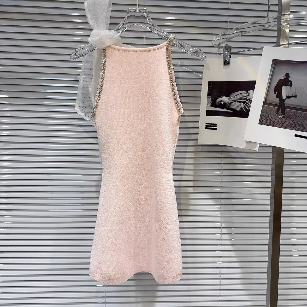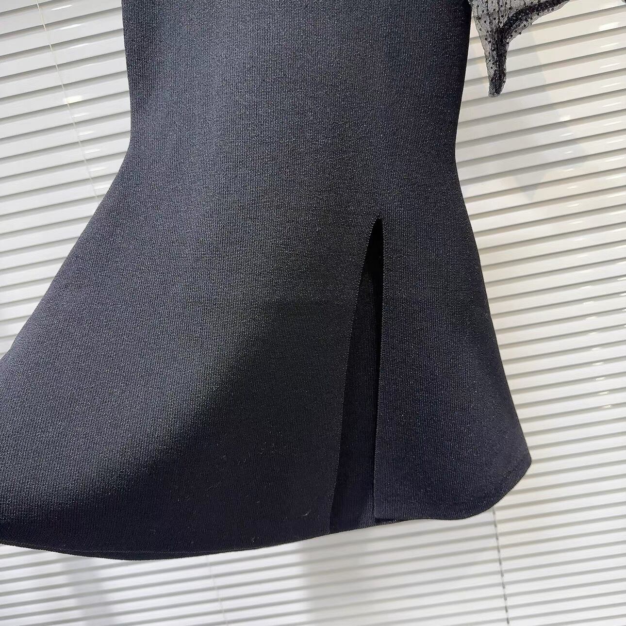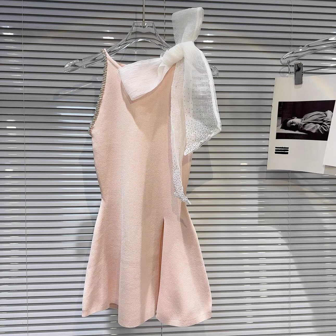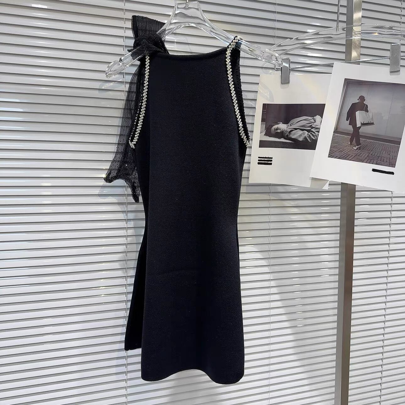 【tops】スリット入りリボンビジューニットトップス3色 OR0166