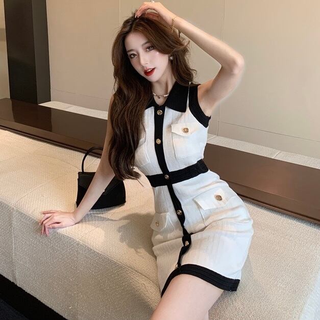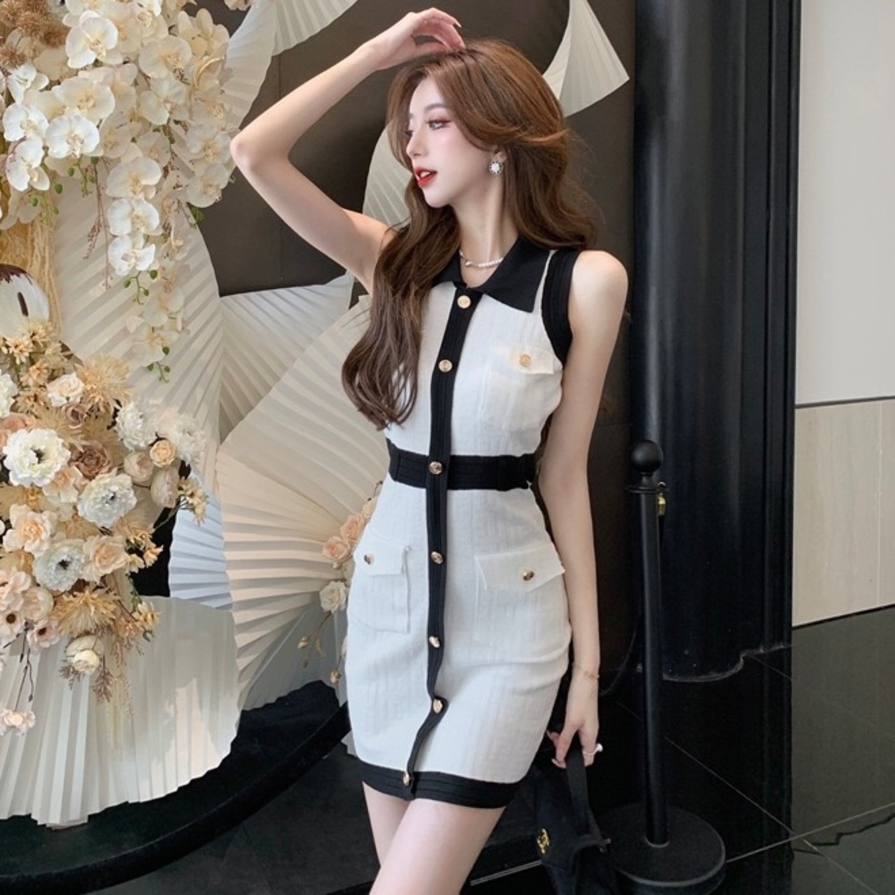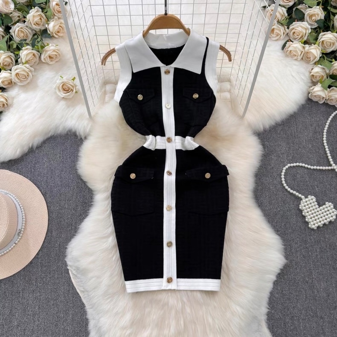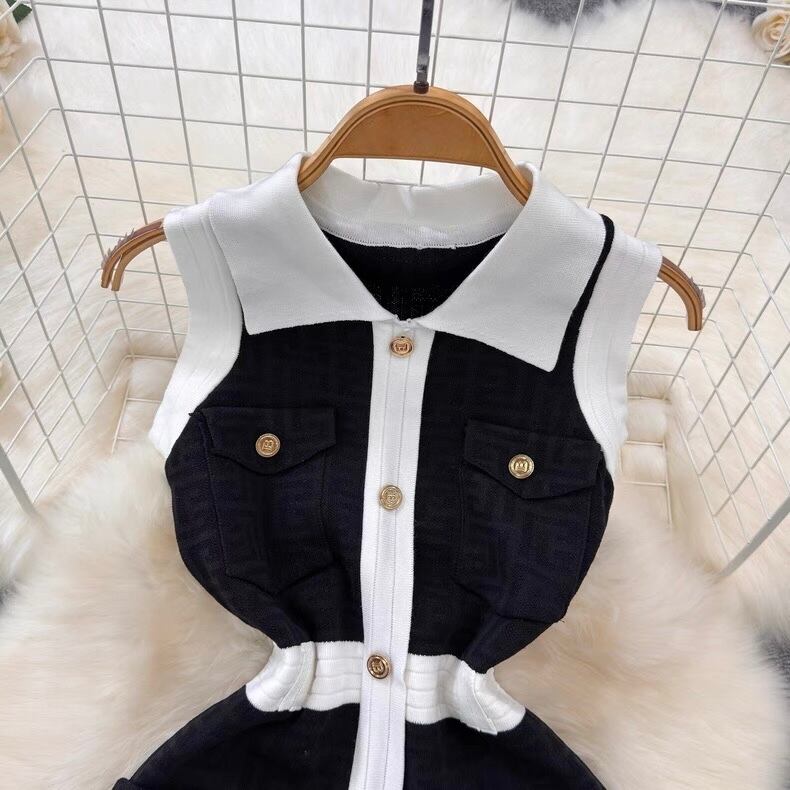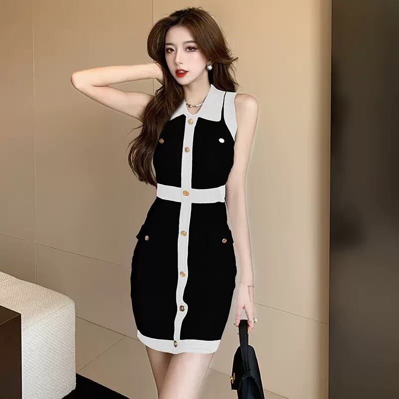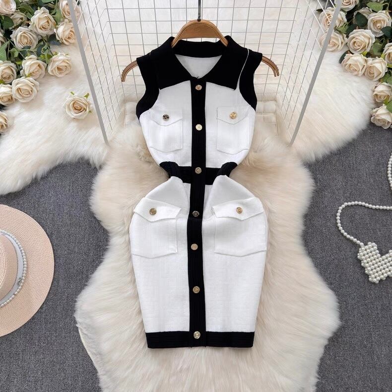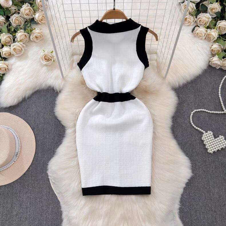 【dress】配色ノースリーブニットワンピース2色 OR0170