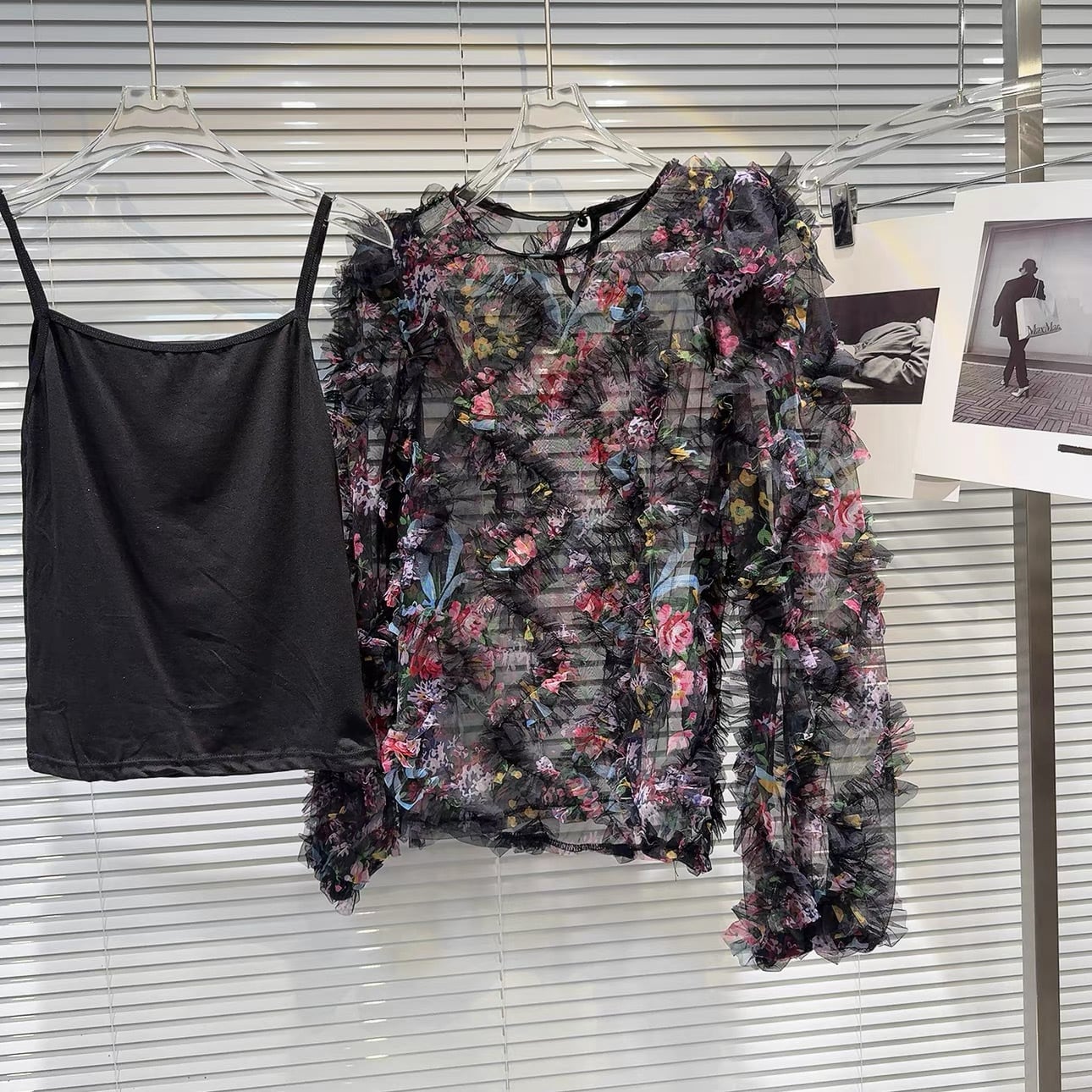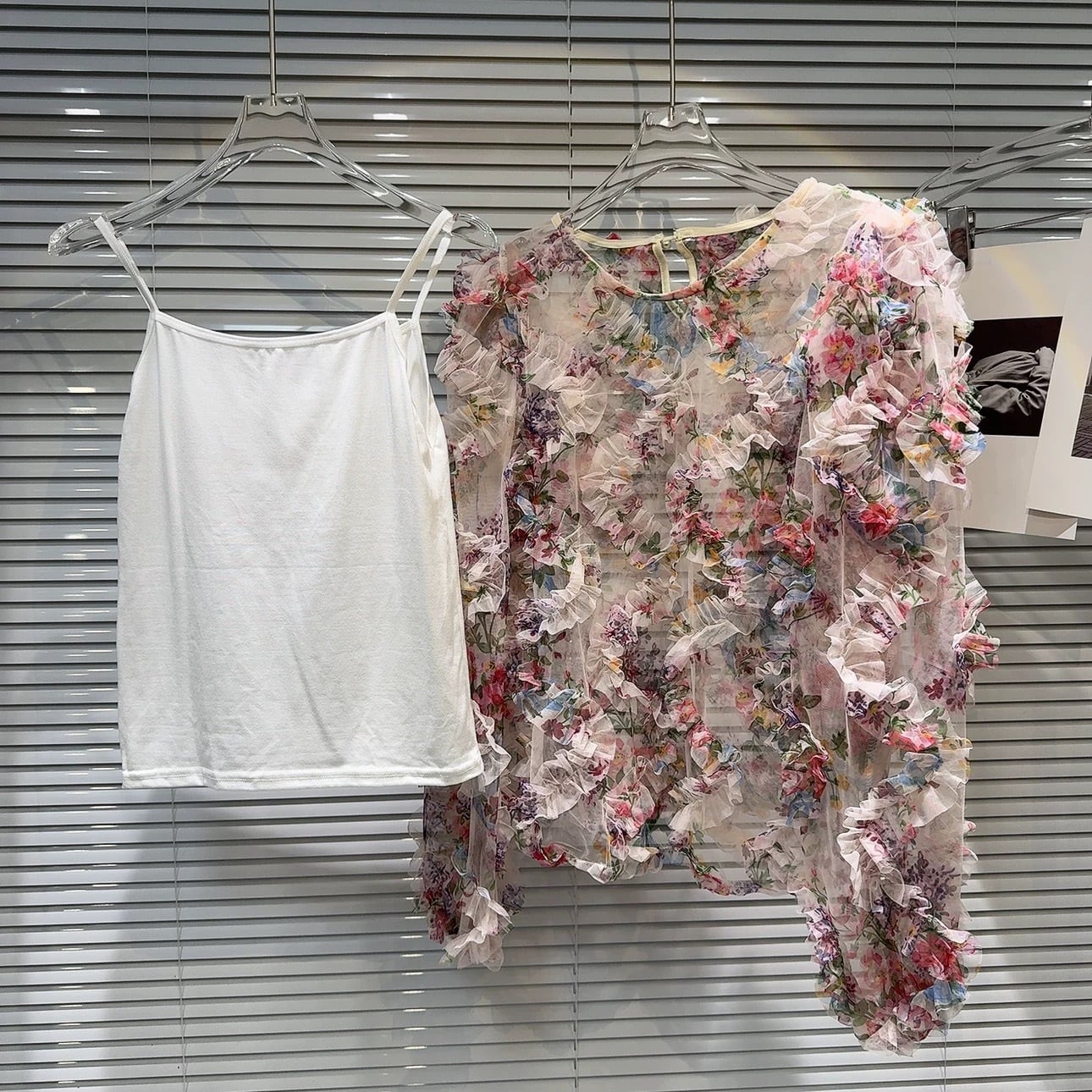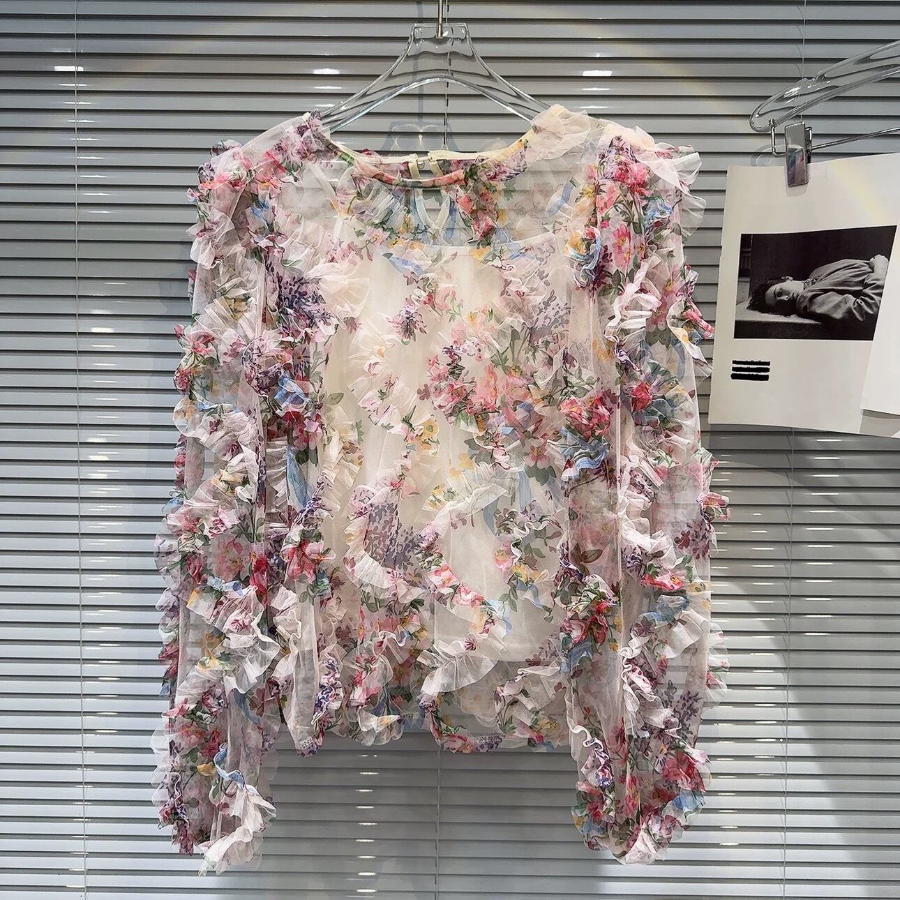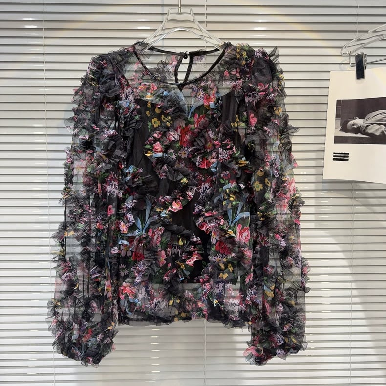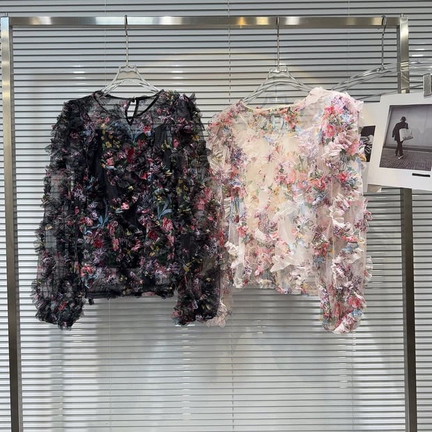 【tops】キャミソール付きフラワー長袖ブラウス2色 OR0174