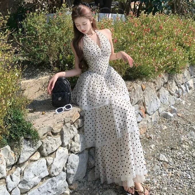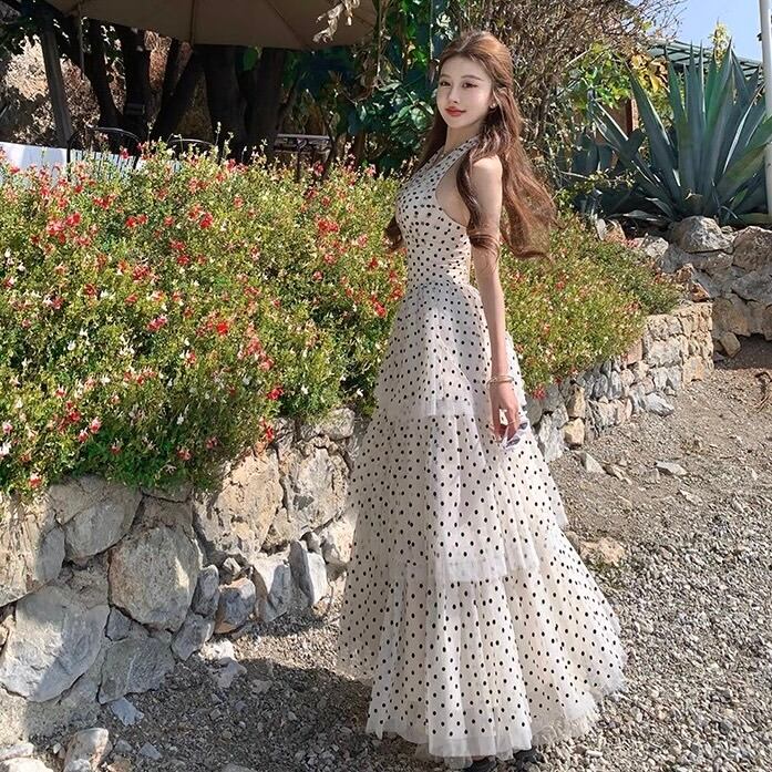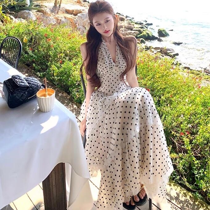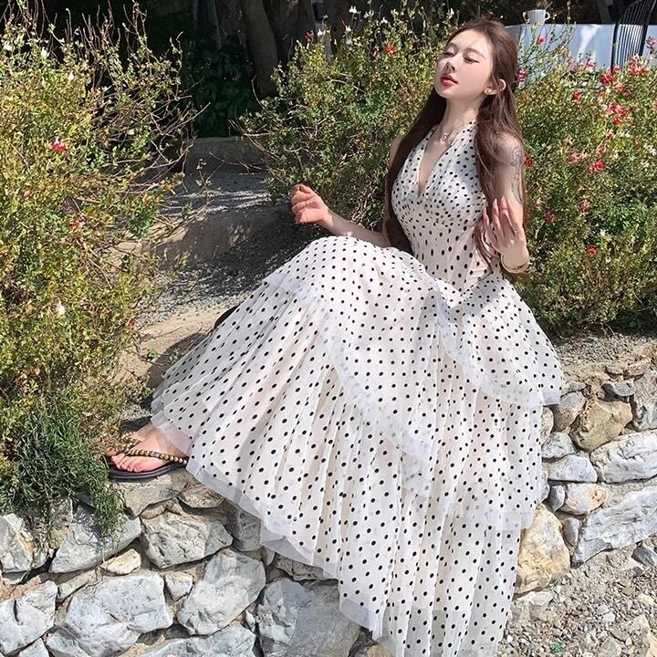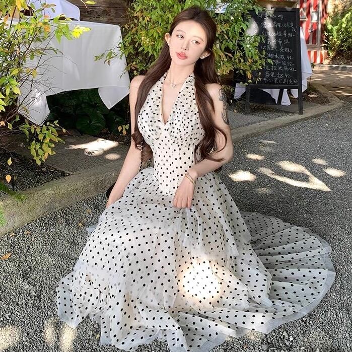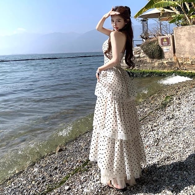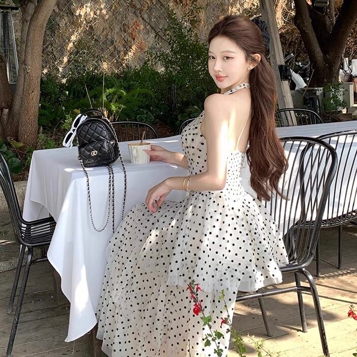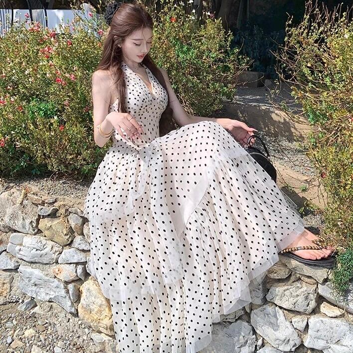 【dress】ホルターネックドット柄ワンピース OR0178
