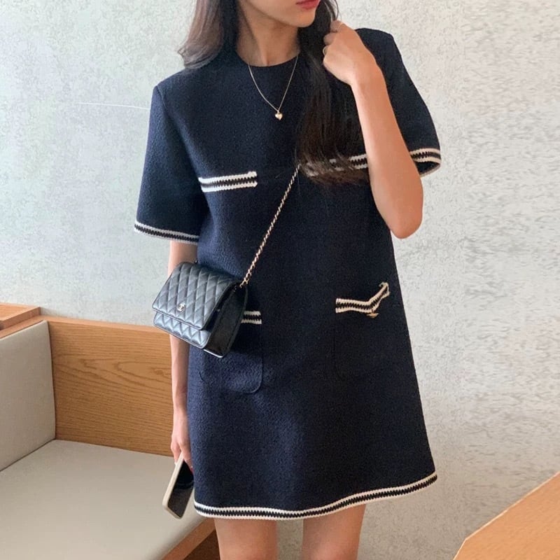 【dress】ポケットデザイン配色ワンピース OR0180
