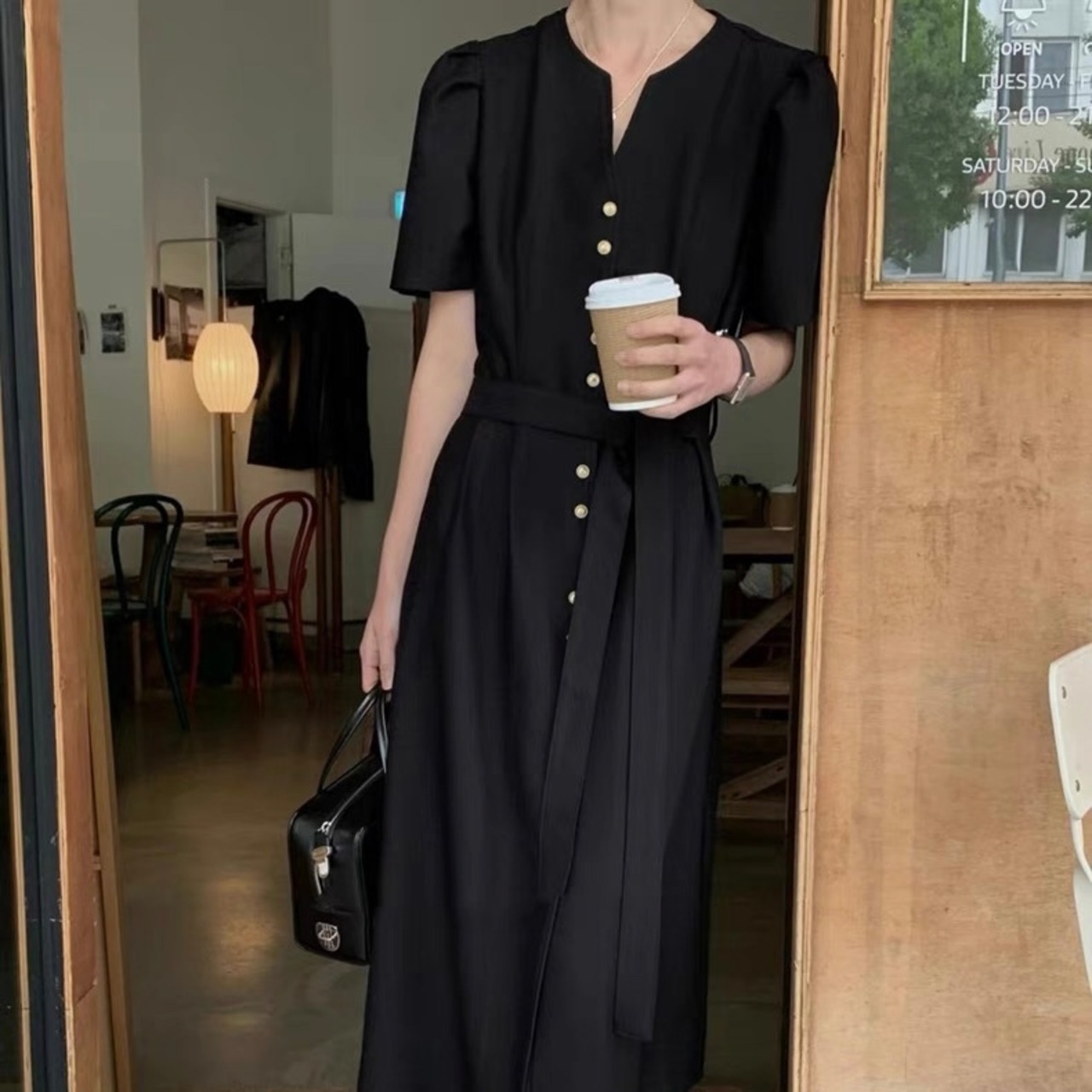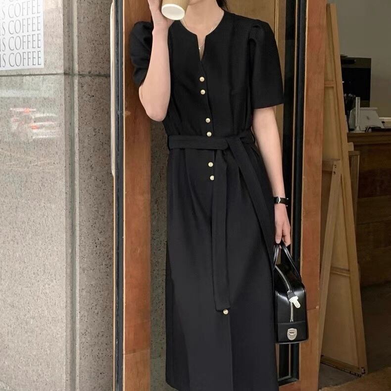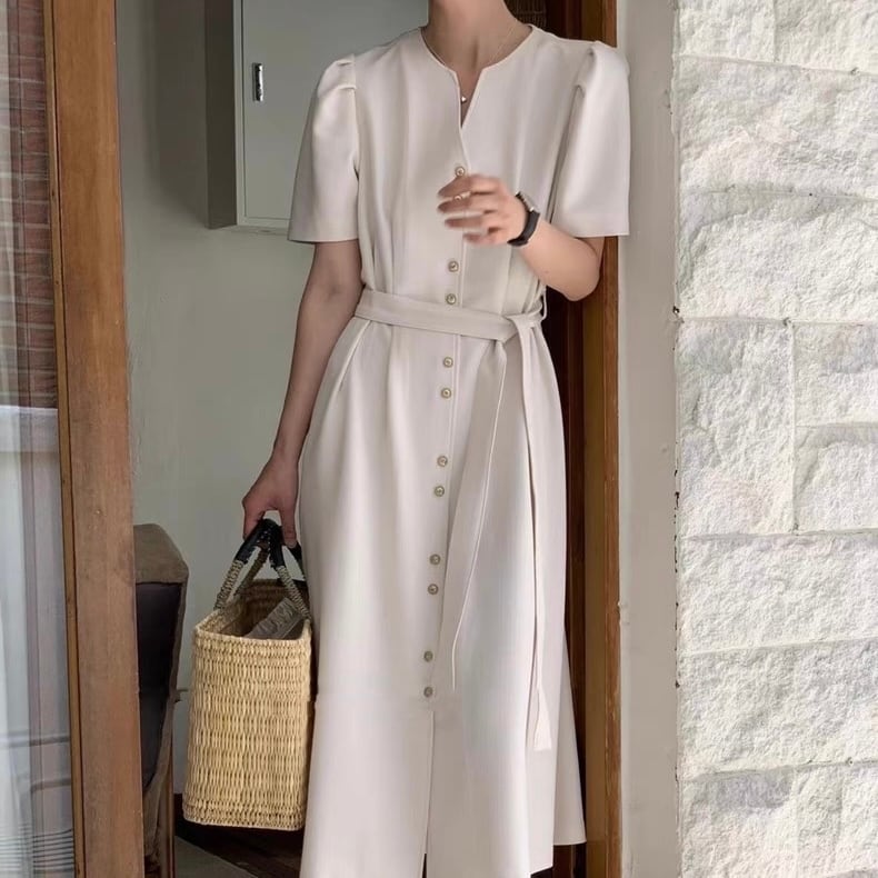 【dress】フロントボタンベルトワンピース2色 OR0181