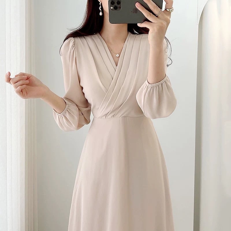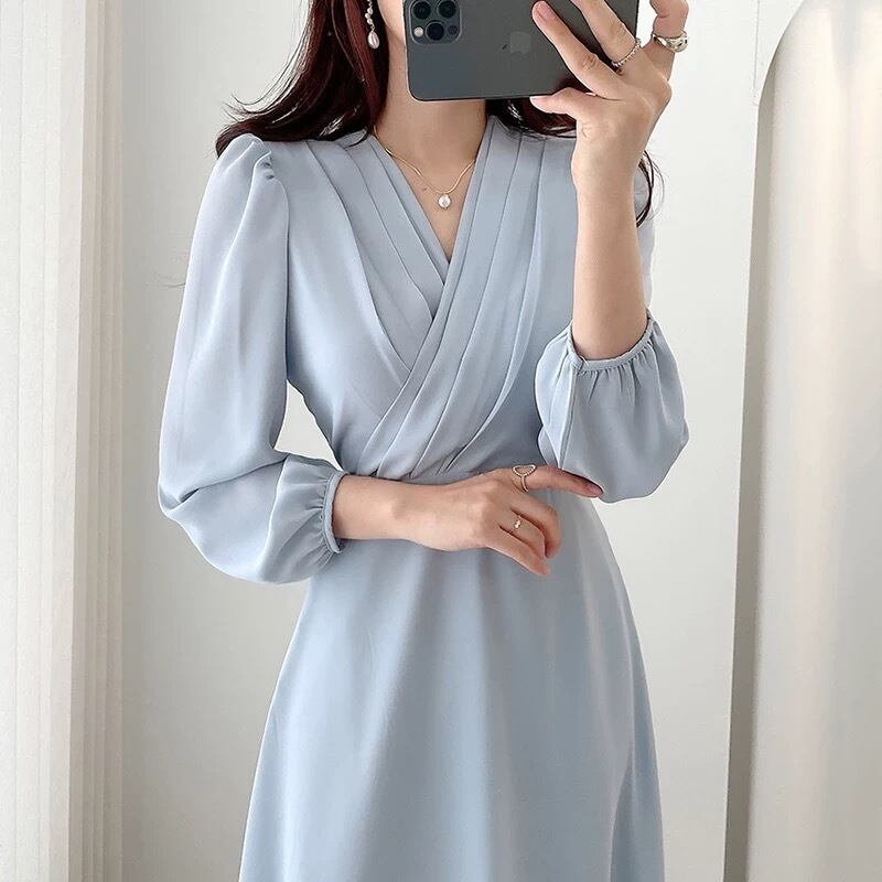 【dress】カシュクール長袖ワンピース2色 OR0182