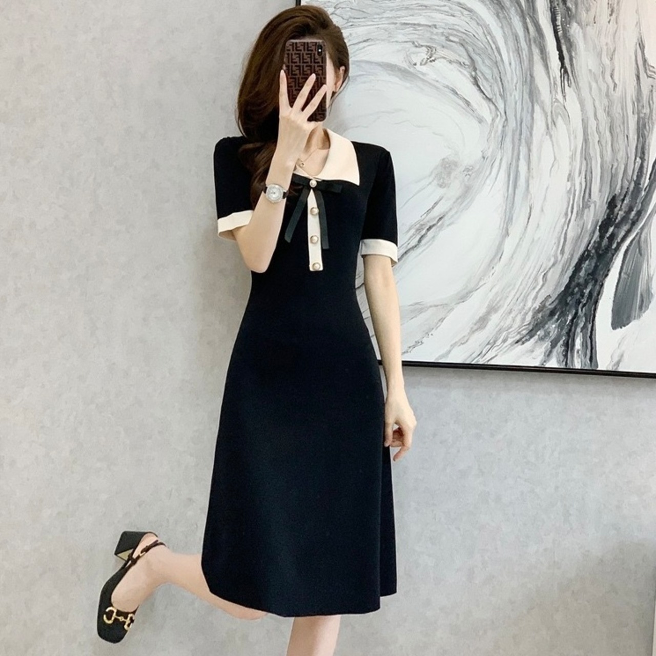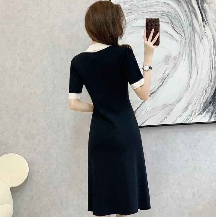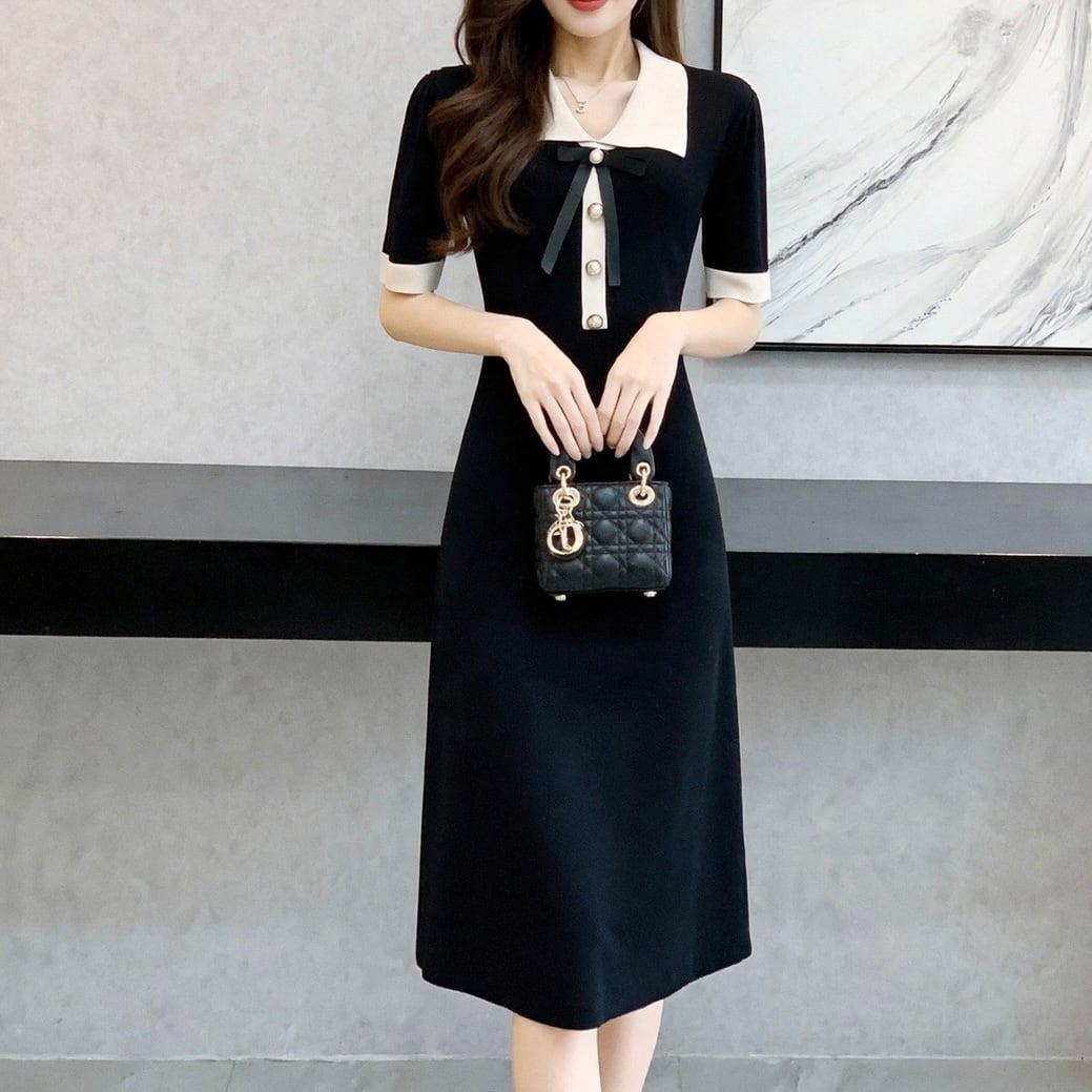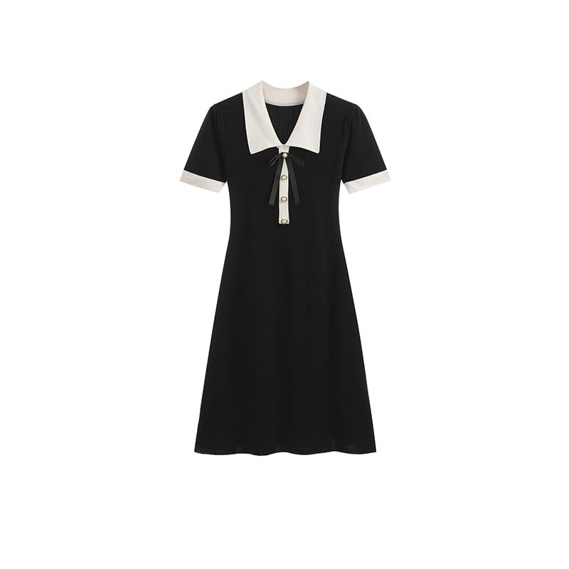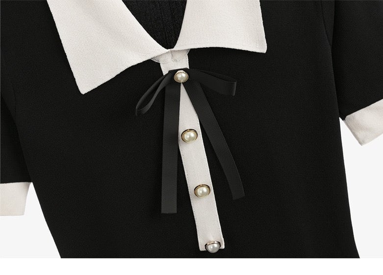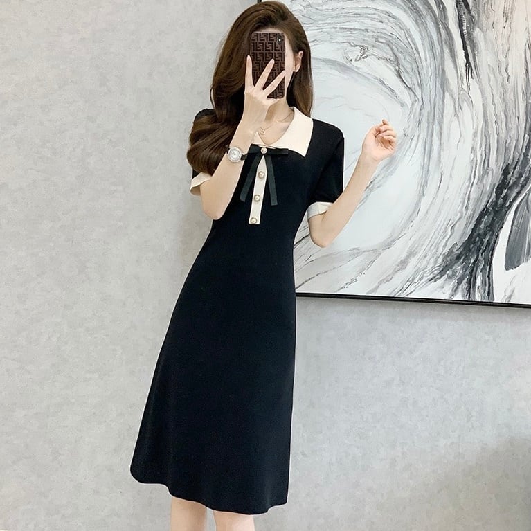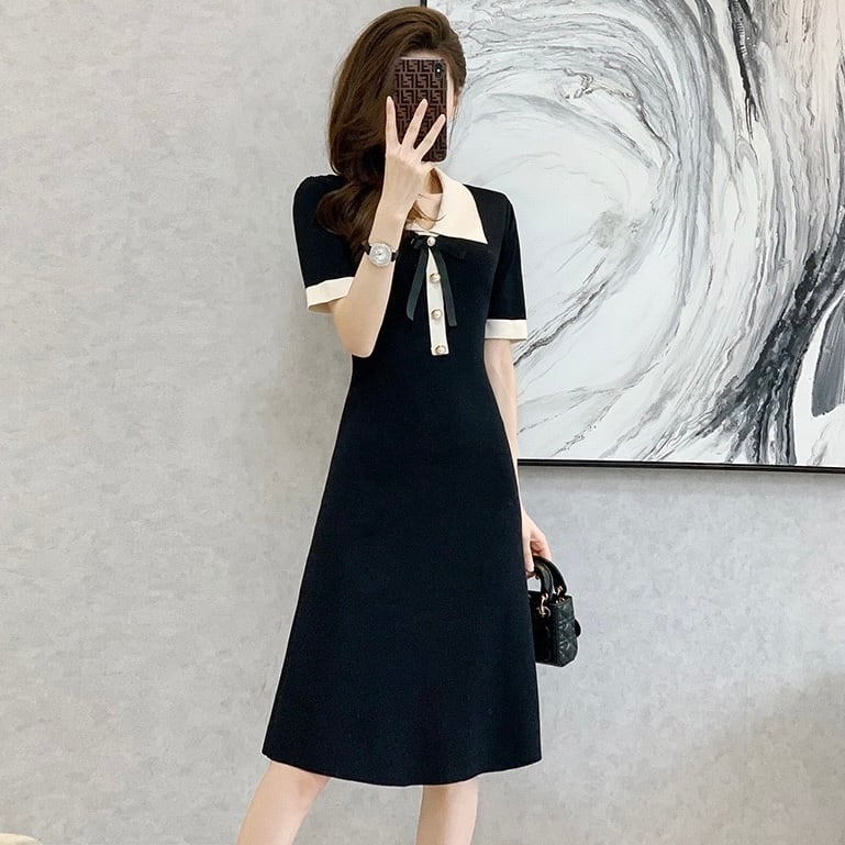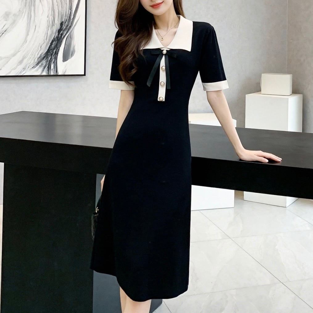 【dress】配色リボン襟付きニットワンピース OR0187