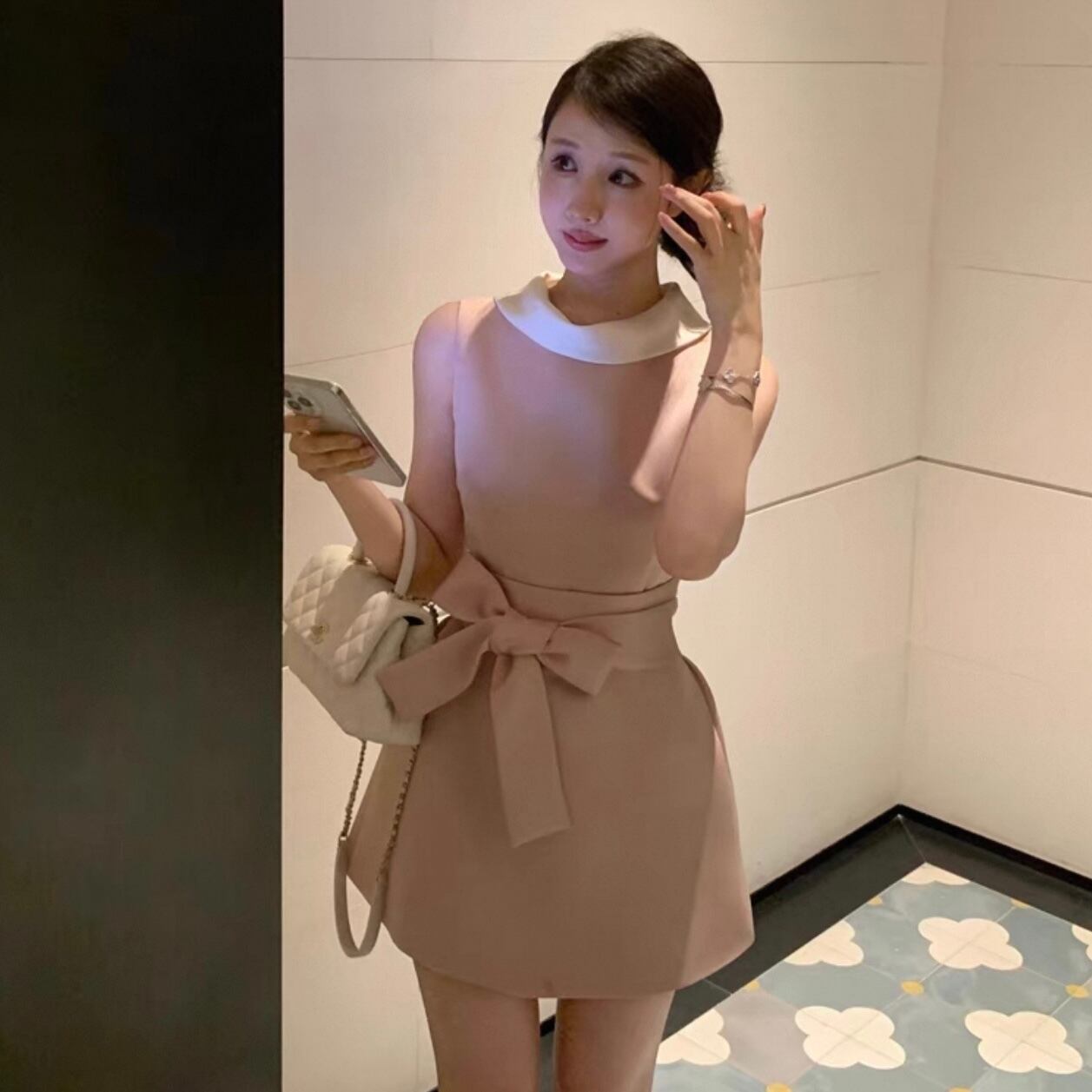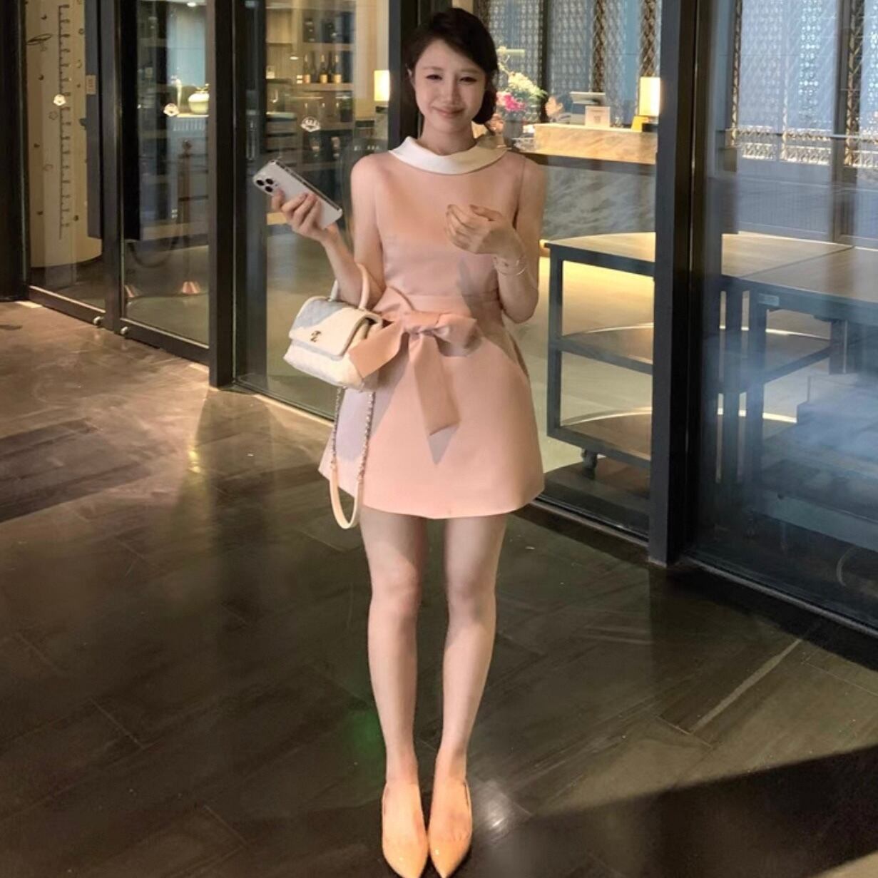 【dress】ウエストリボンAラインミニワンピース KQ0375