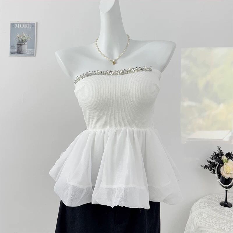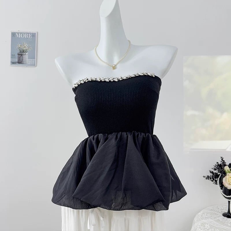 【tops】ビジュー付きぺプラムニットペアトップ2色 OR0208