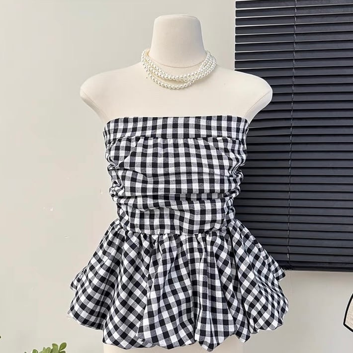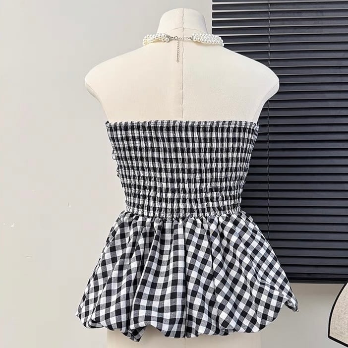 【tops】ギンガムチェックぺプラムベアトップ OR0209
