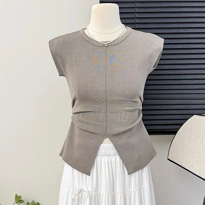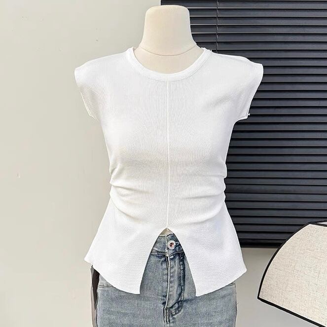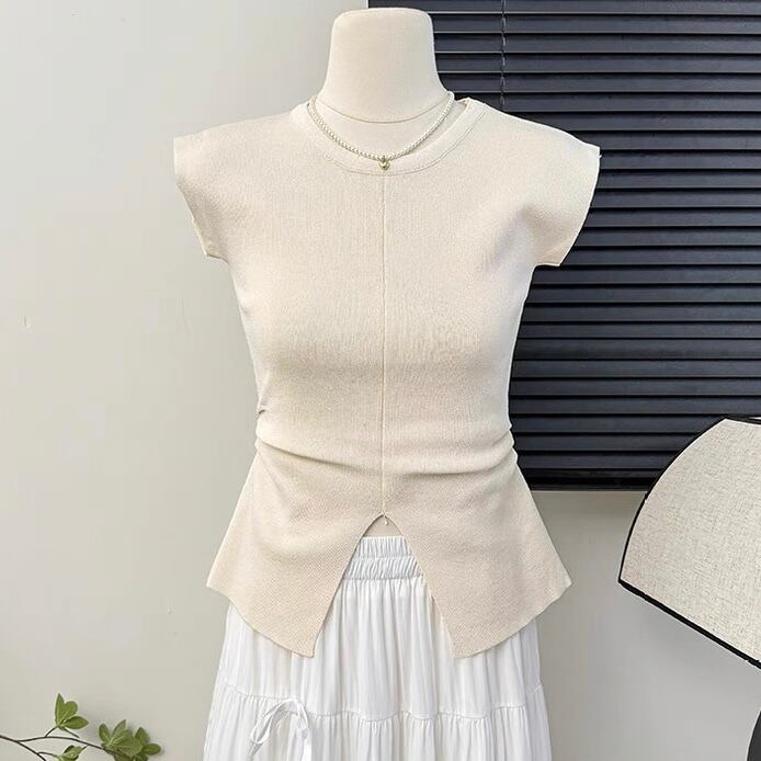 【tops】スリット入りシンプルトップス4色 OR0210
