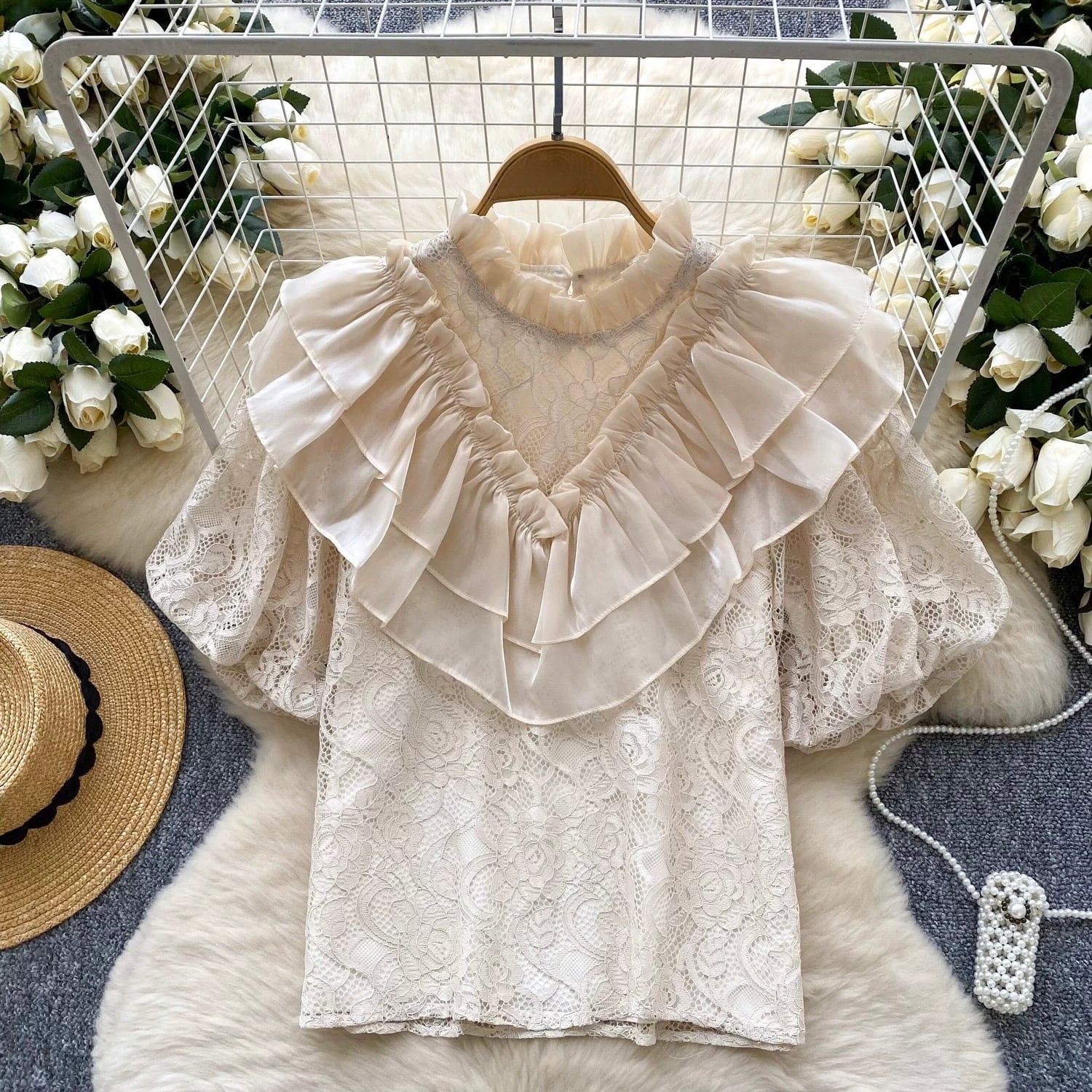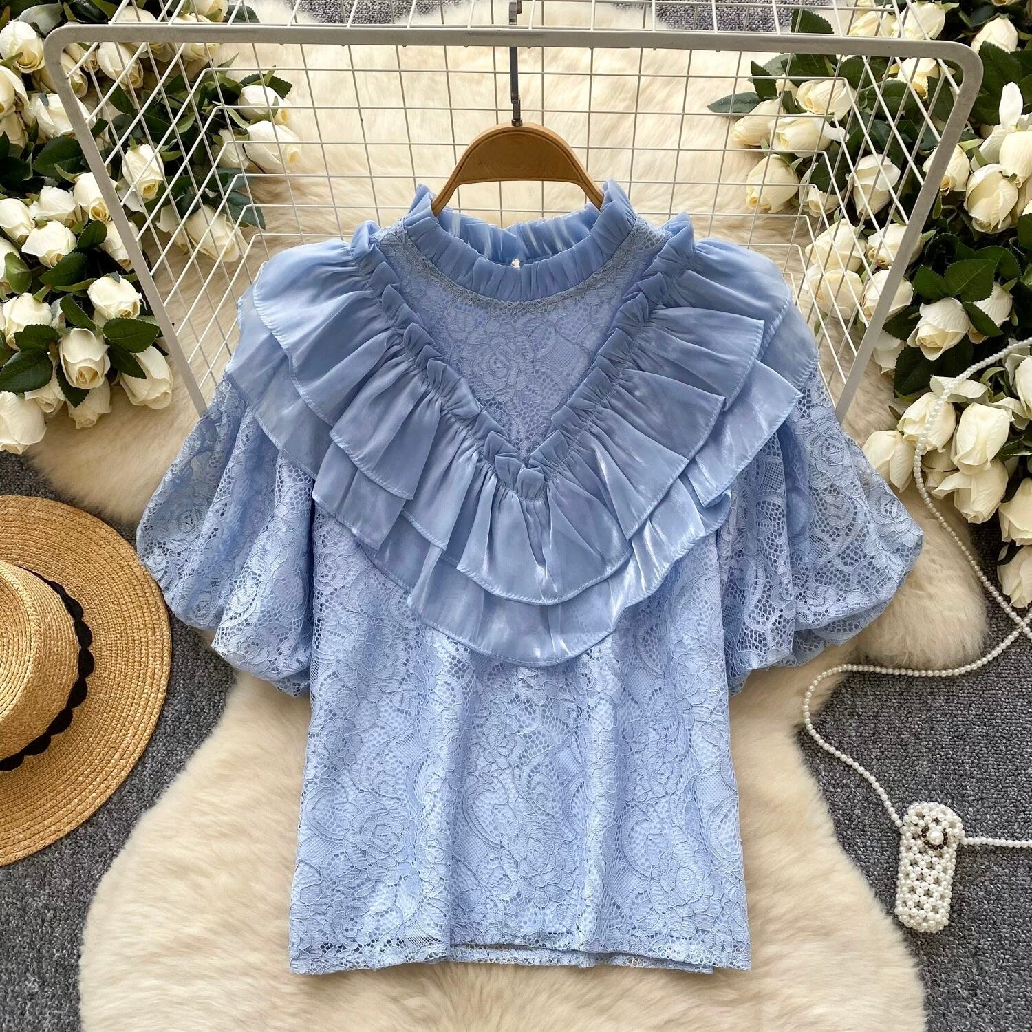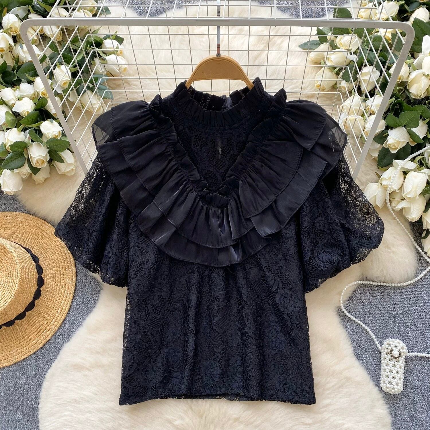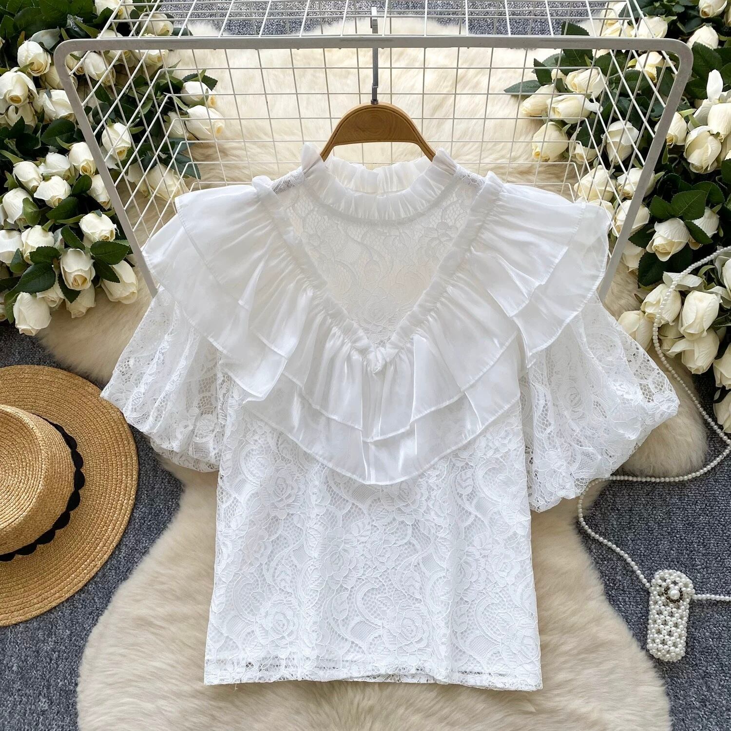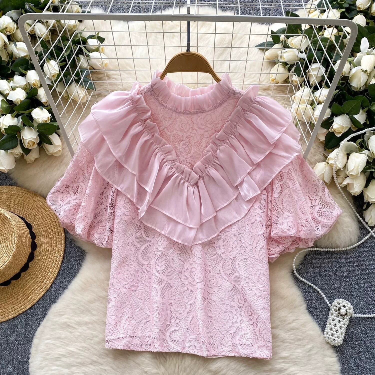 【tops】ビッグフリルレーストップス5色 OR0238