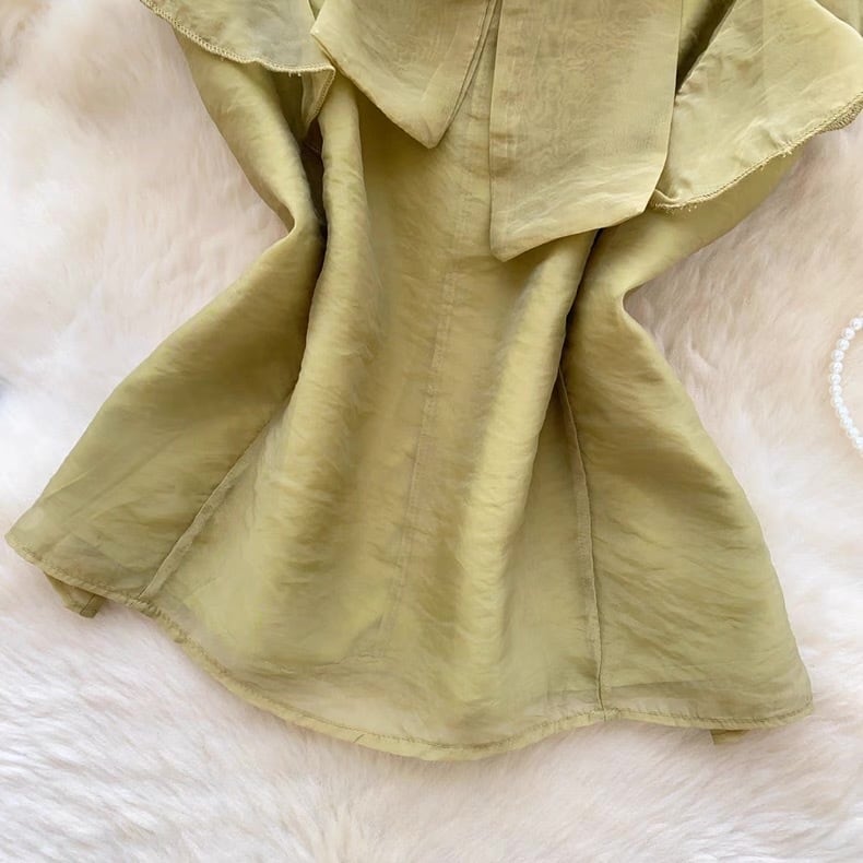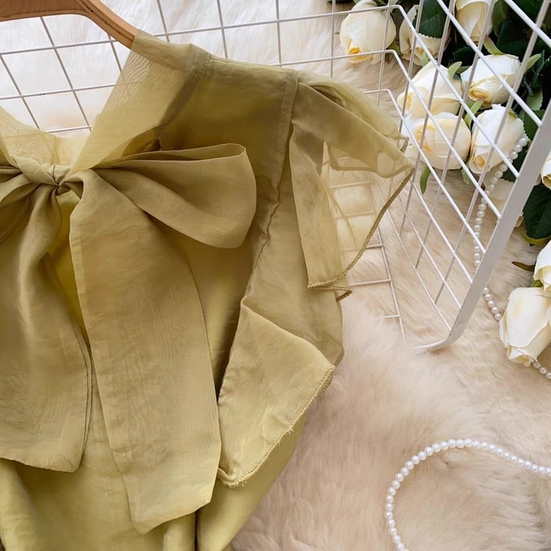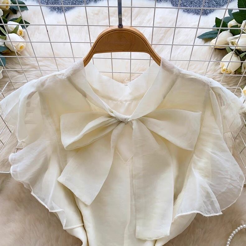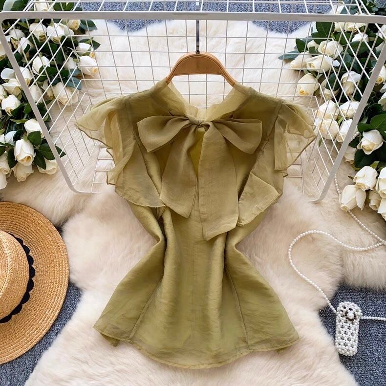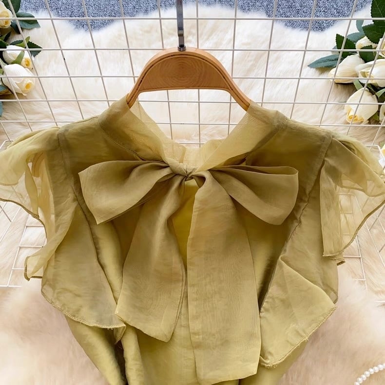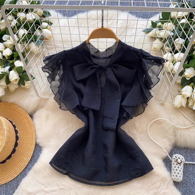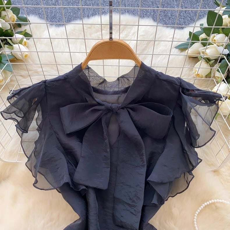 【tops】ボウタイフリルスリーブトップス4色 GB0331