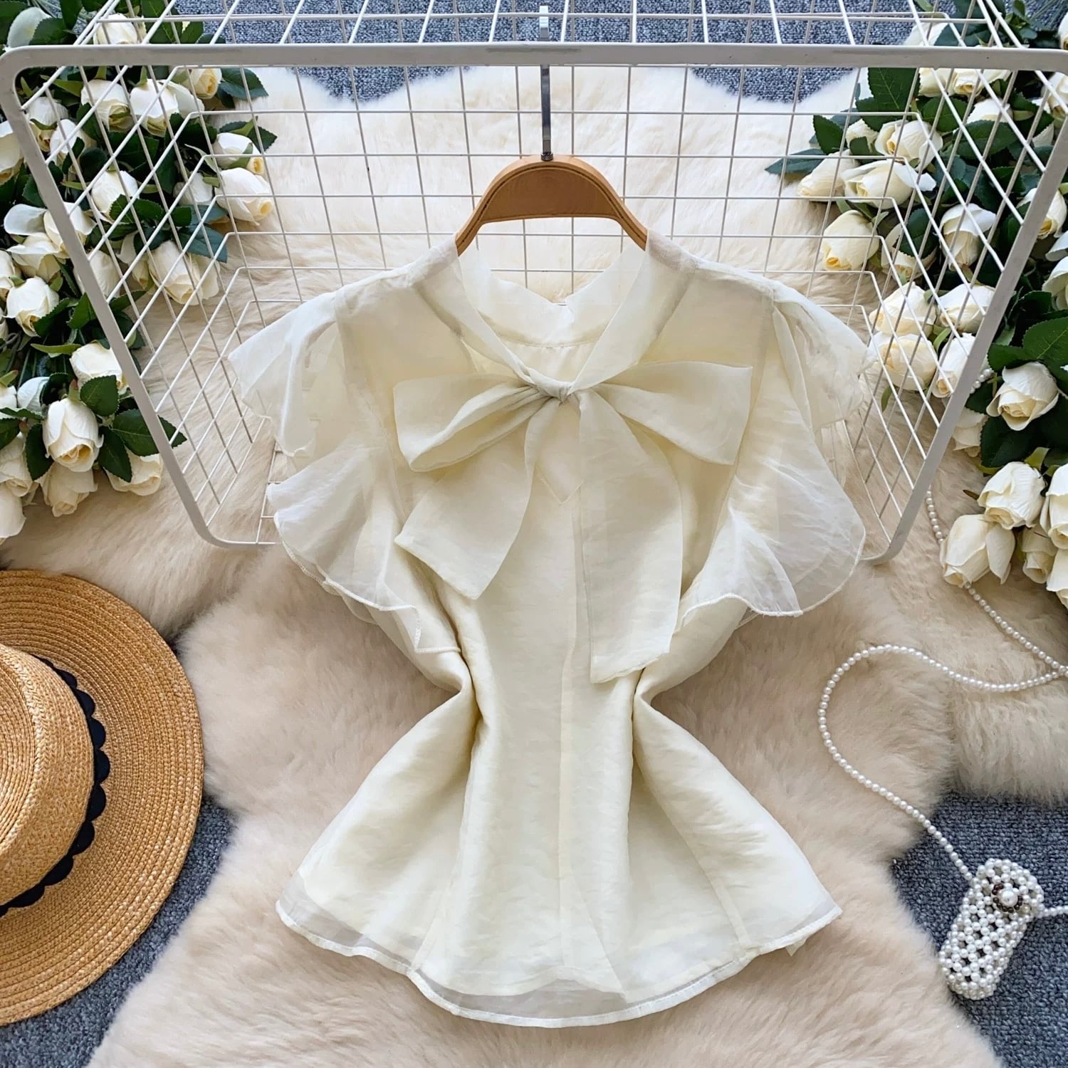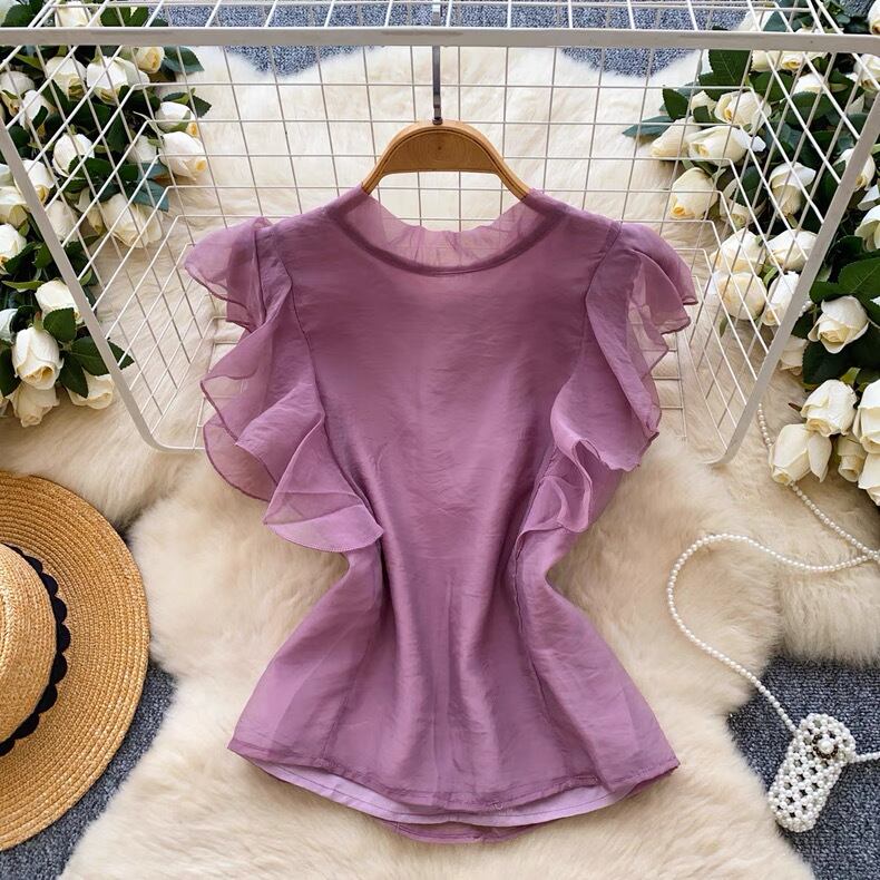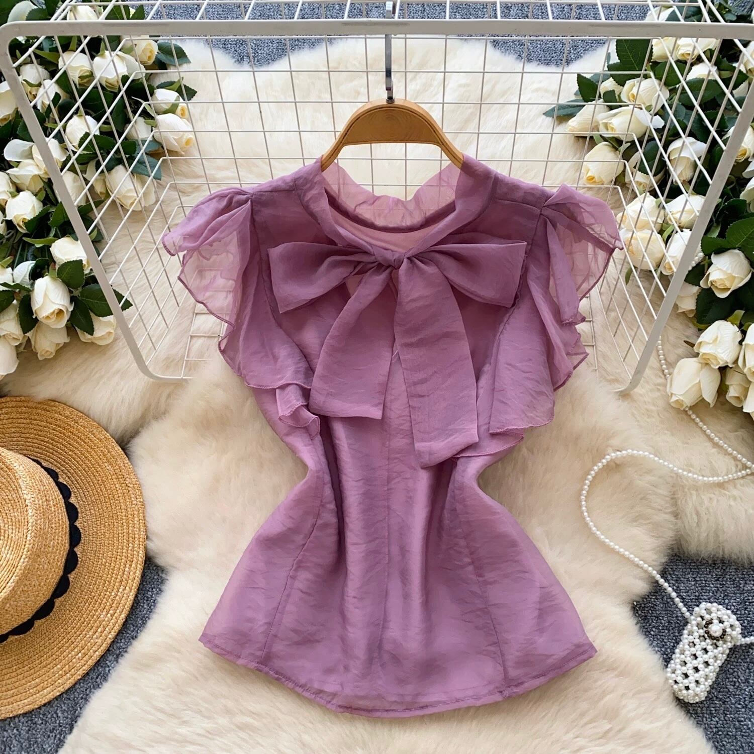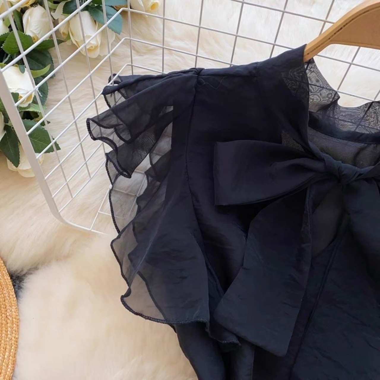 【tops】ボウタイフリルスリーブトップス4色 GB0331