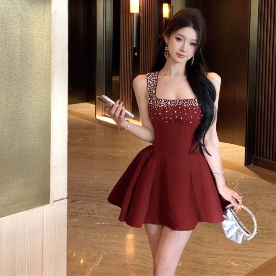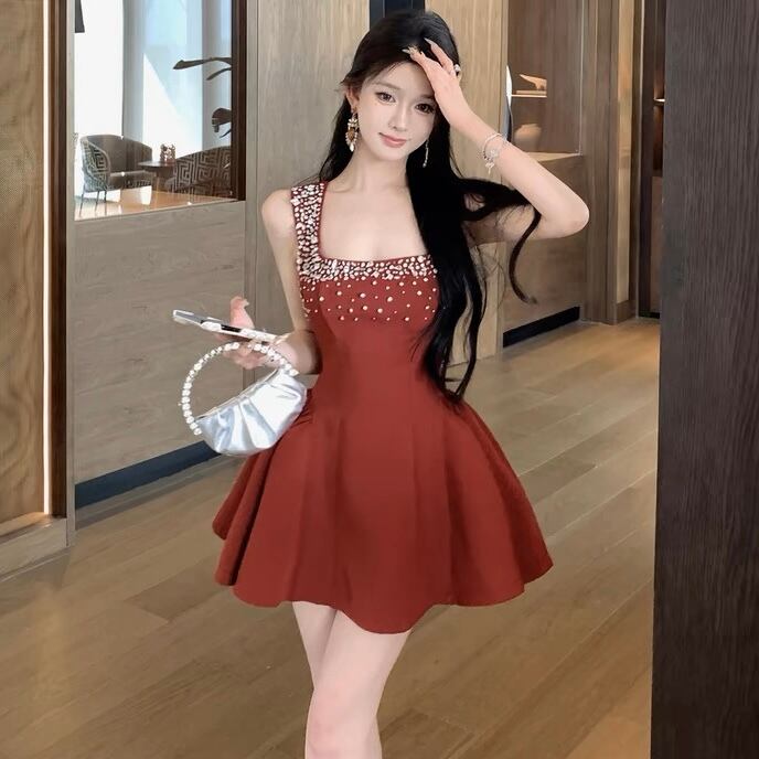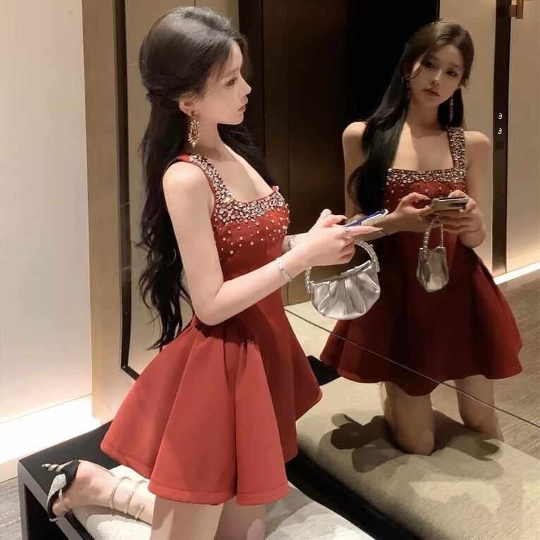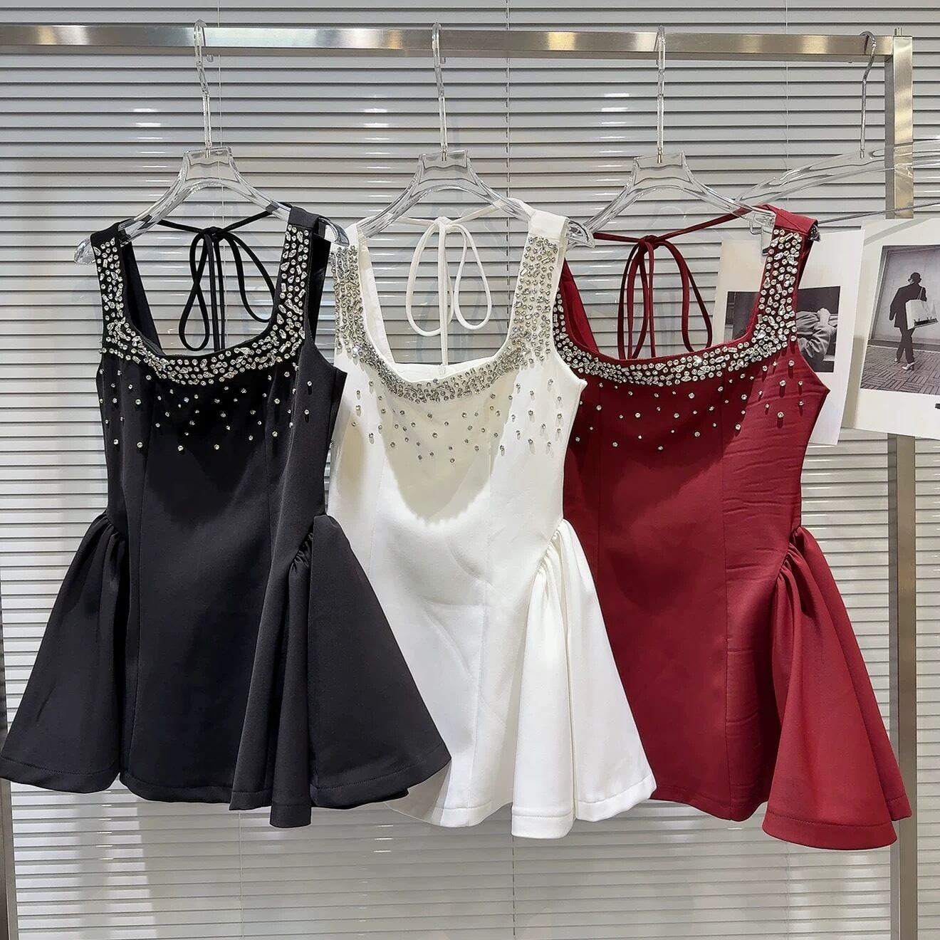 【dress】ビジュー付きボリュームミニワンピース3色 KZ0220