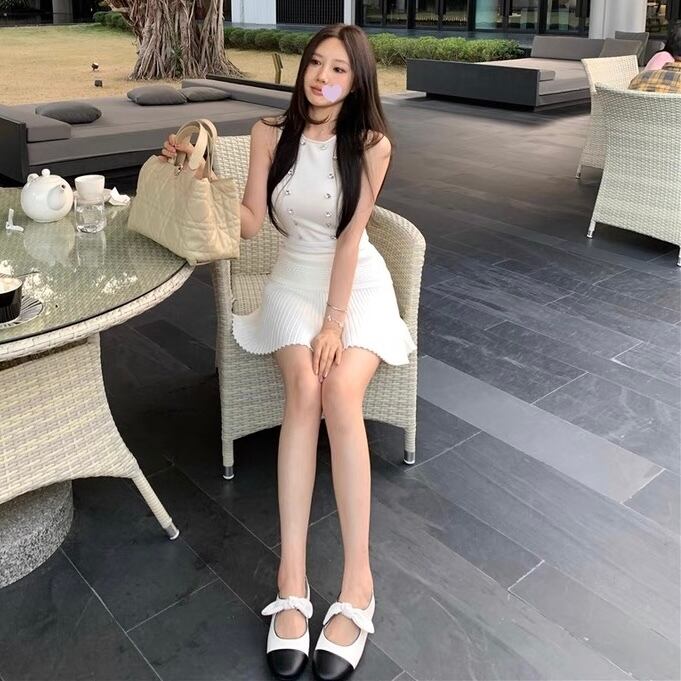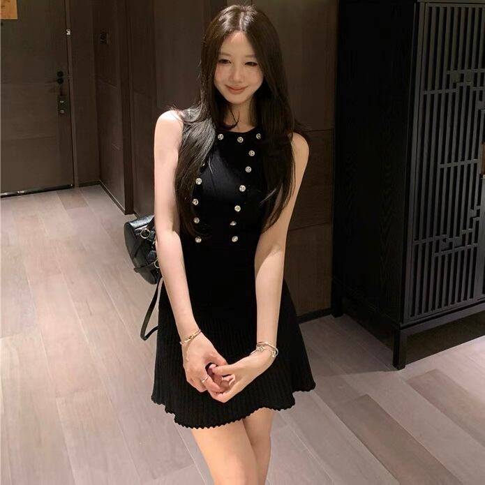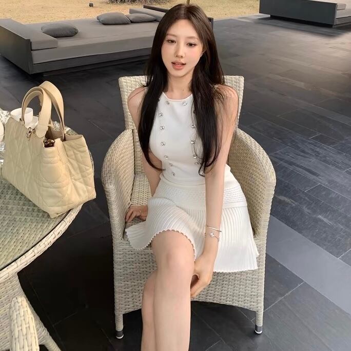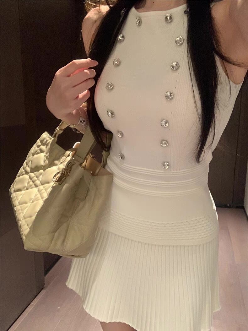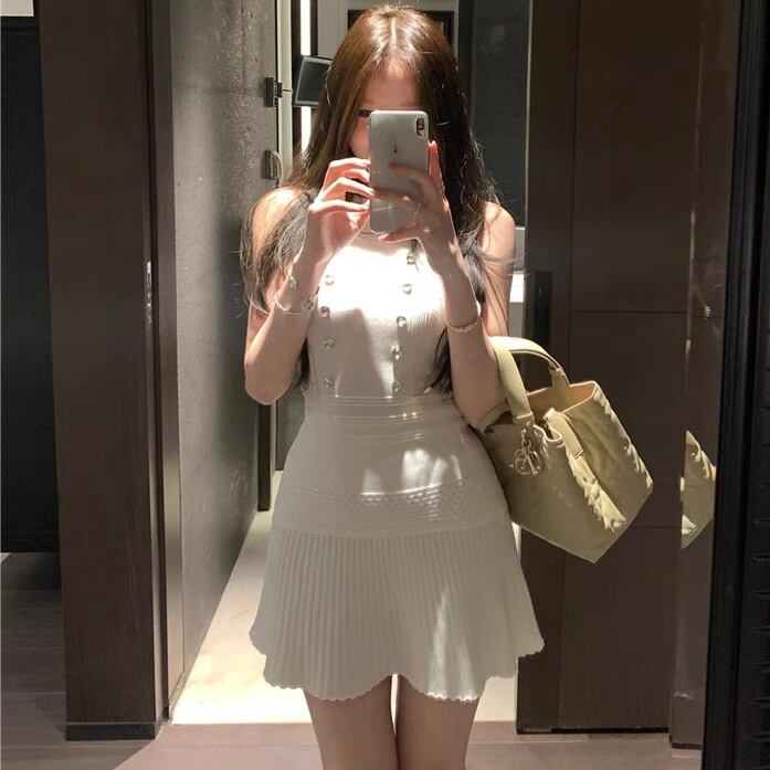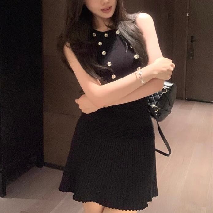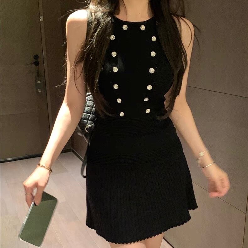 【set】ジルコン付きトップスxプリーツスカート2色 SY0205