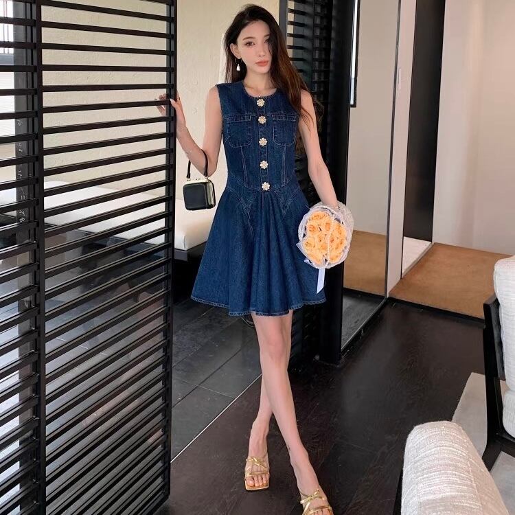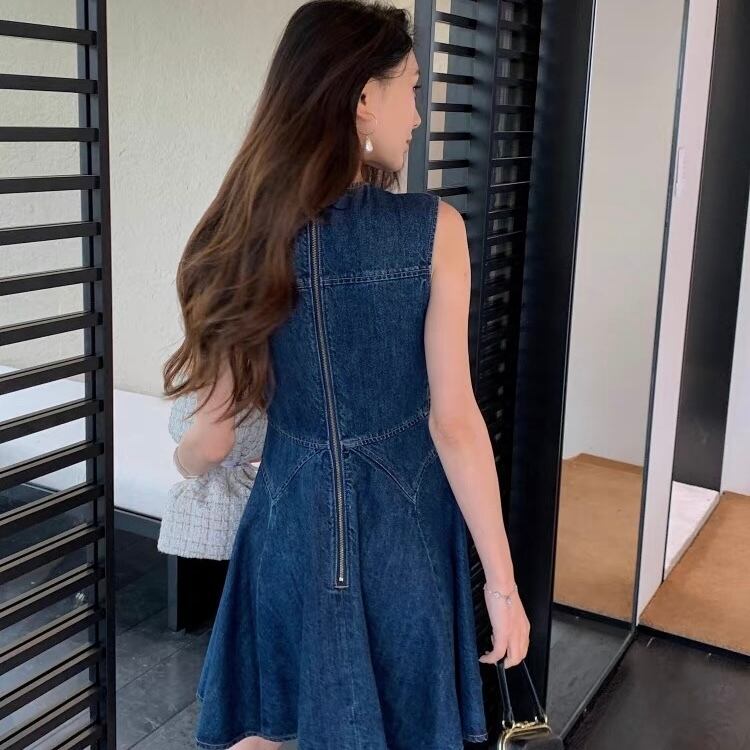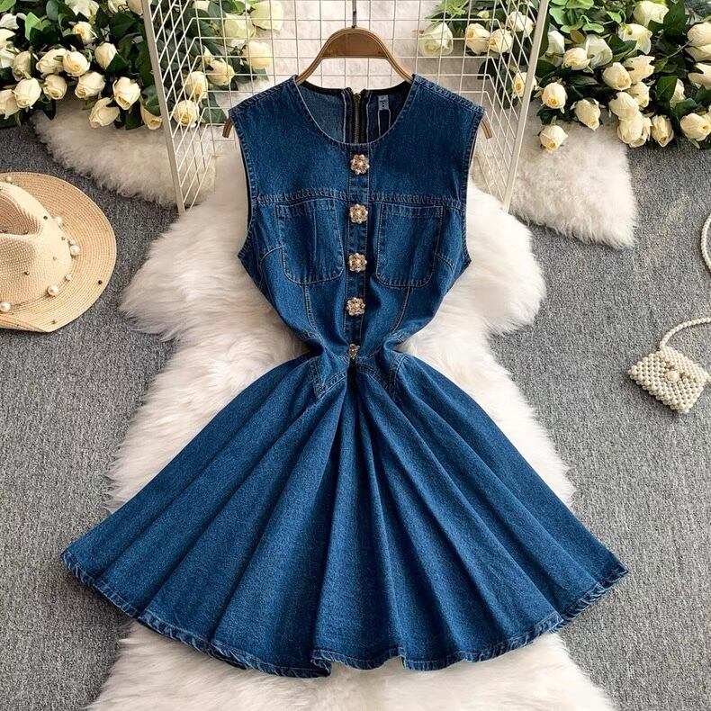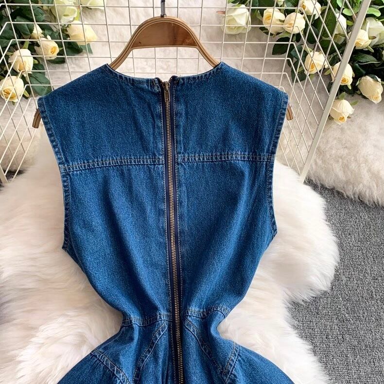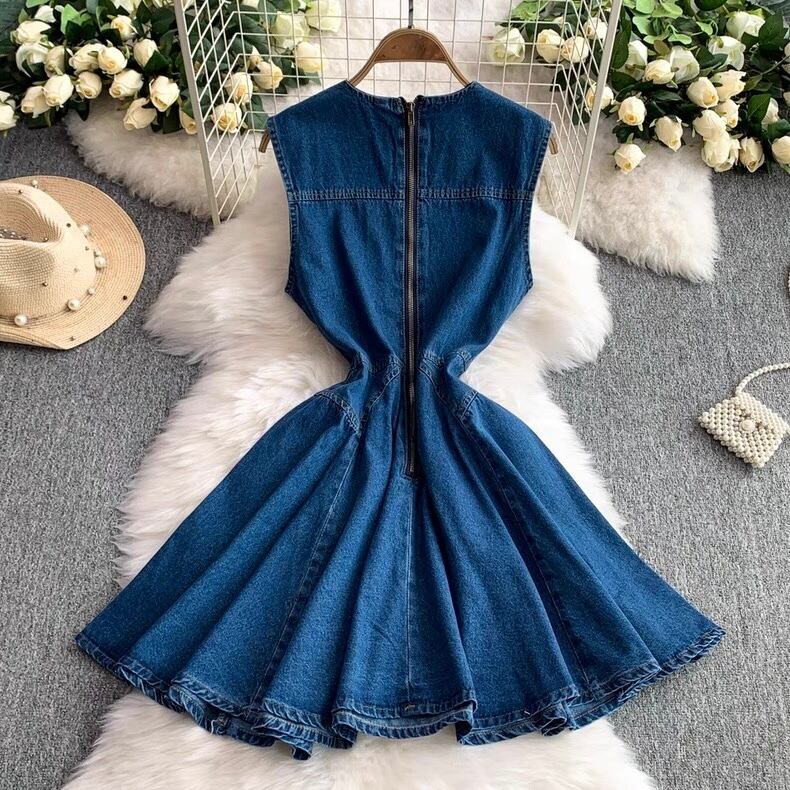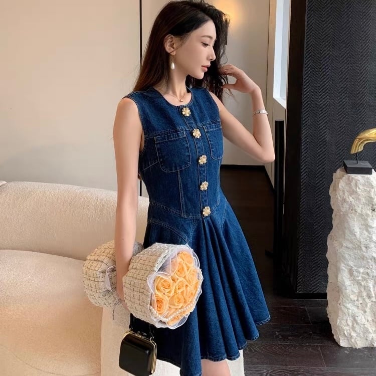【dress】プリーツデニムノースリーブワンピース AP0001