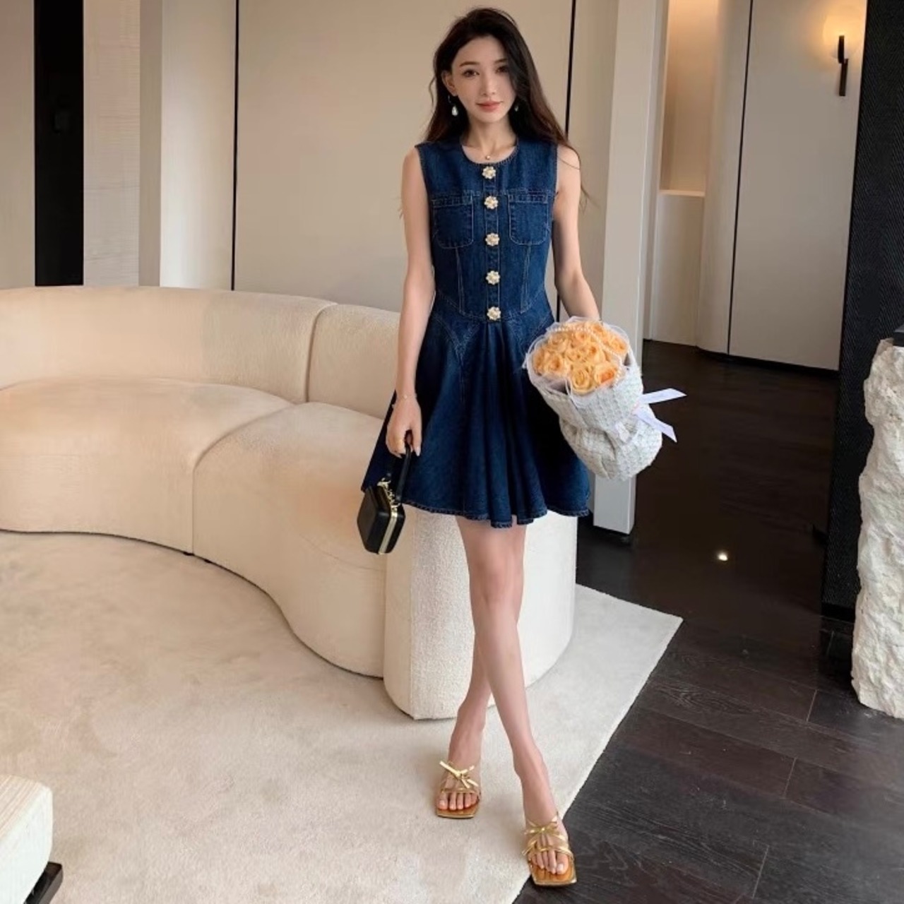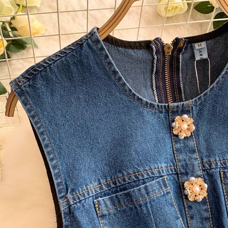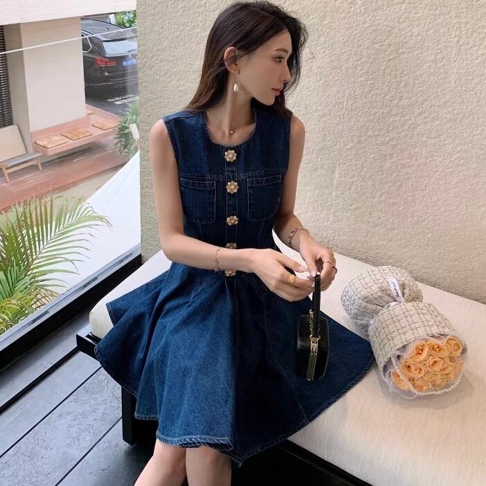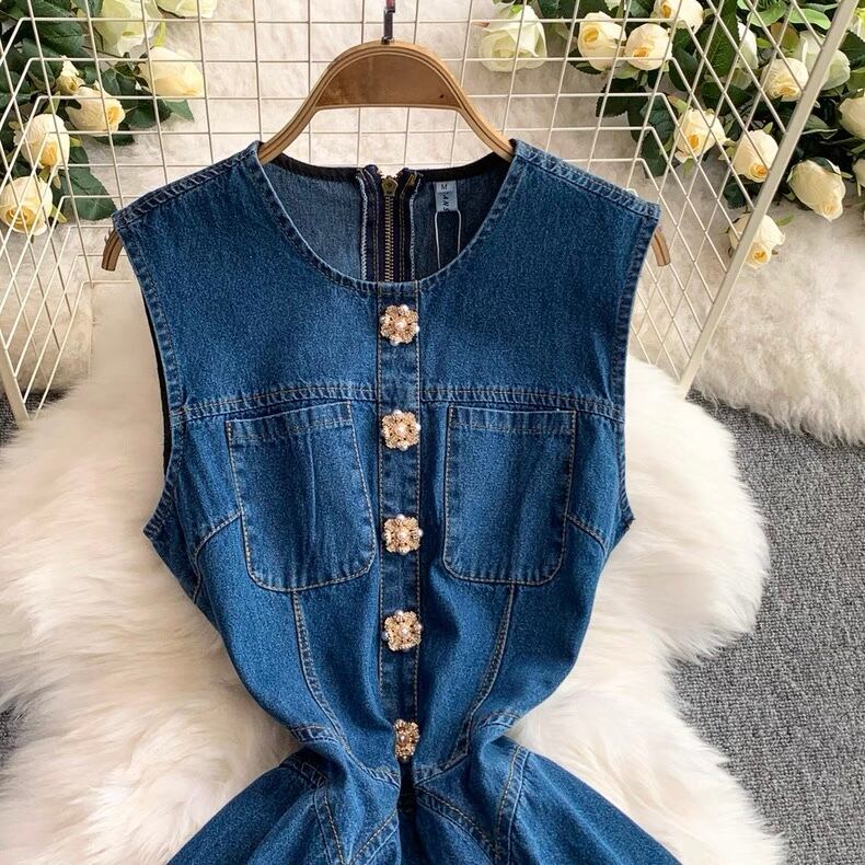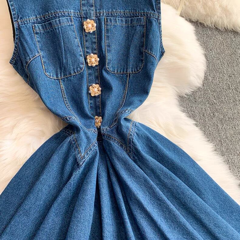 【dress】プリーツデニムノースリーブワンピース AP0001