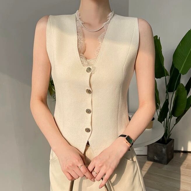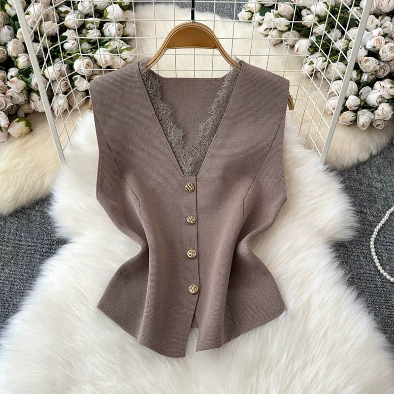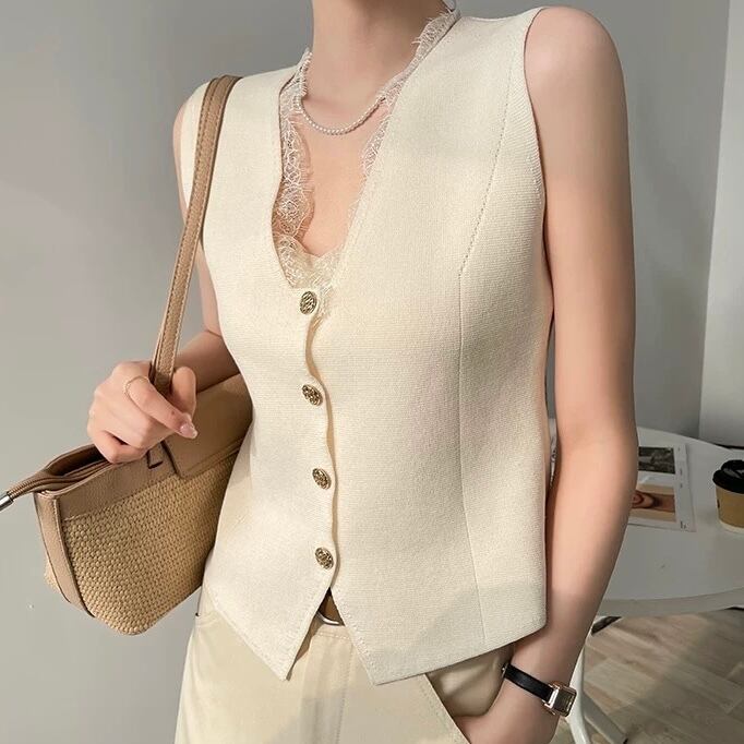 【tops】レースドッキングジレ4色 AP0013