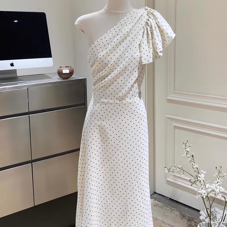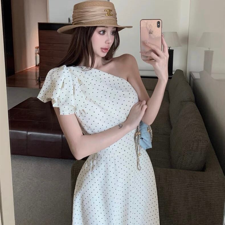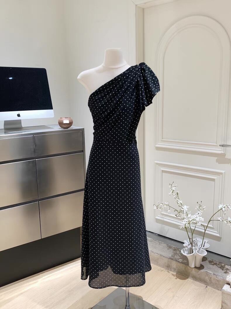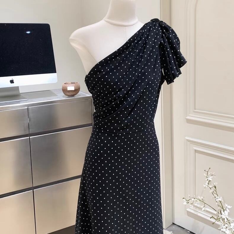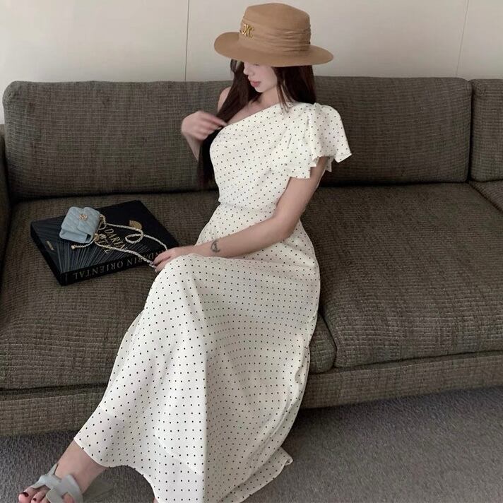【dress】ドット柄ワンショルダーワンピース2色 SY2349