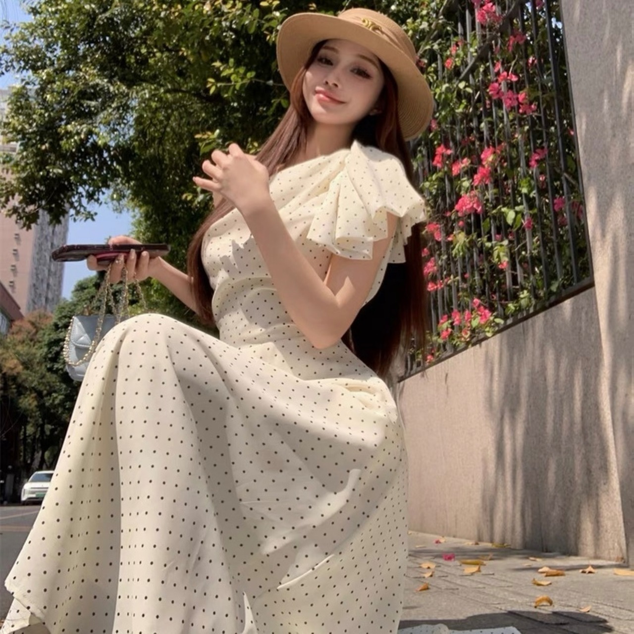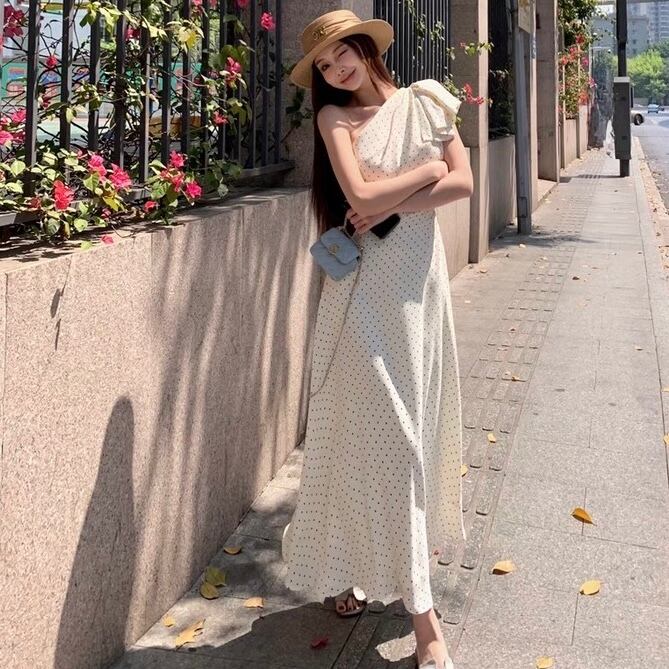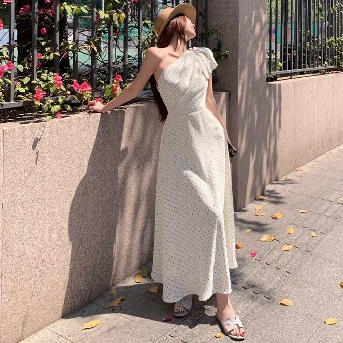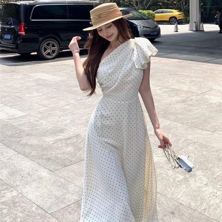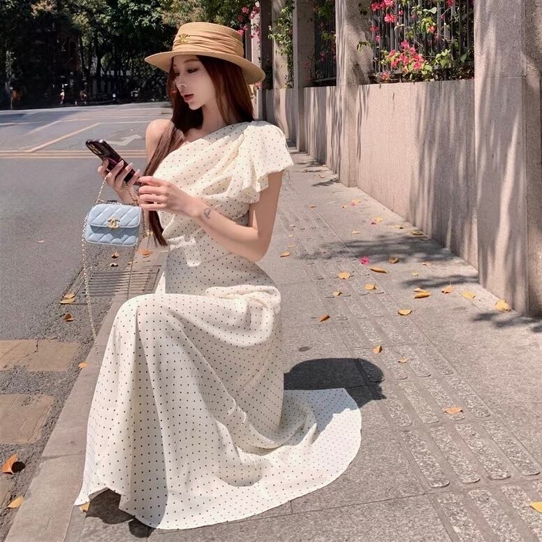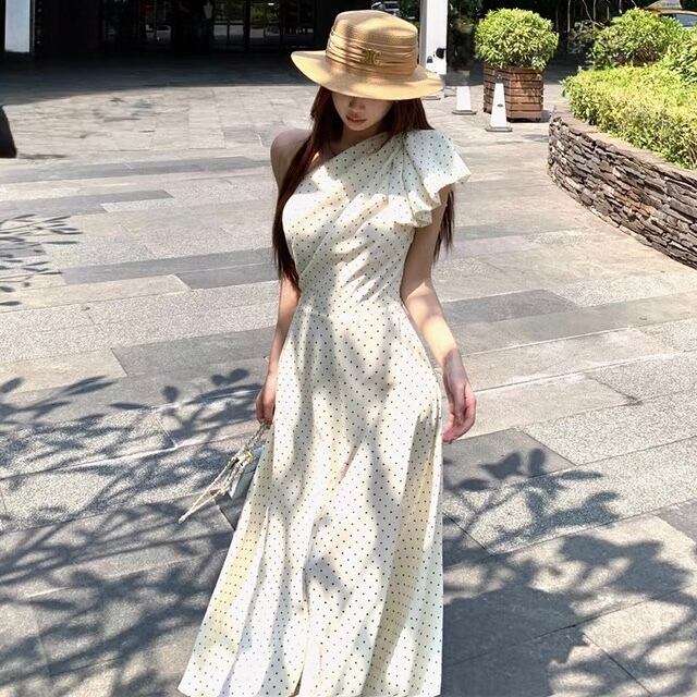 【dress】ドット柄ワンショルダーワンピース2色 SY2349