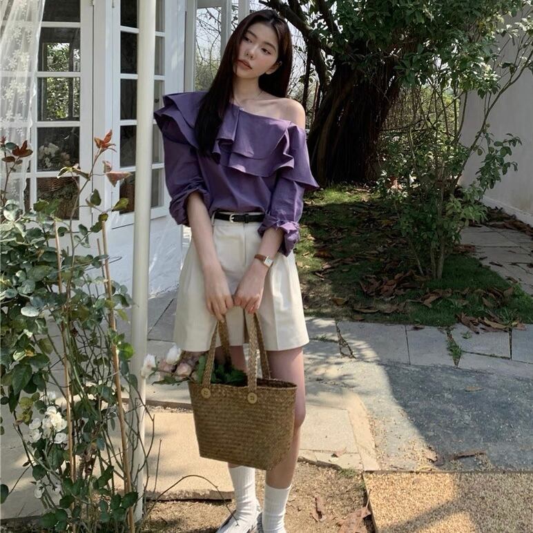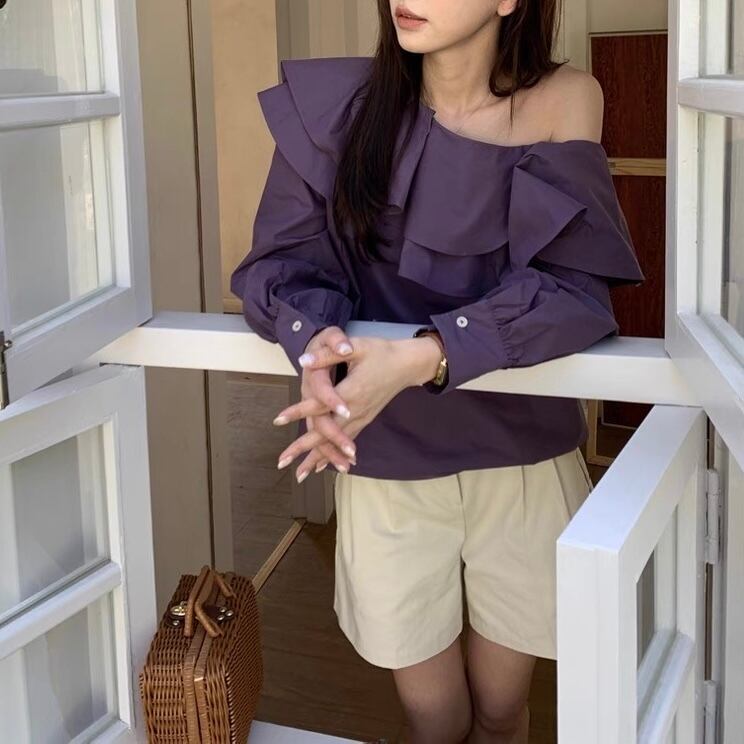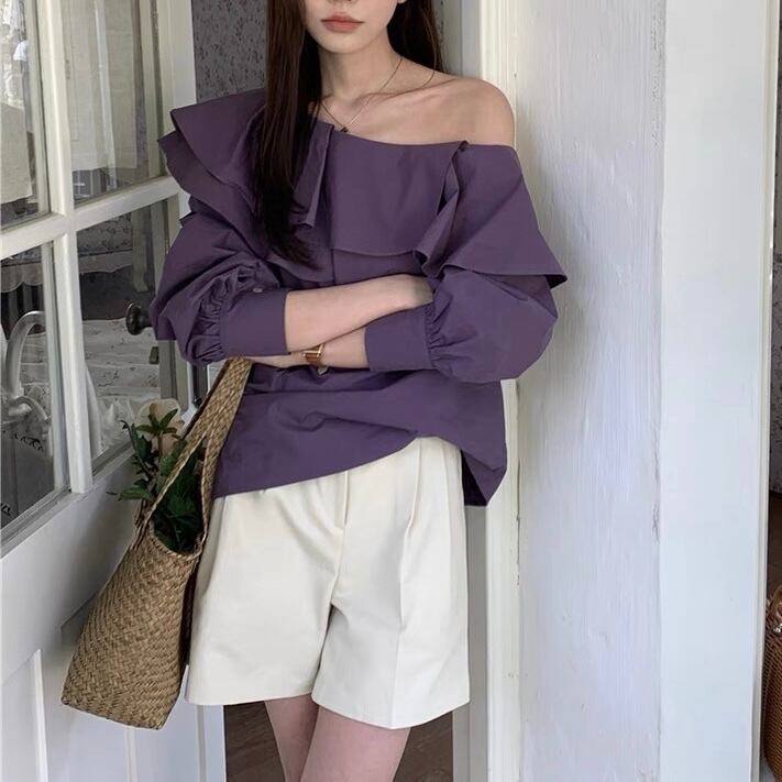 【tops】フリルオフショルダートップス2色 AP0023