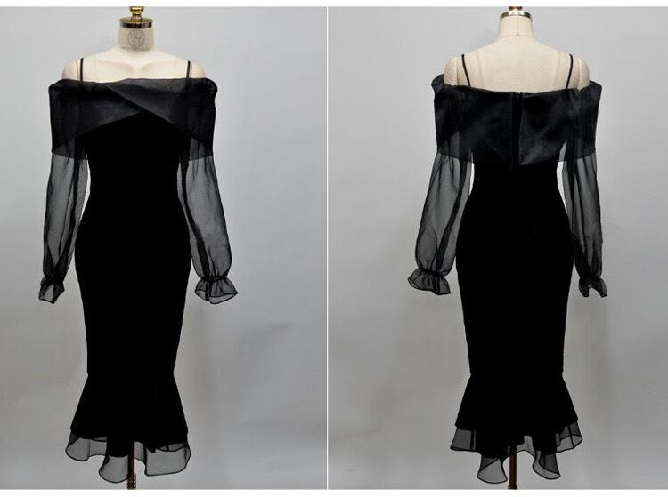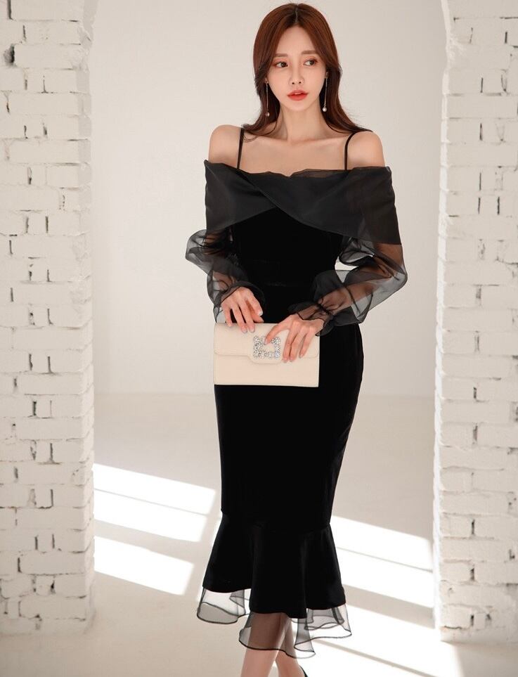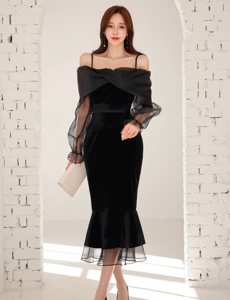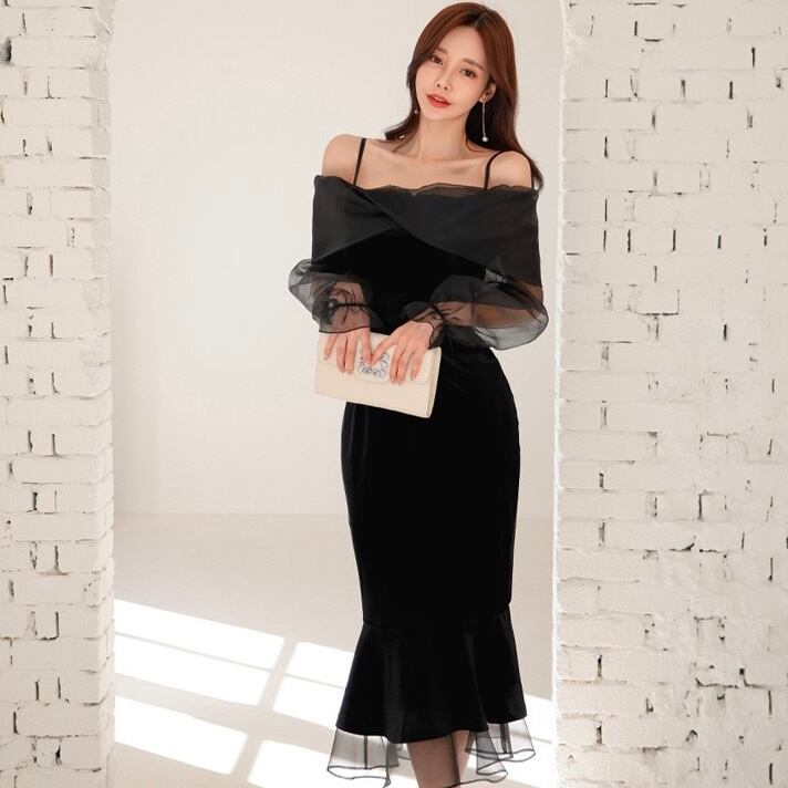 【dress】オフショルダーシアーワンピース AP0026