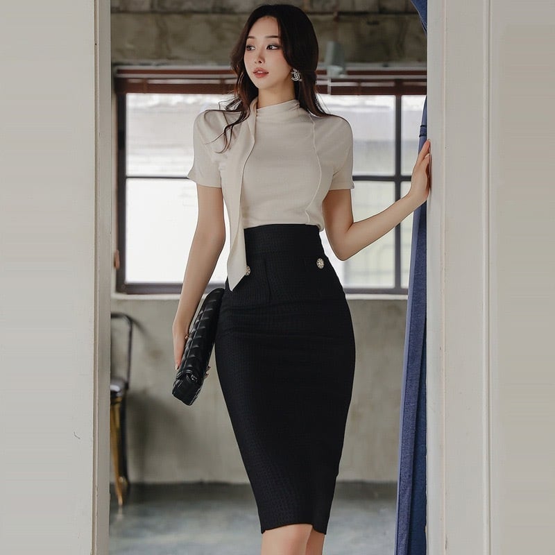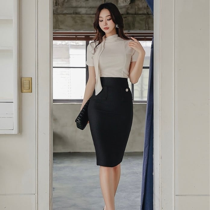 【set】半袖トップスxハイウエストスカート AP0027