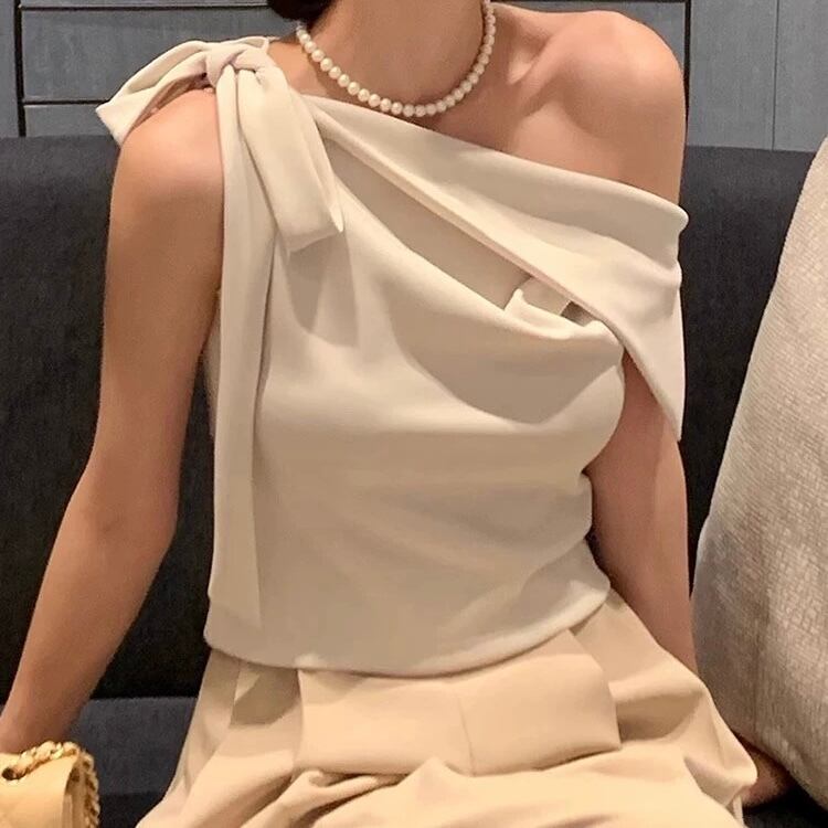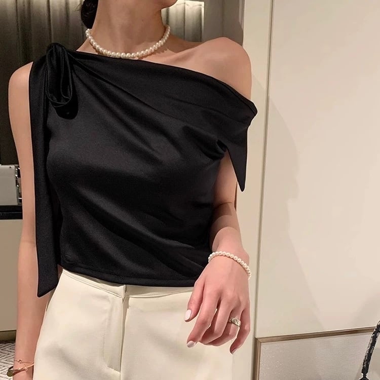 【tops】オフショルダー肩リボントップス2色 AP0028