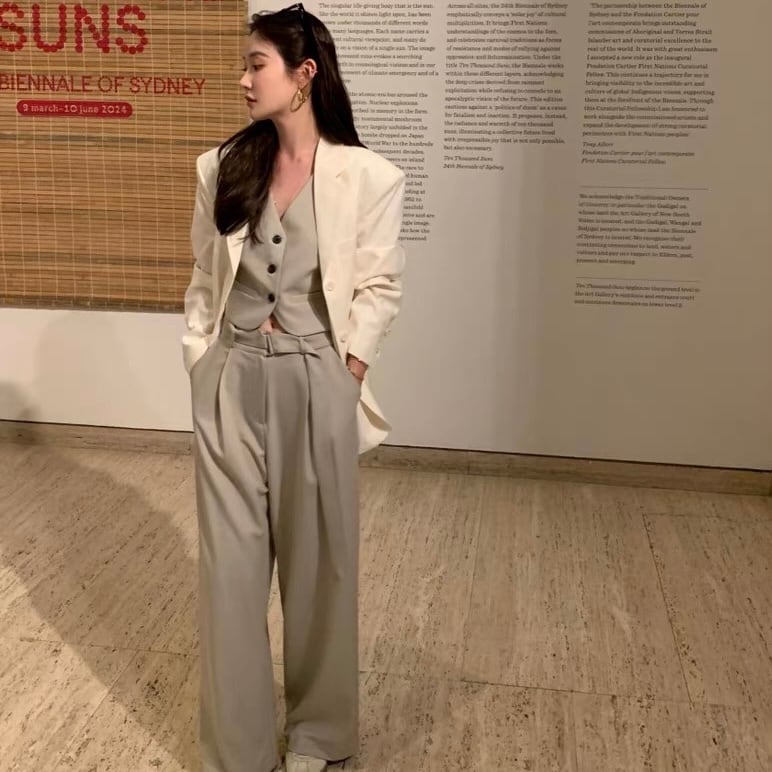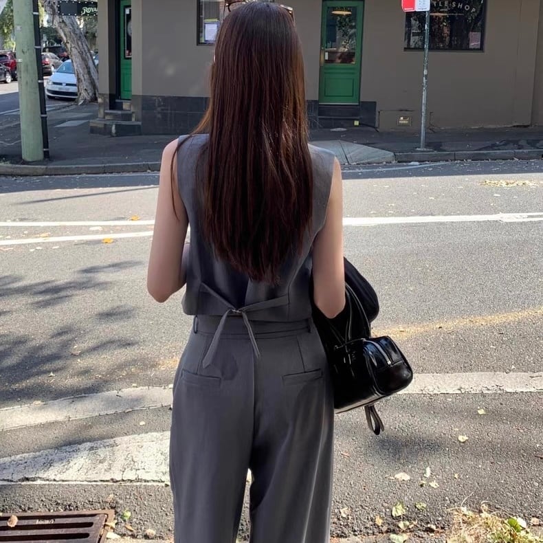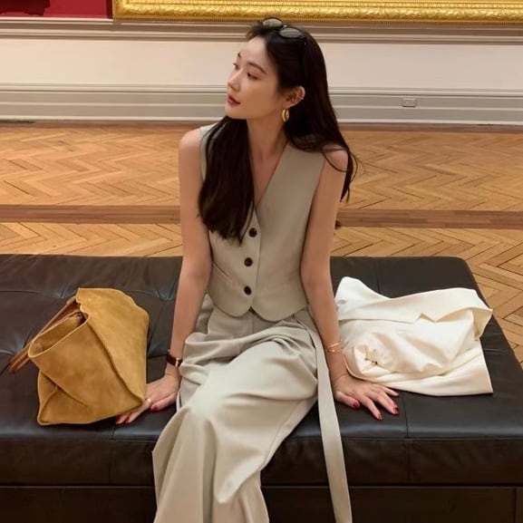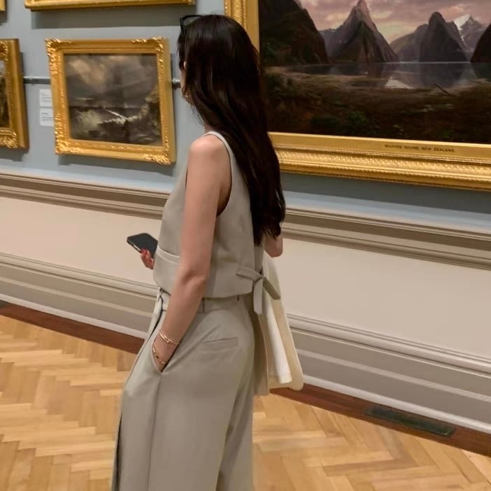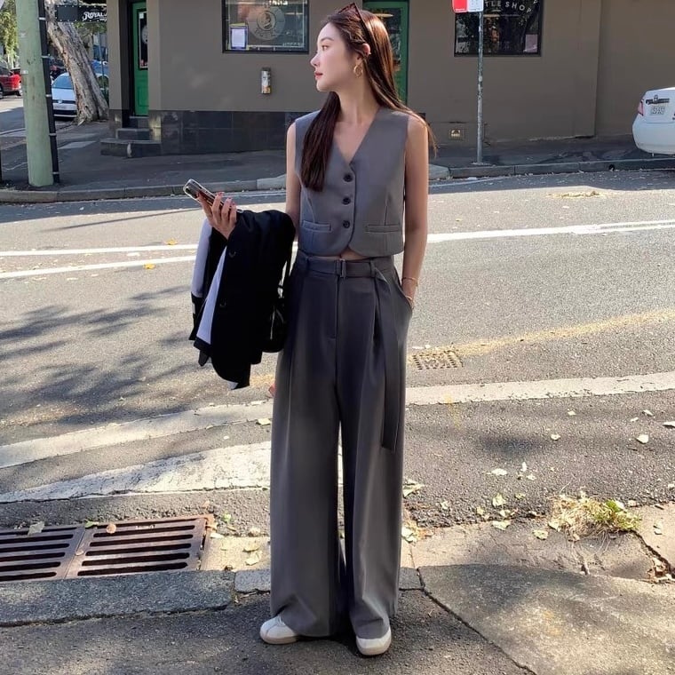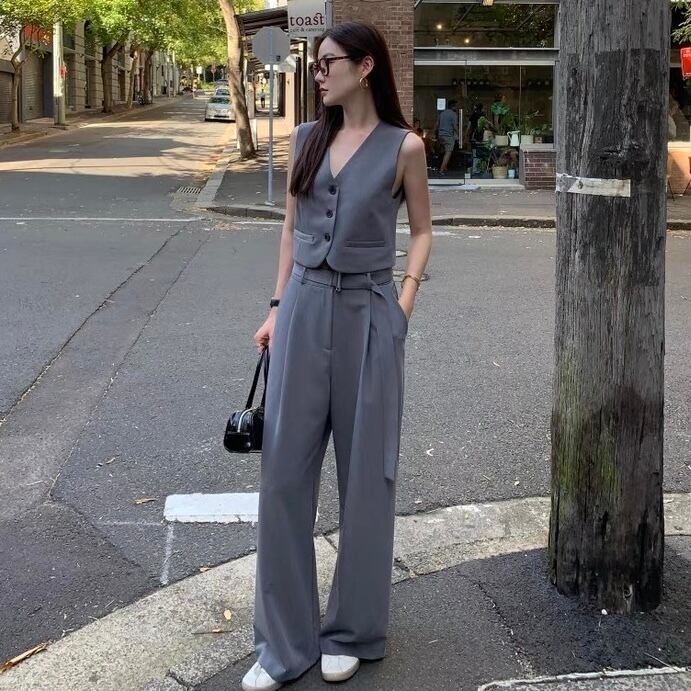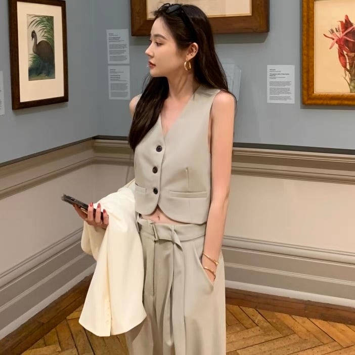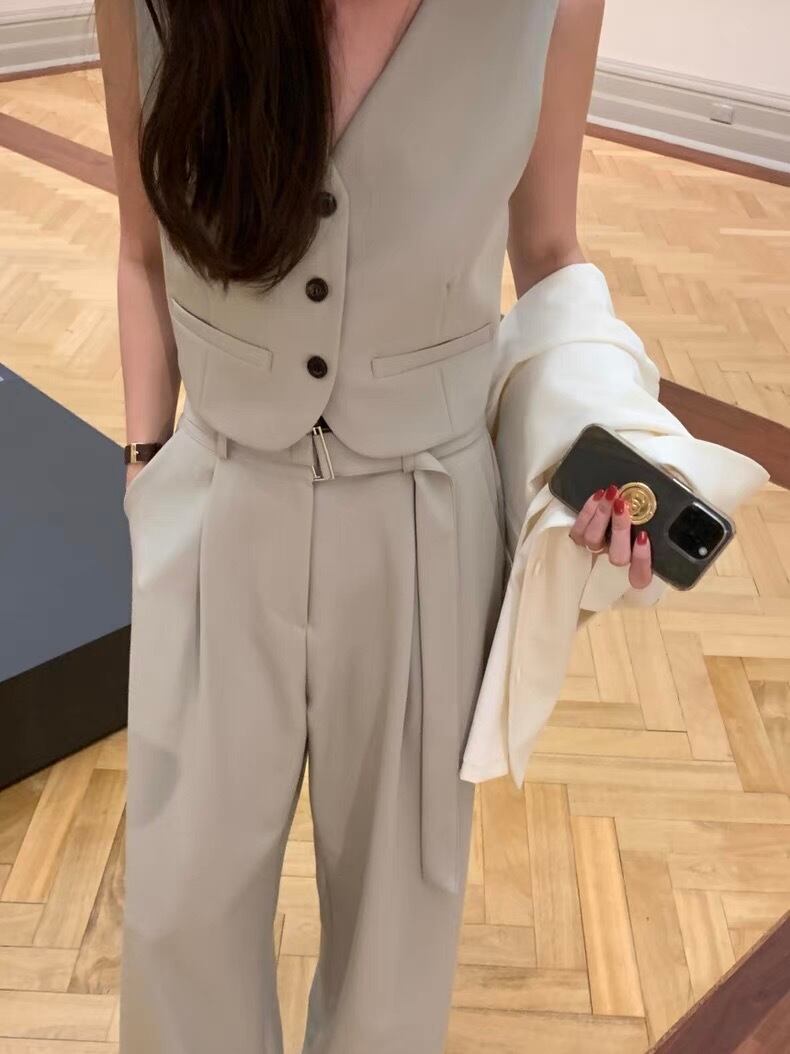 【set】着回しショート丈ベストxハイウエストワイドパンツ2色 AP0029