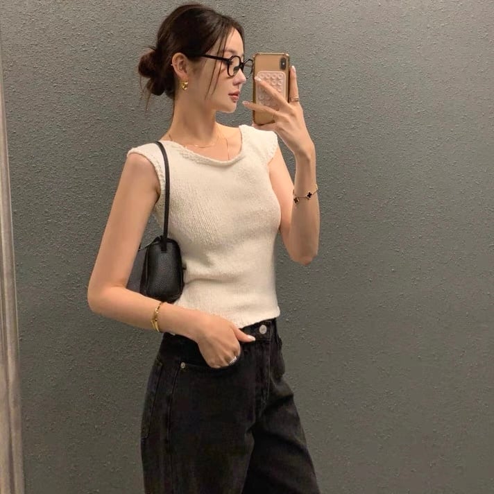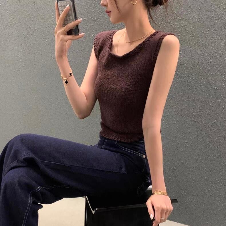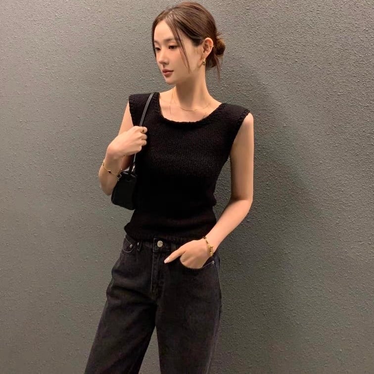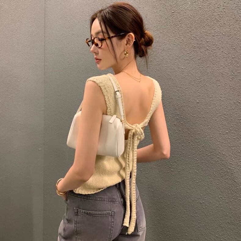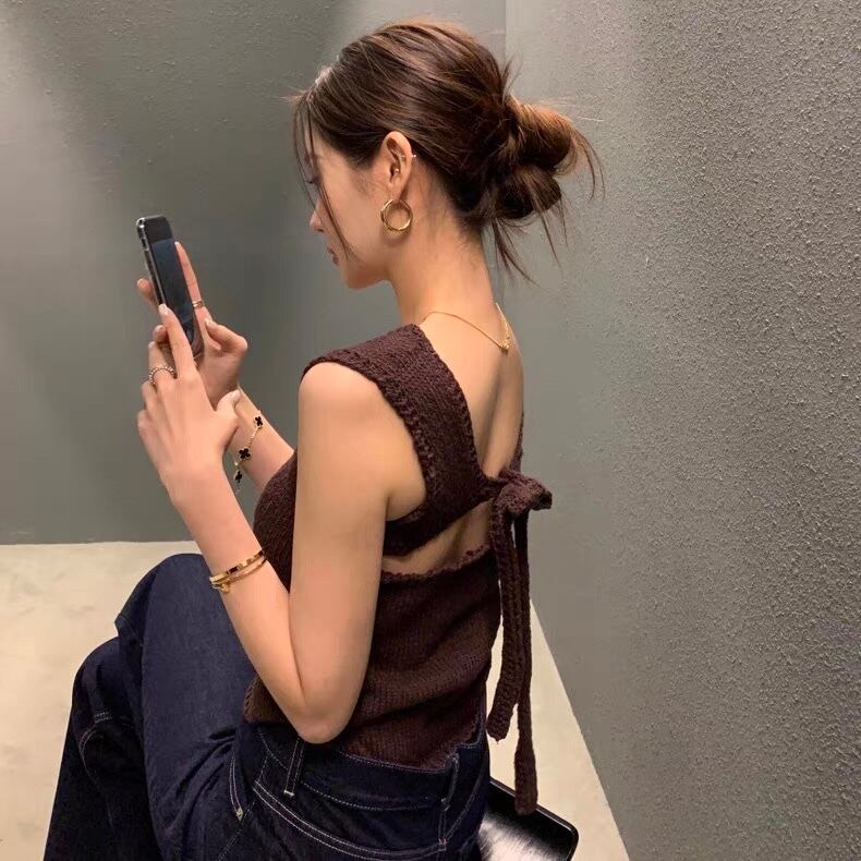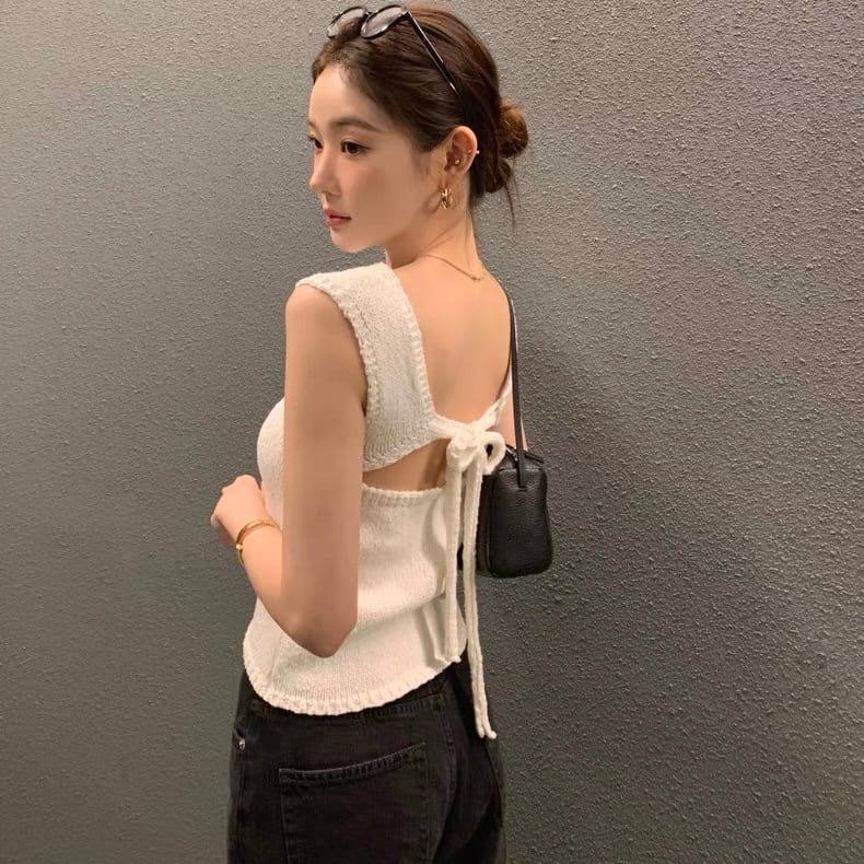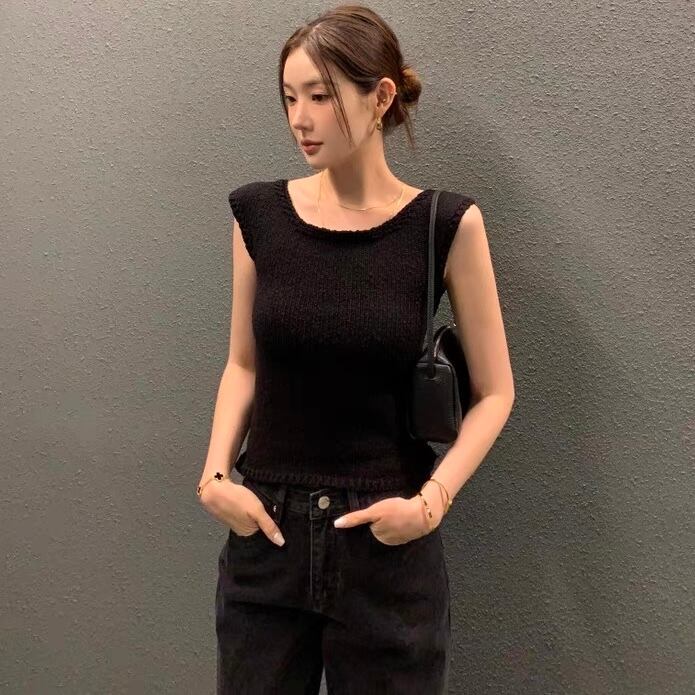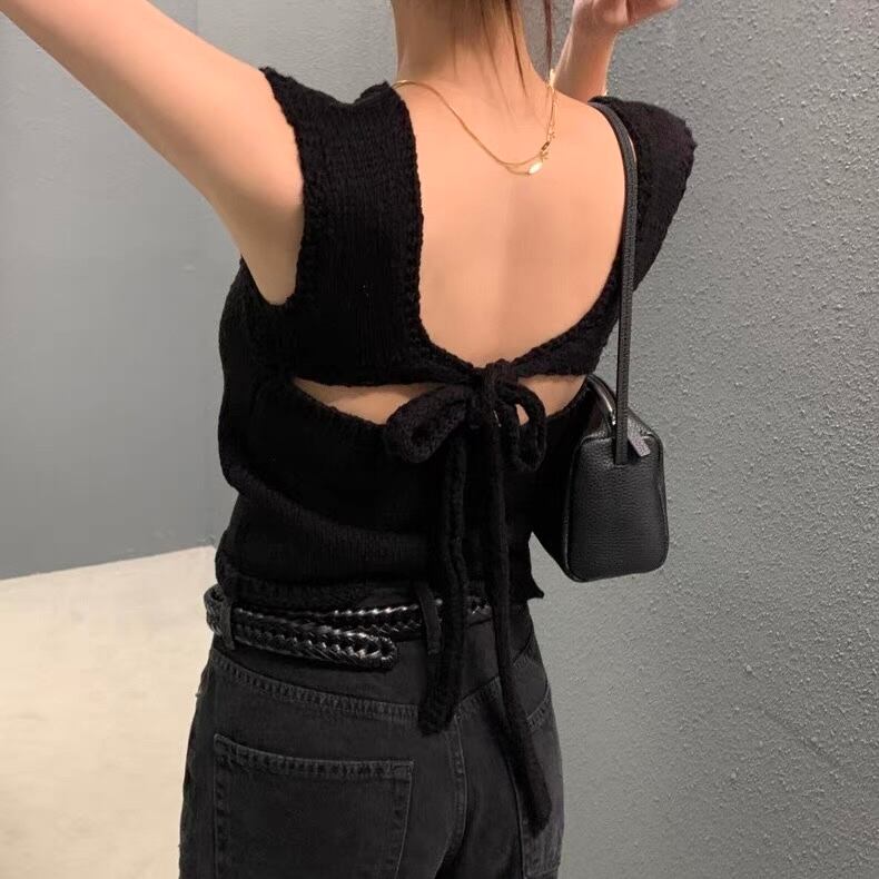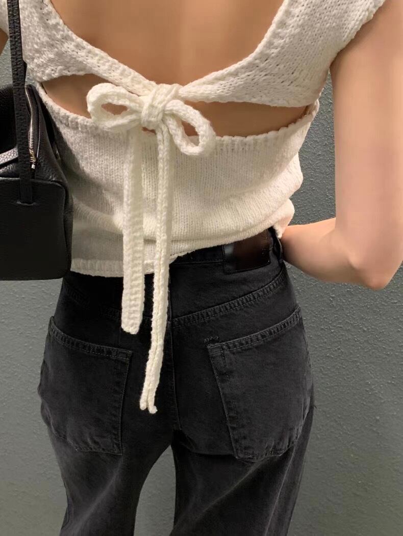【tops】バックデザインノースリーブニットトップス4色 MA0011