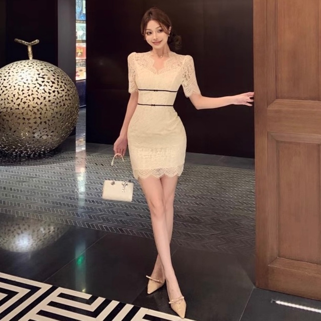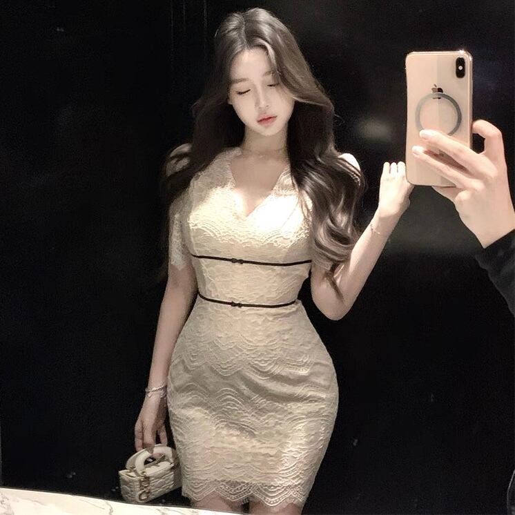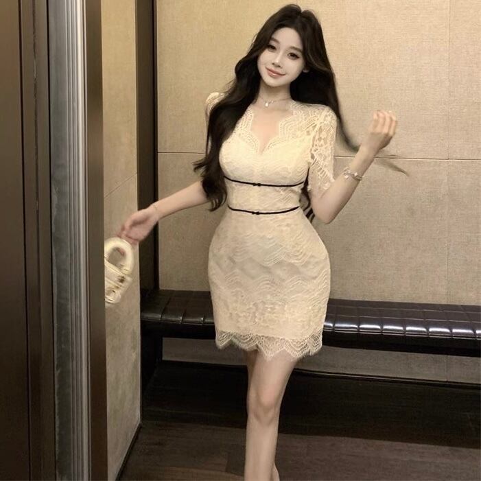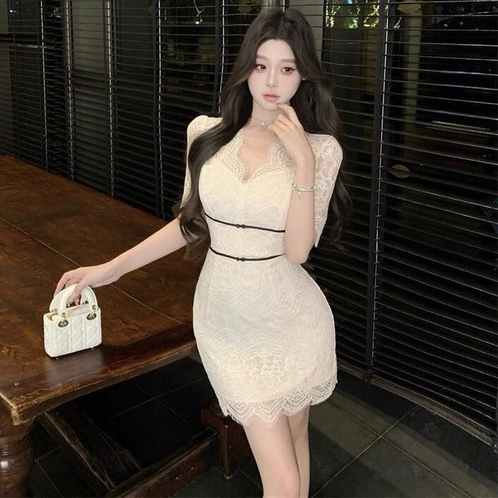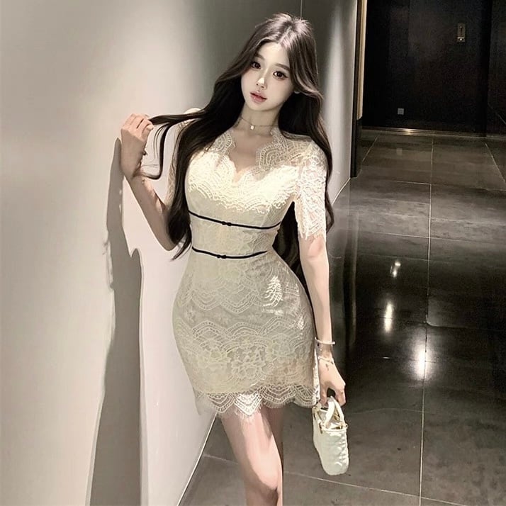 【dress】Vネックレースミニワンピース MA0017