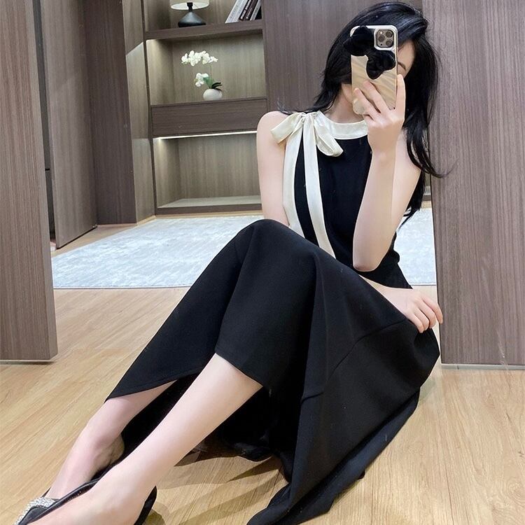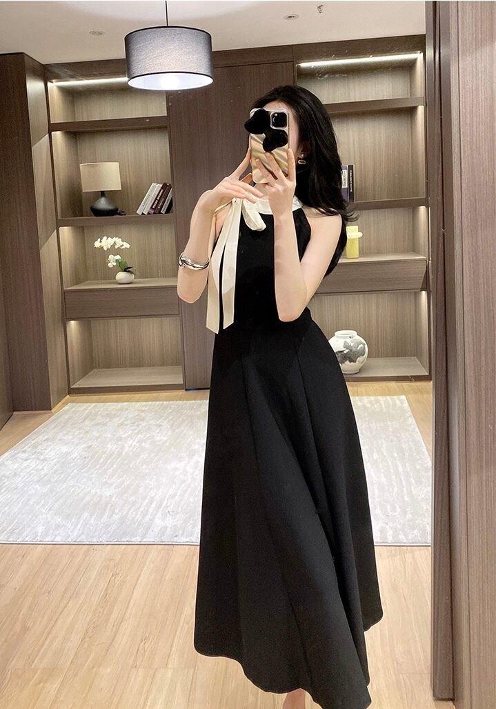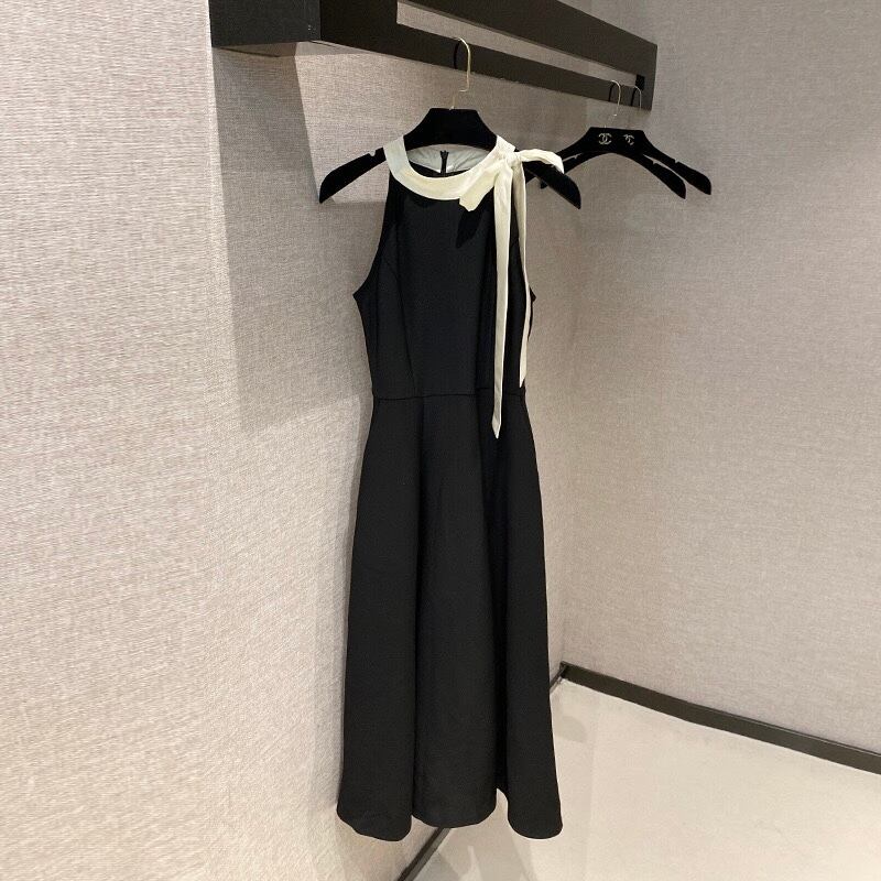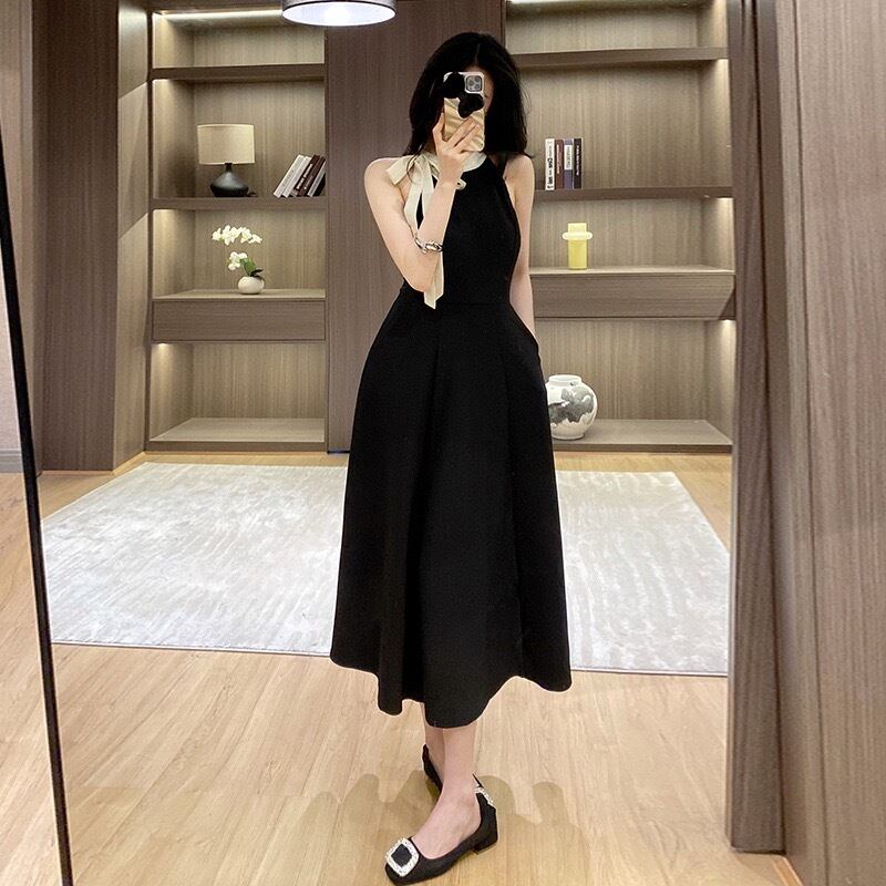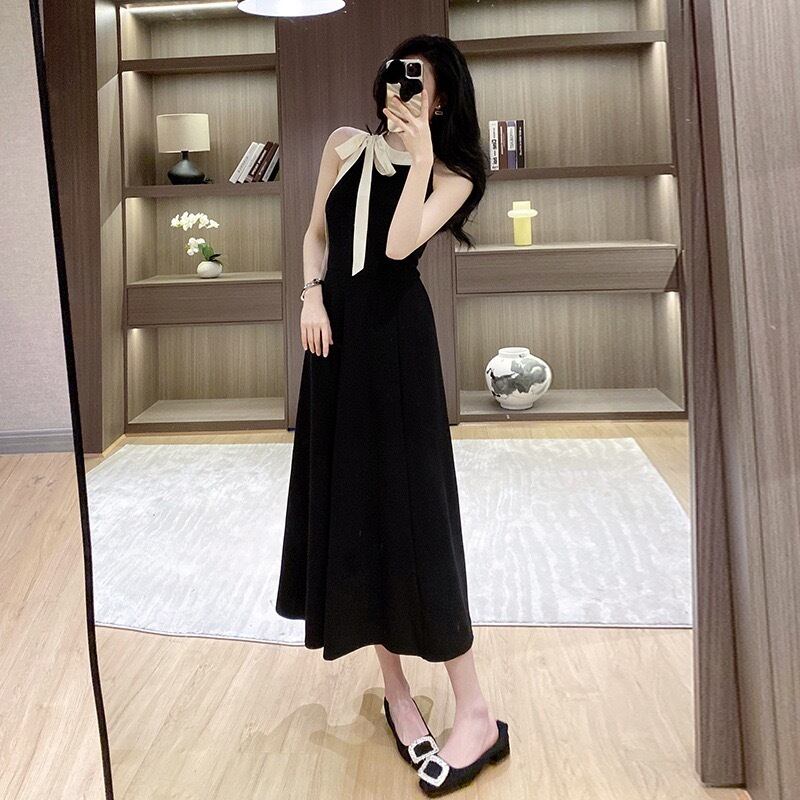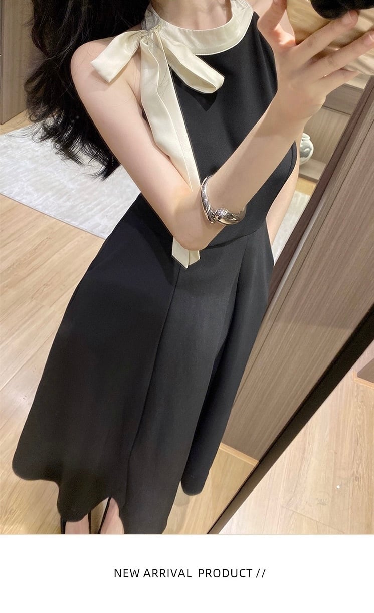 【dress】S〜2XLホルターネック配色ワンピース MA0028