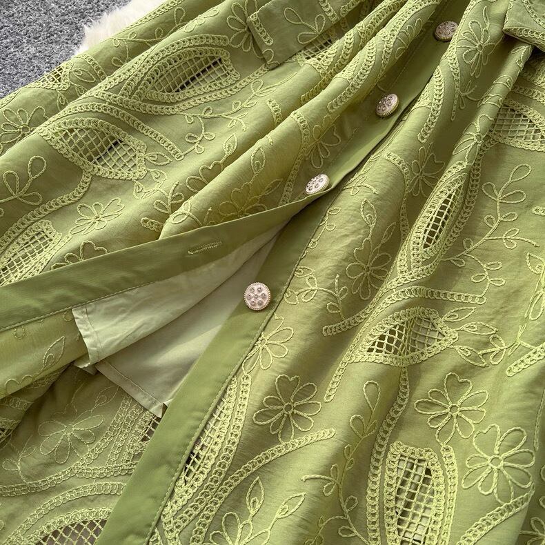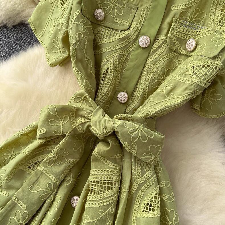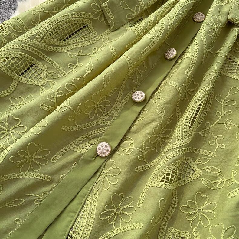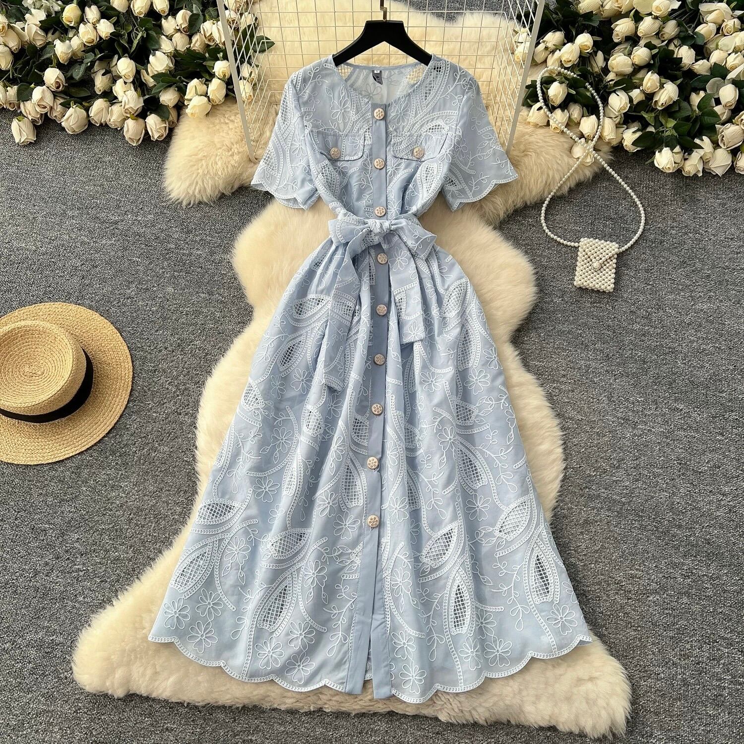 【dress】M〜2XLフロントボタン刺繍ワンピース4色 MA0061