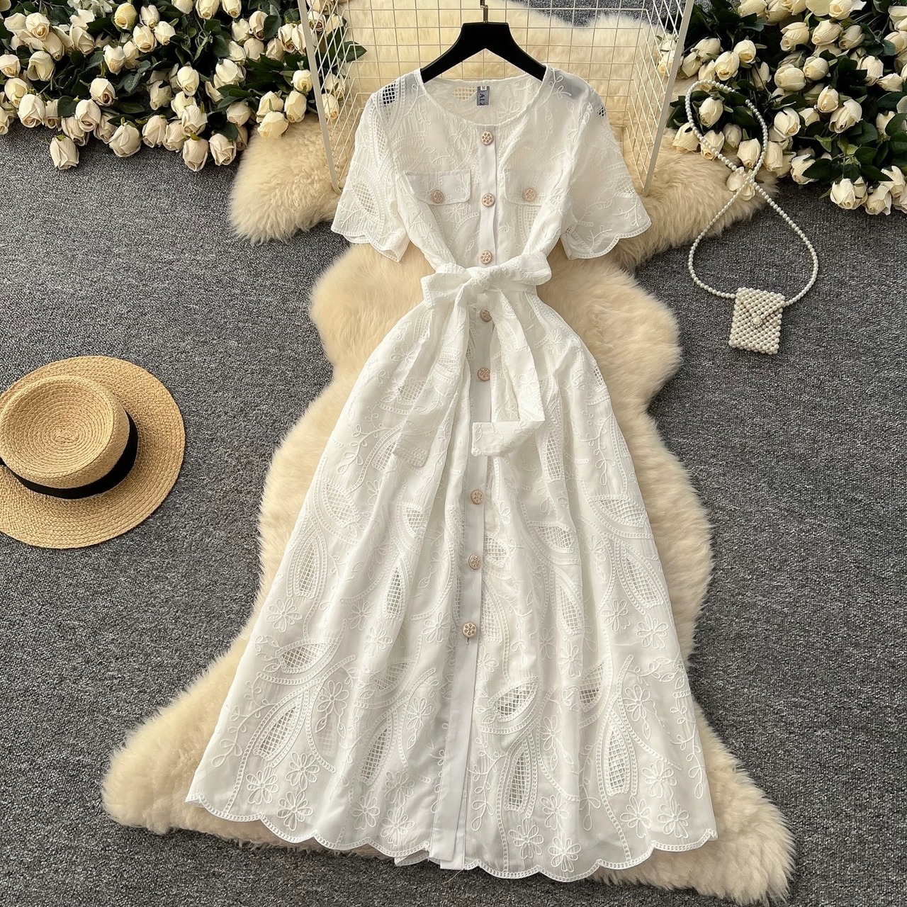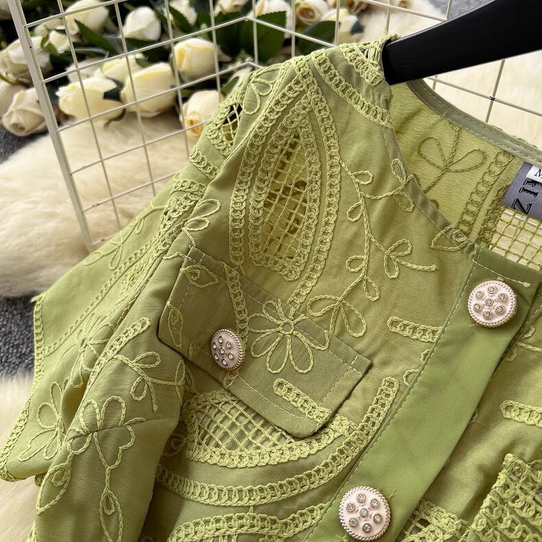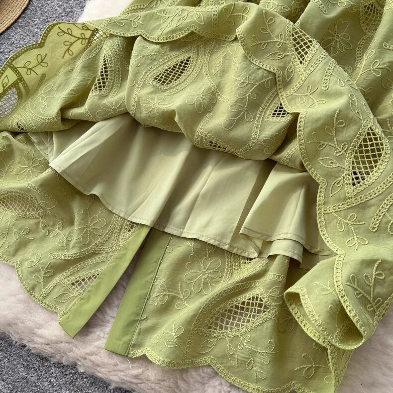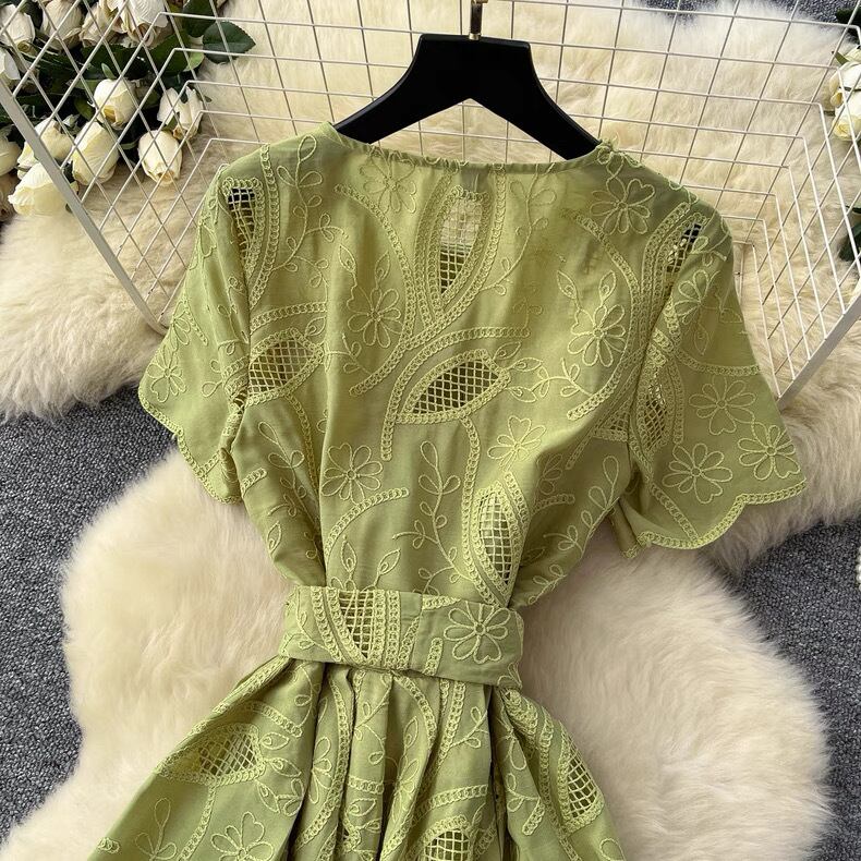 【dress】M〜2XLフロントボタン刺繍ワンピース4色 MA0061