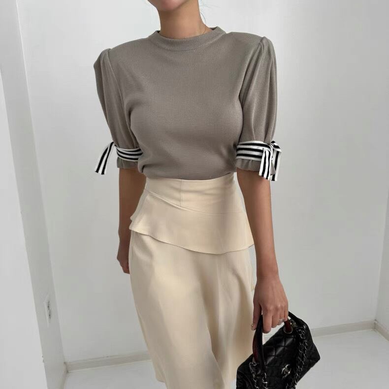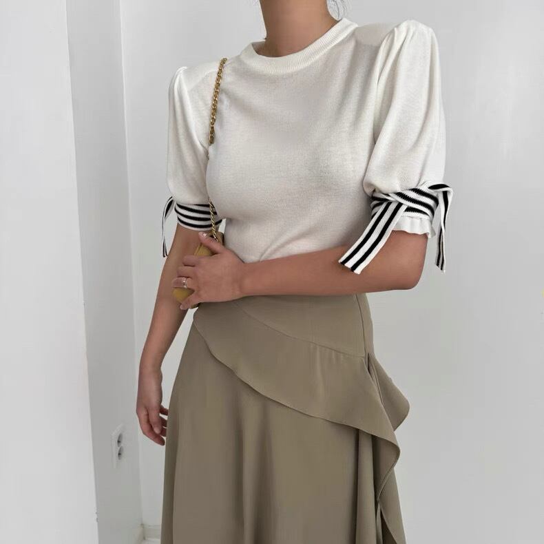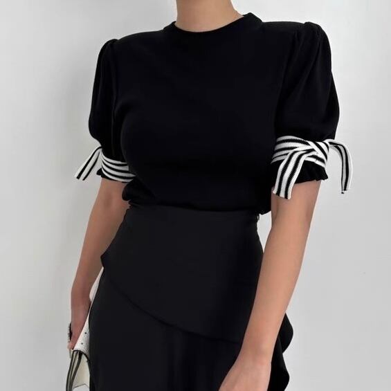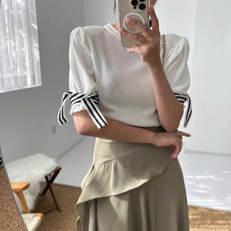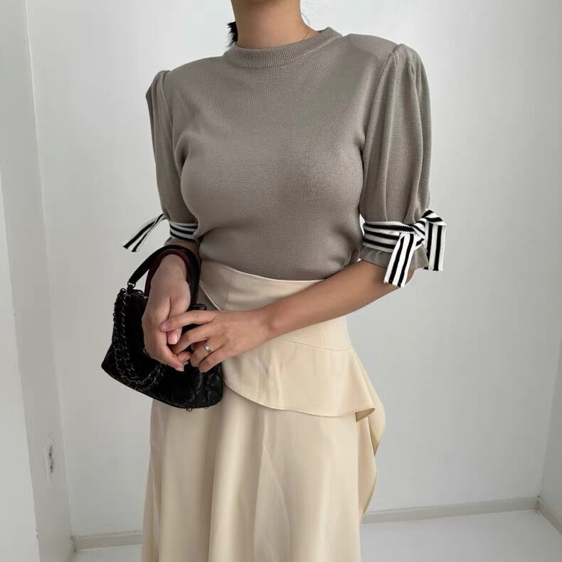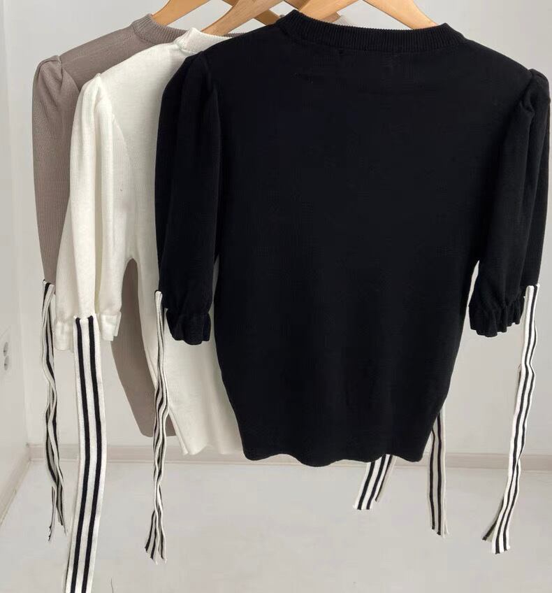 【tops】袖リボンニットトップス3色 MA0063