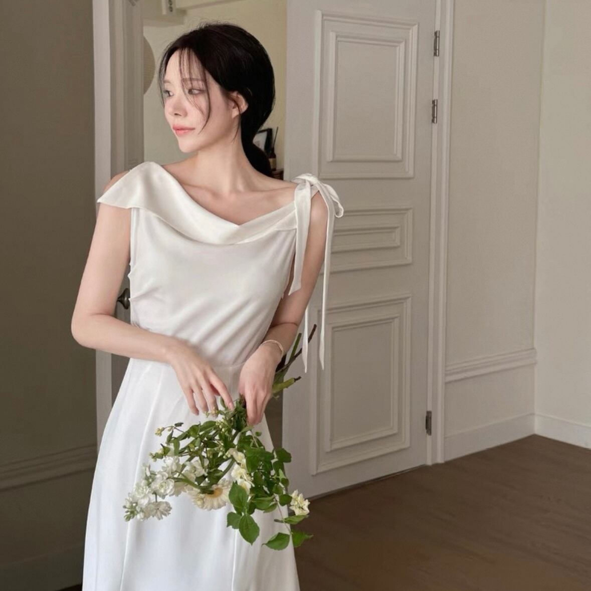 【dress】肩リボンノースリーブワンピース2色 MA0073