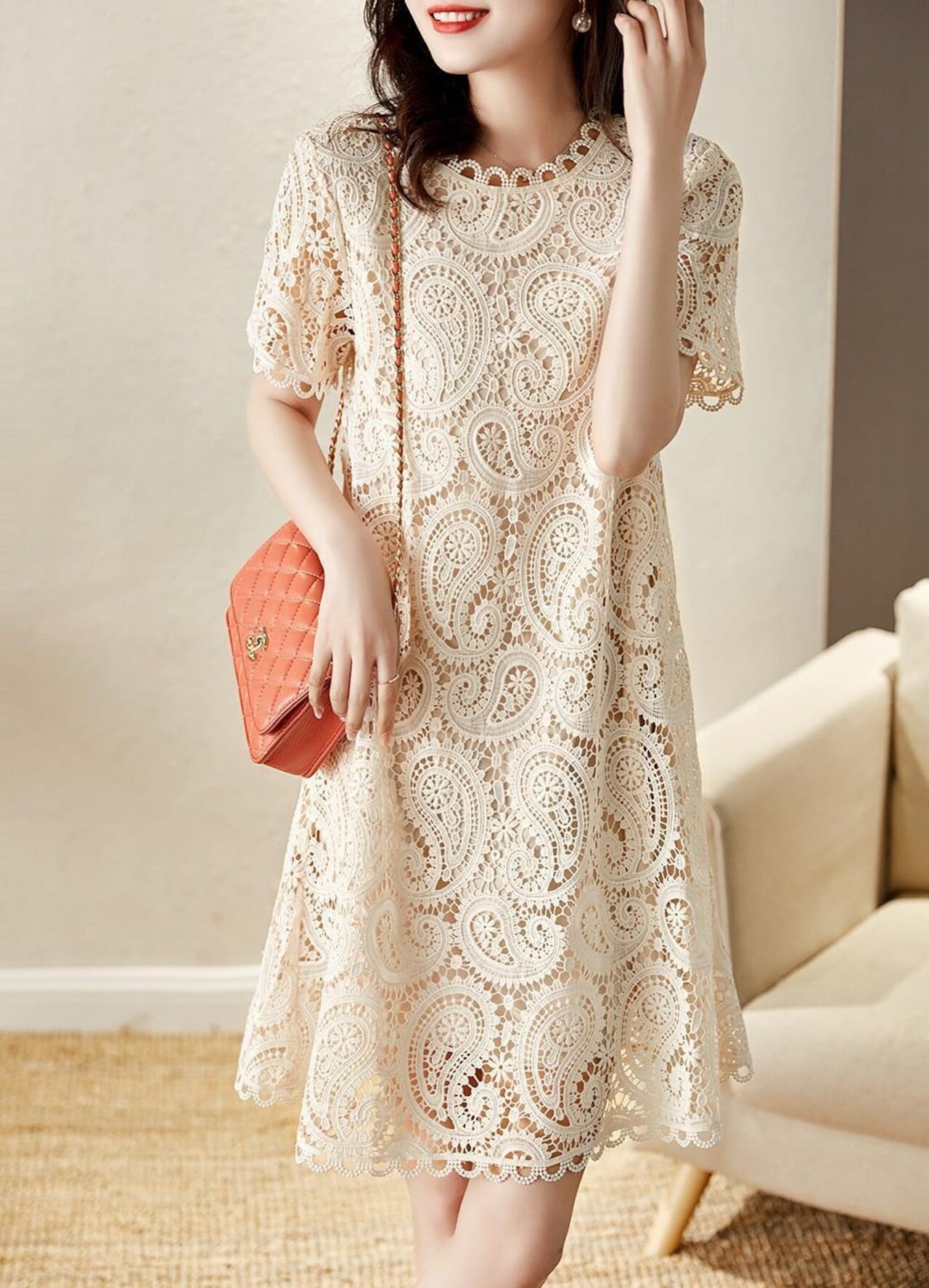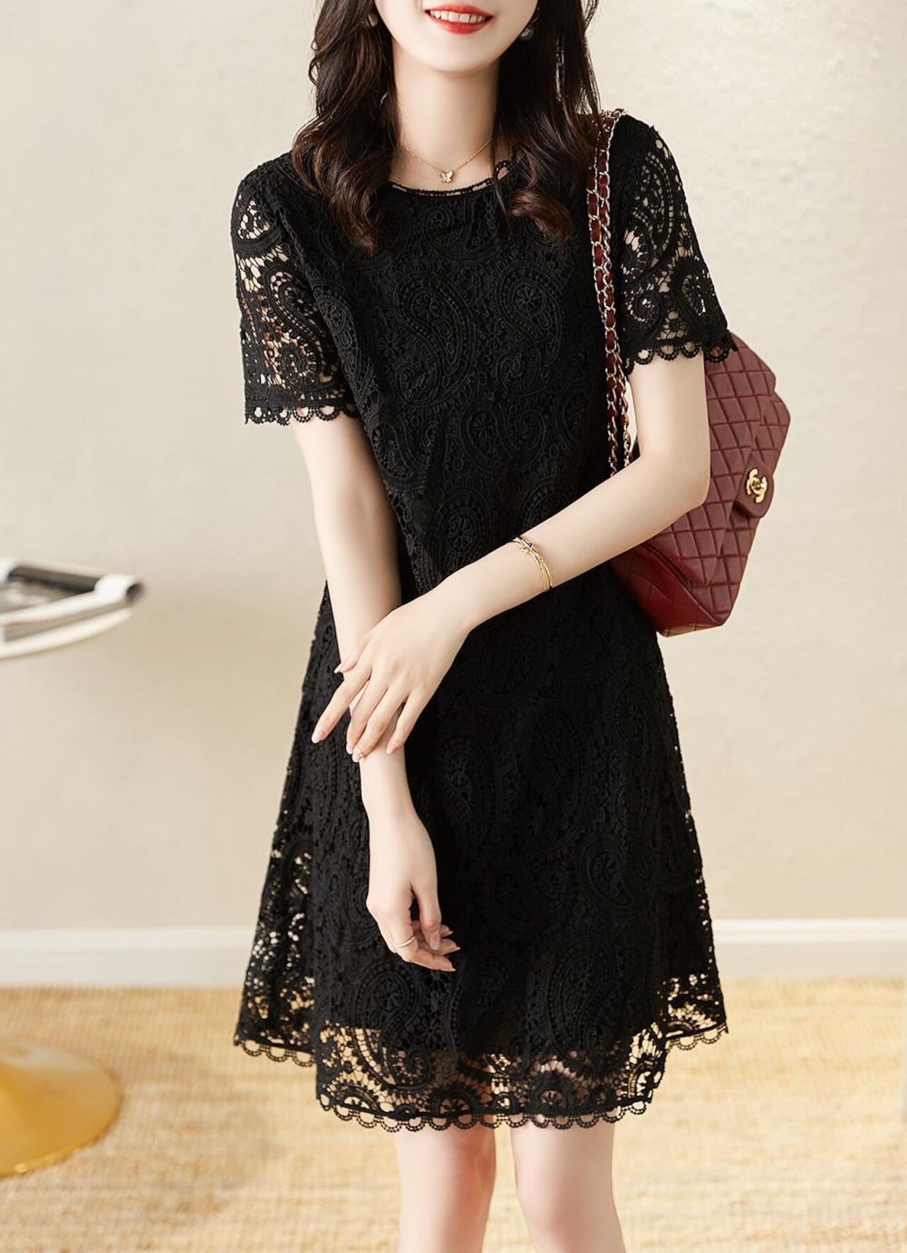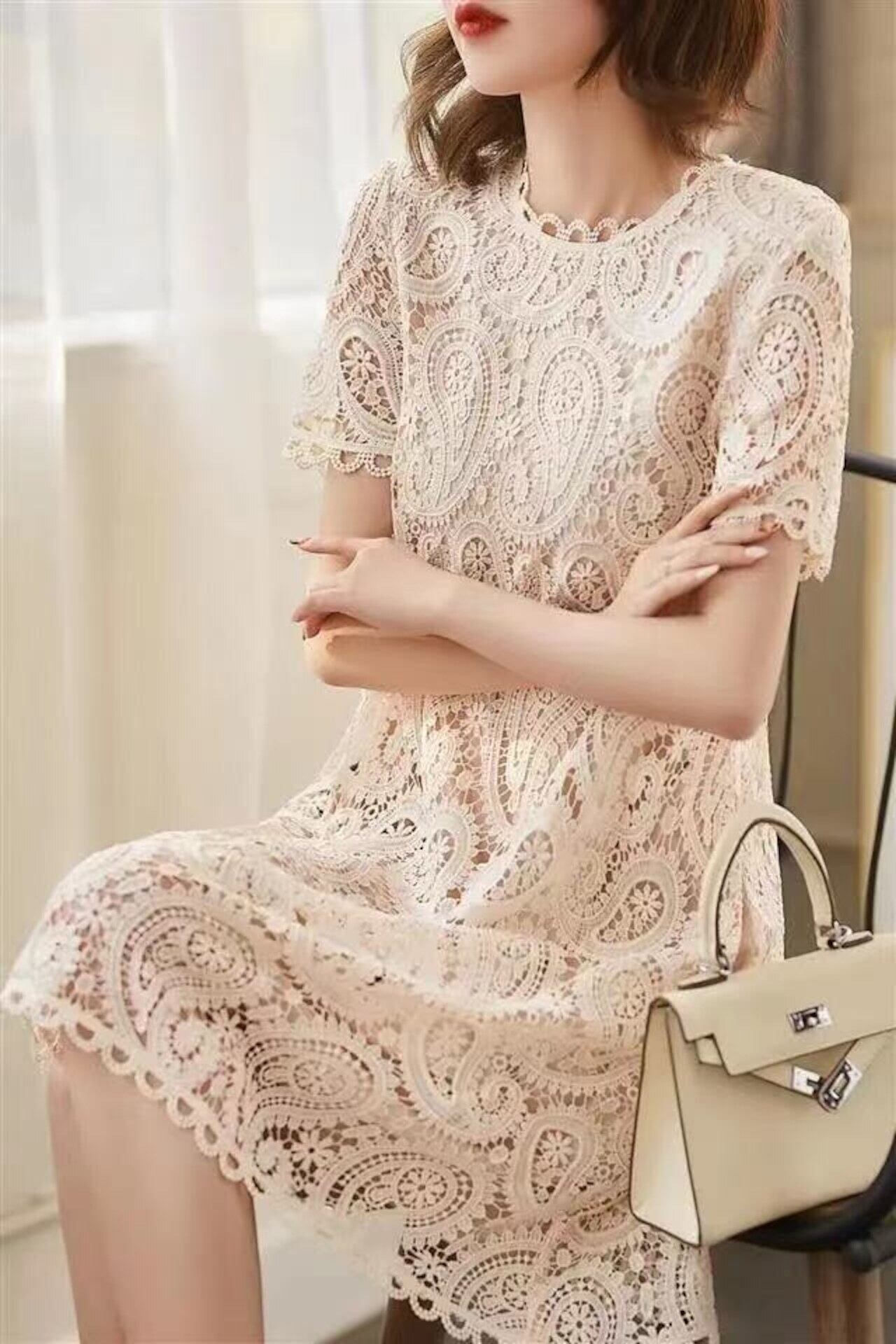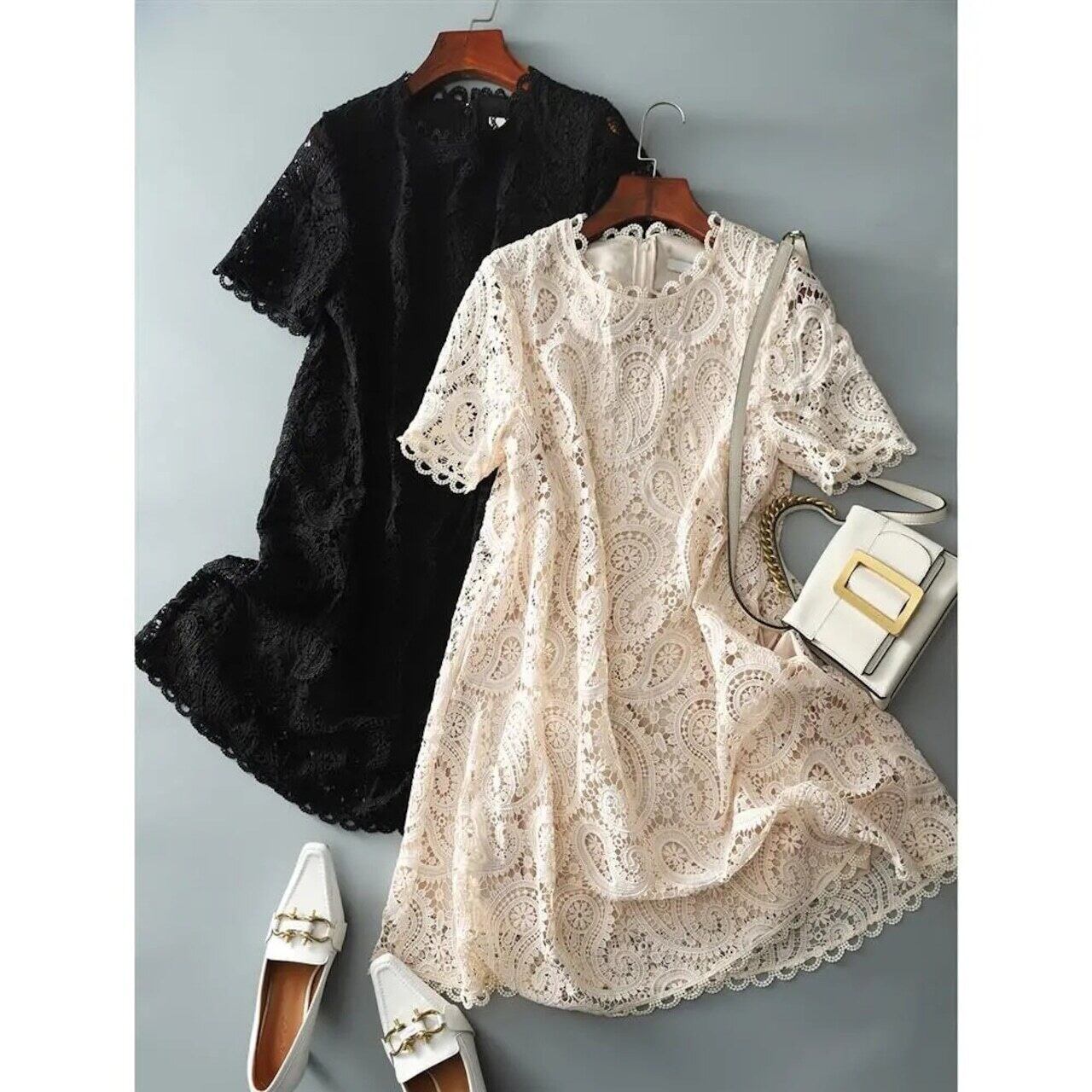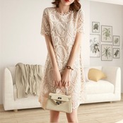 【dress】M〜2XLレースAラインワンピース2色 MA0084