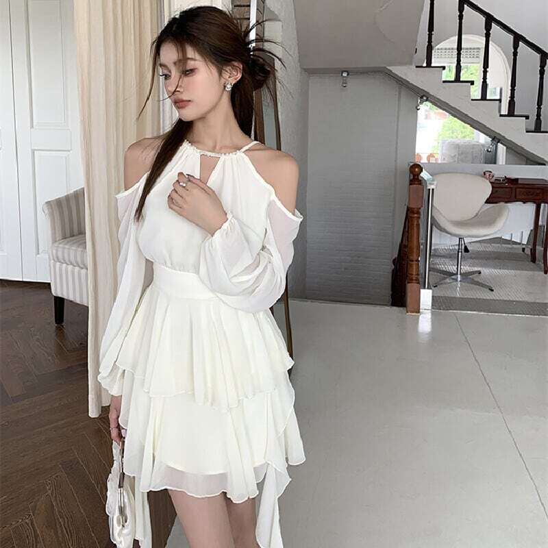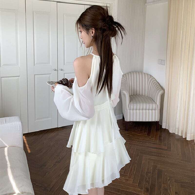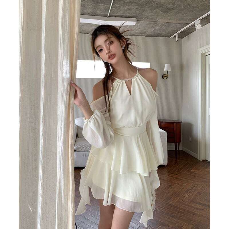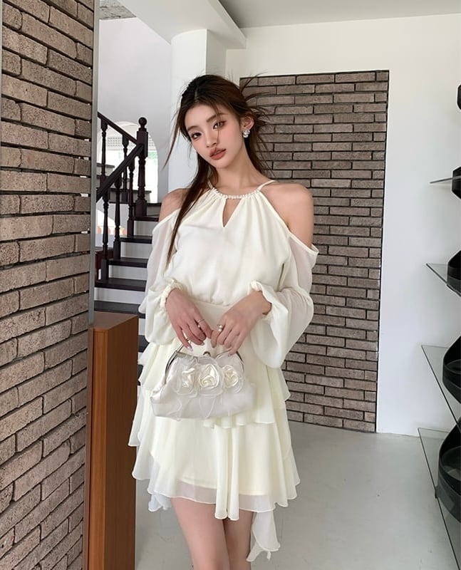 【dress】オフショルダーランタンスリーブワンピース HK0111