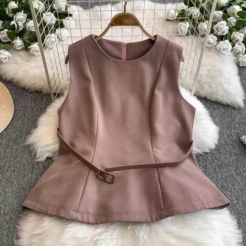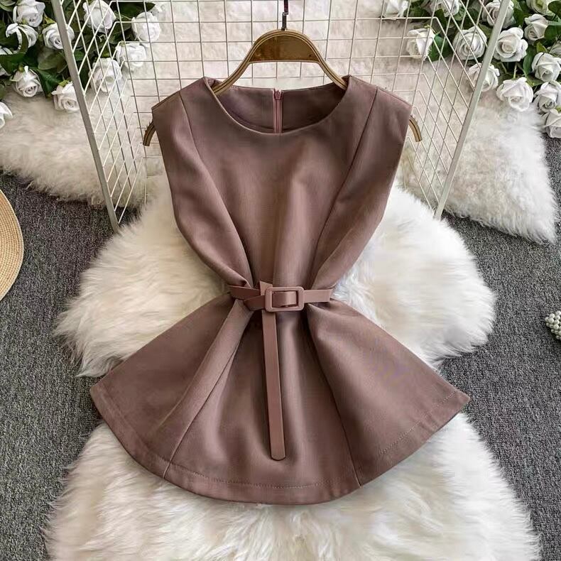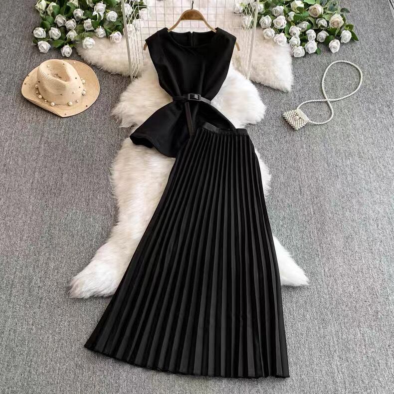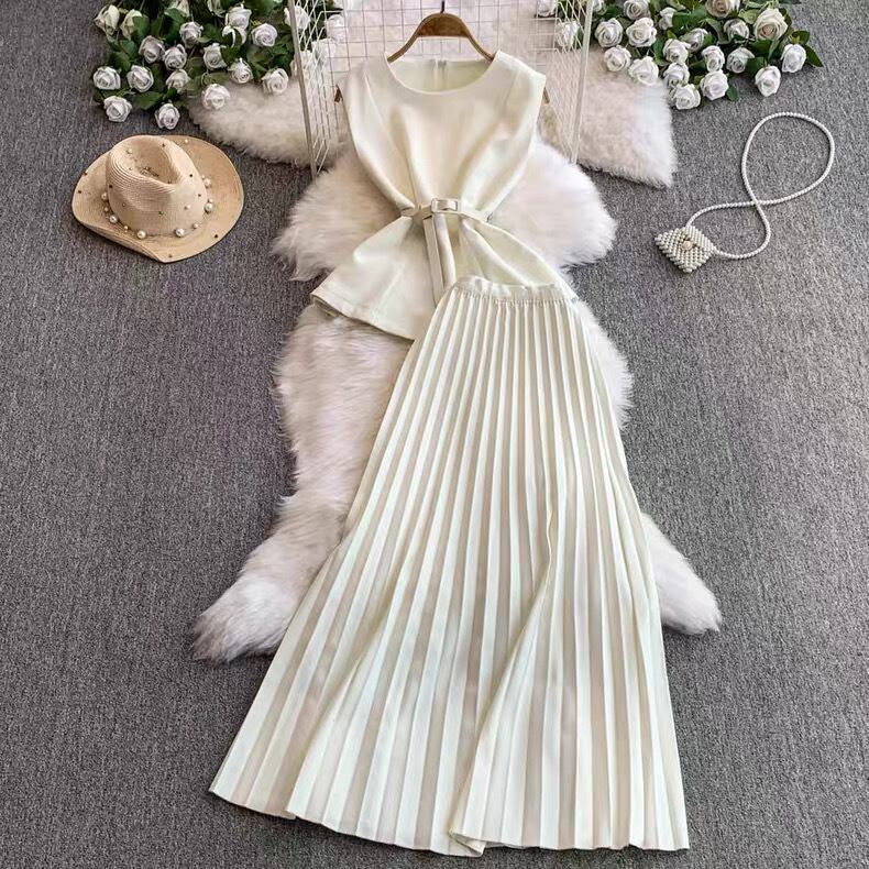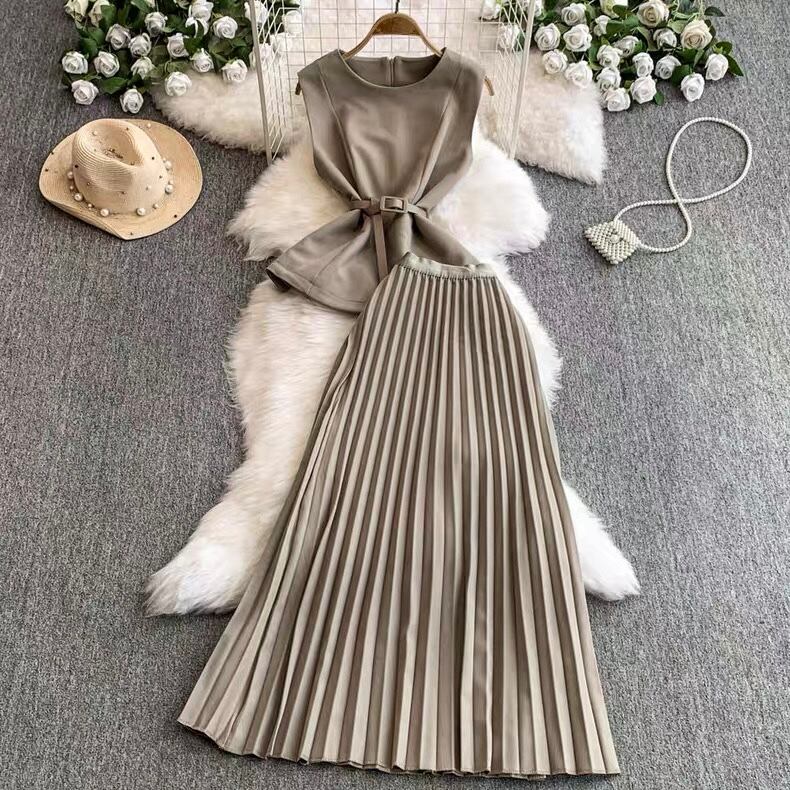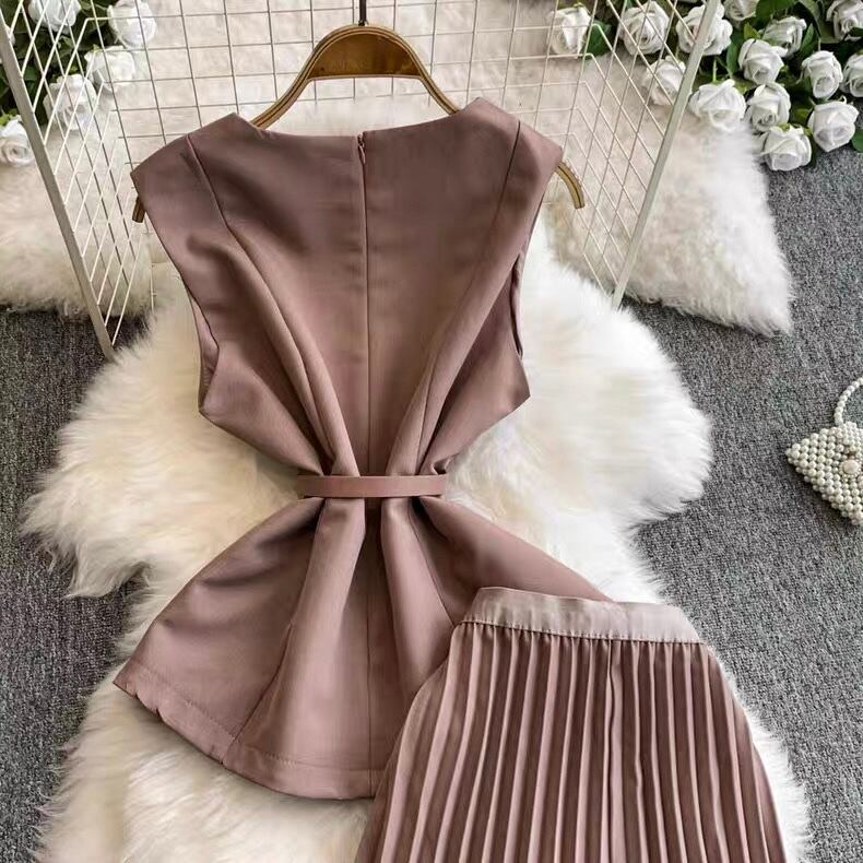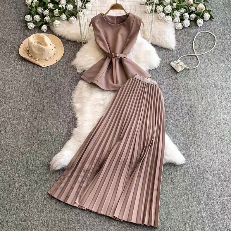 【set】ベルト付きノースリーブトップスxスカート4色 MA0099