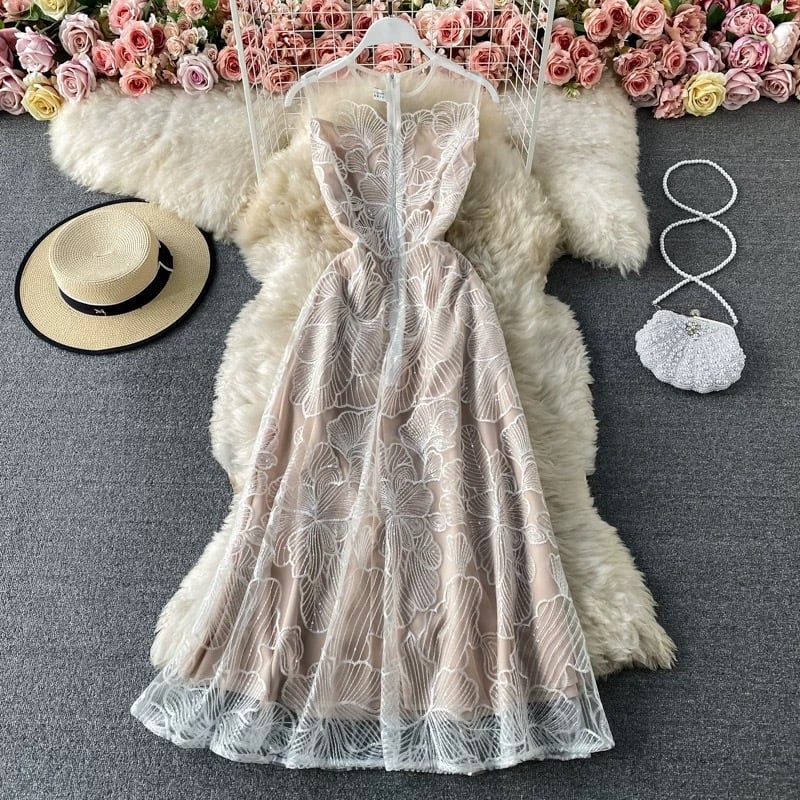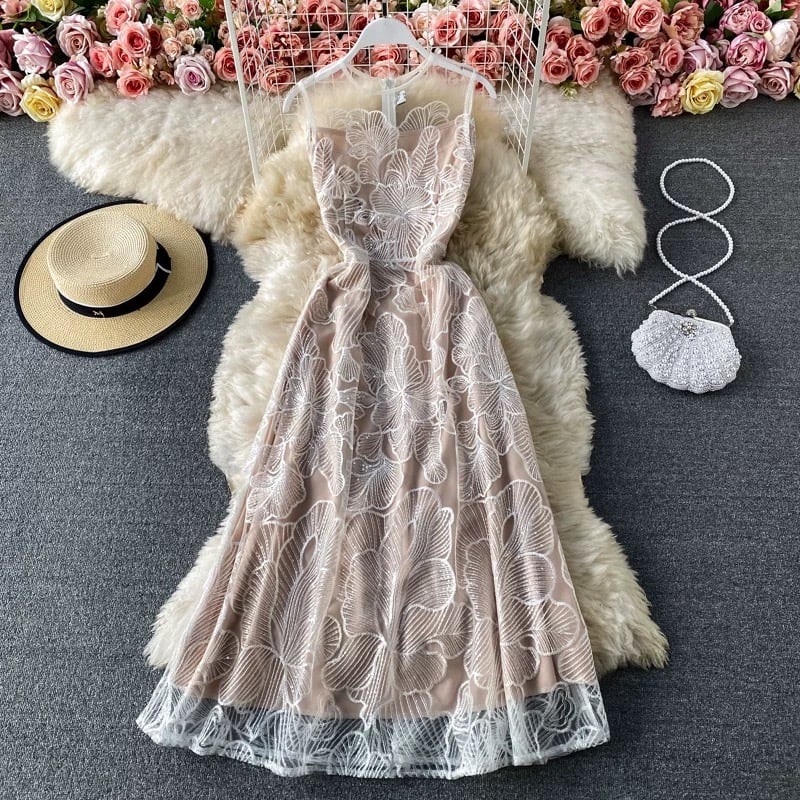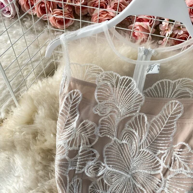【dress】刺繍チュールノースリーブワンピース MA0101