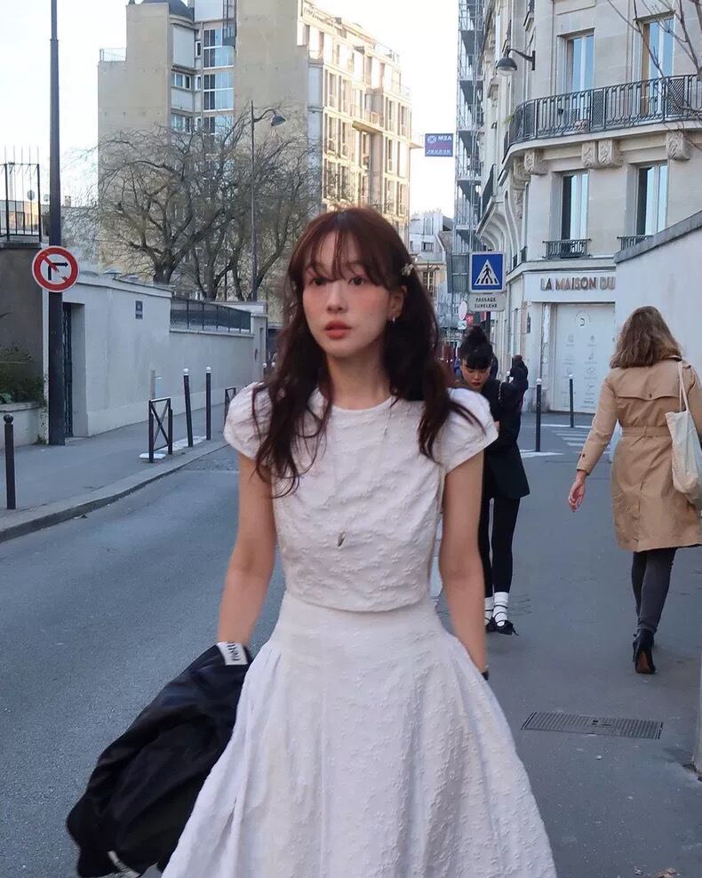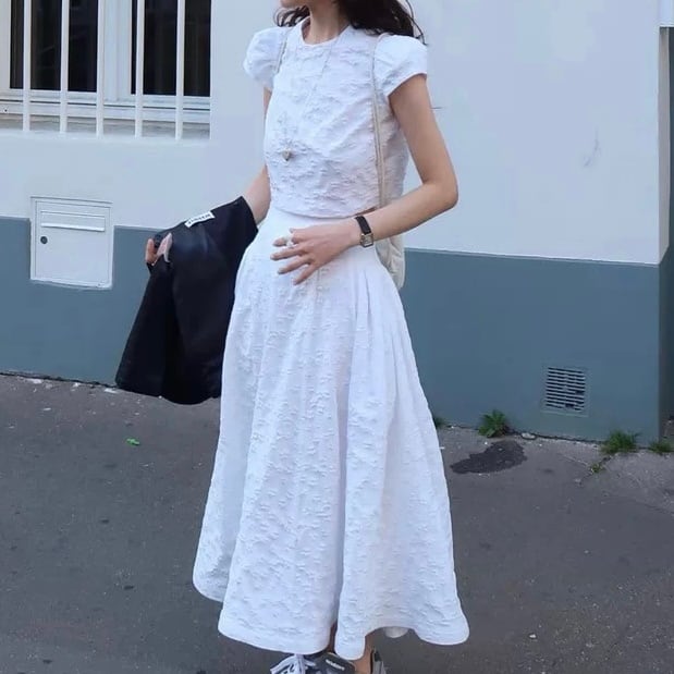 【set】ショート丈Tシャツxハイウエストスカート MA0109