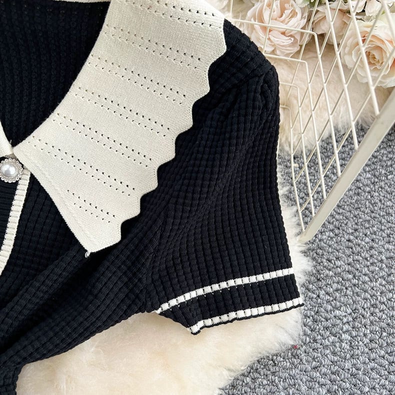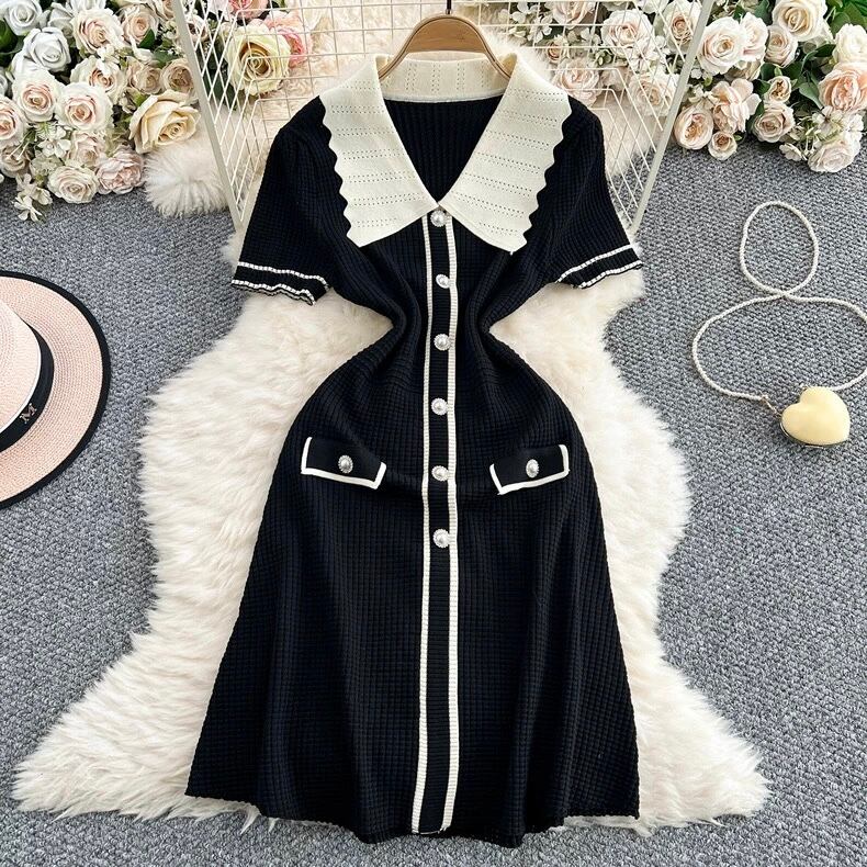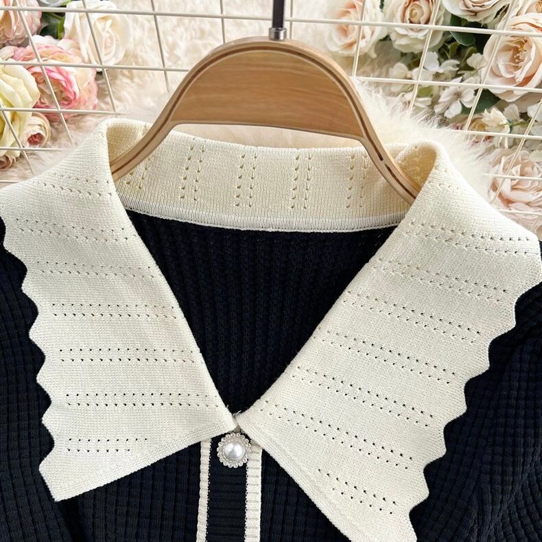 【dress】ビッグ襟配色ニットワンピース2色 MA2803