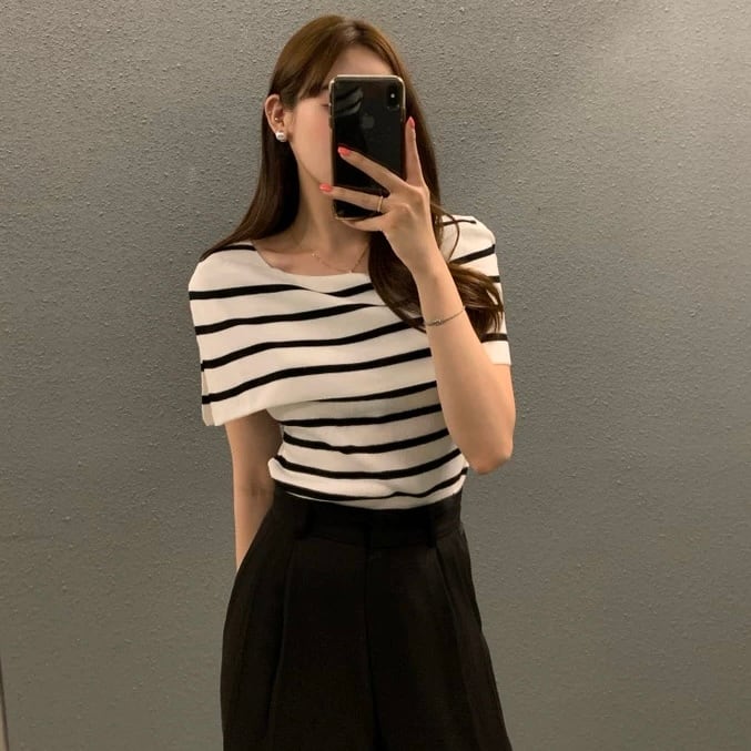 ボーダー柄/ブラック/ホワイト/ブラウン