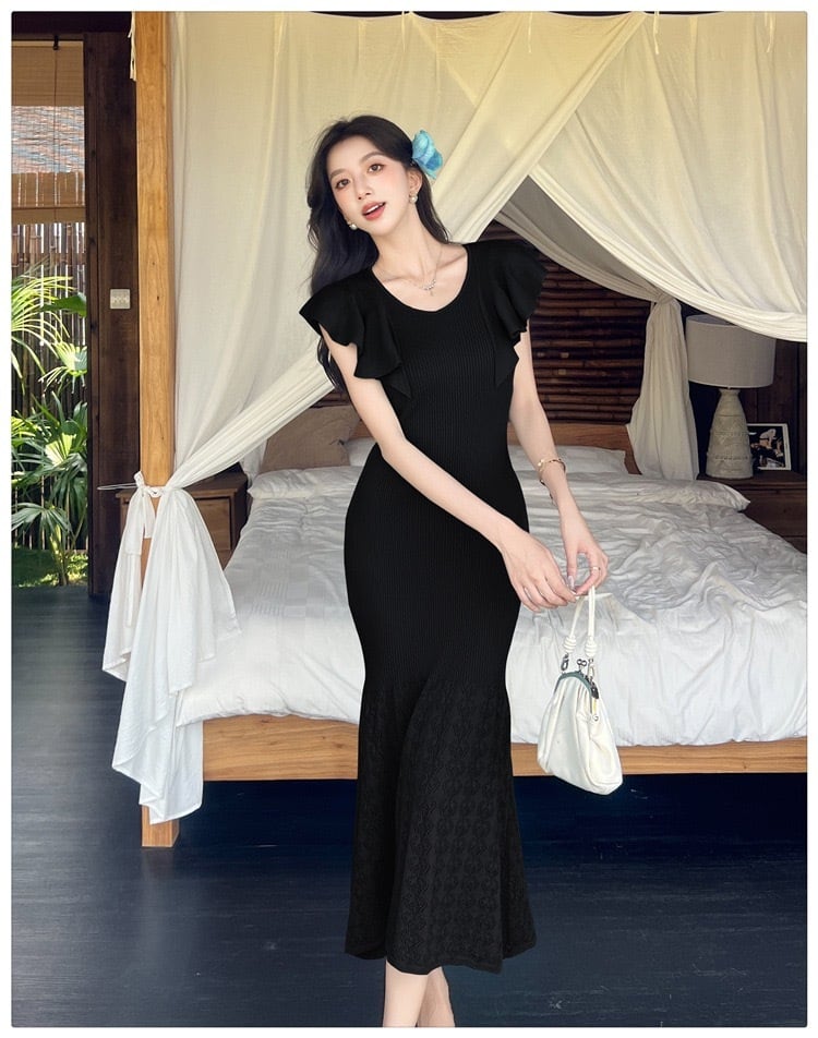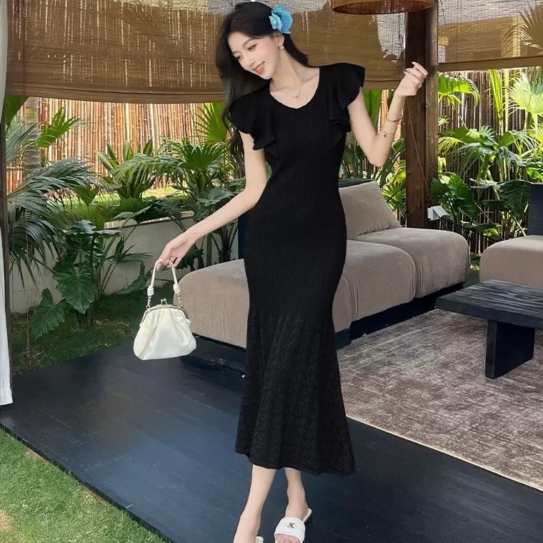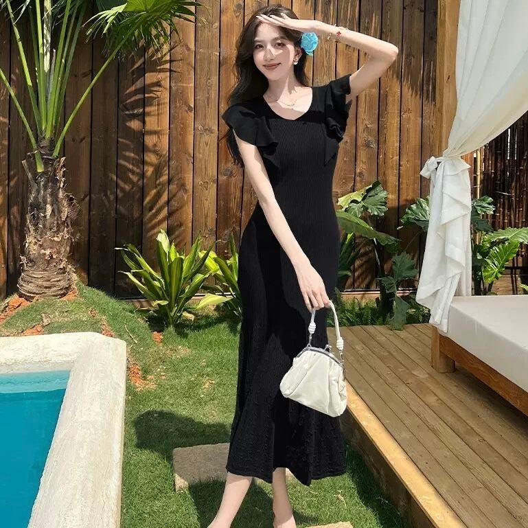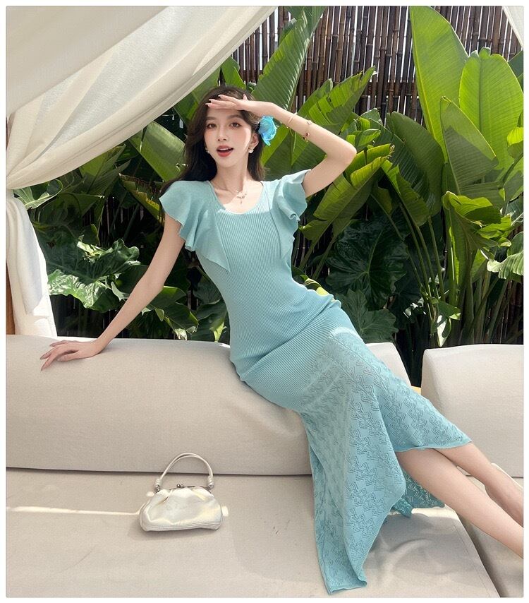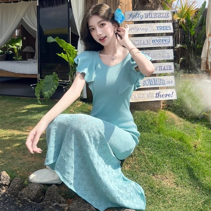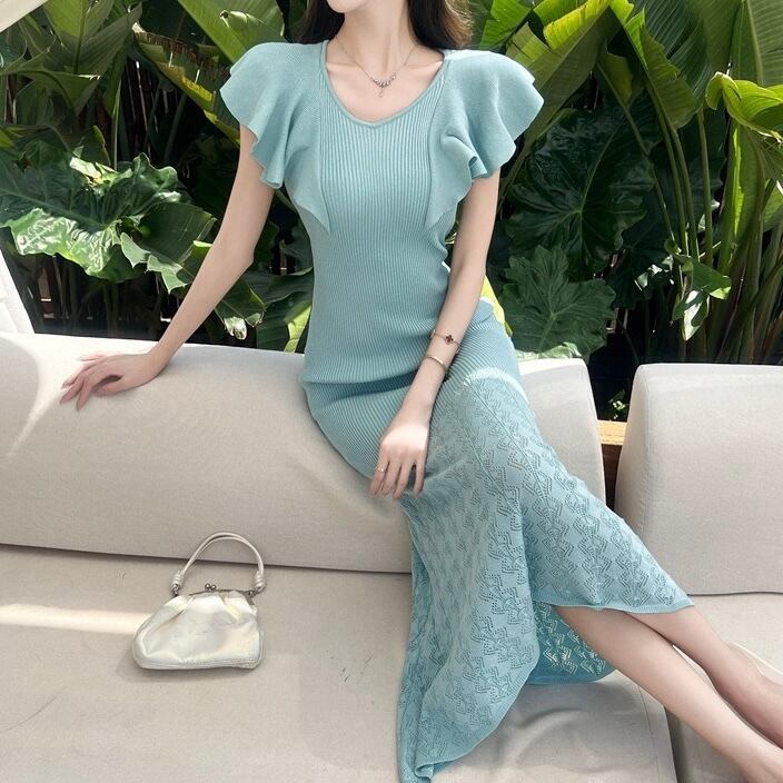 【dress】Vネックフレアニットワンピース2色 MA3003
