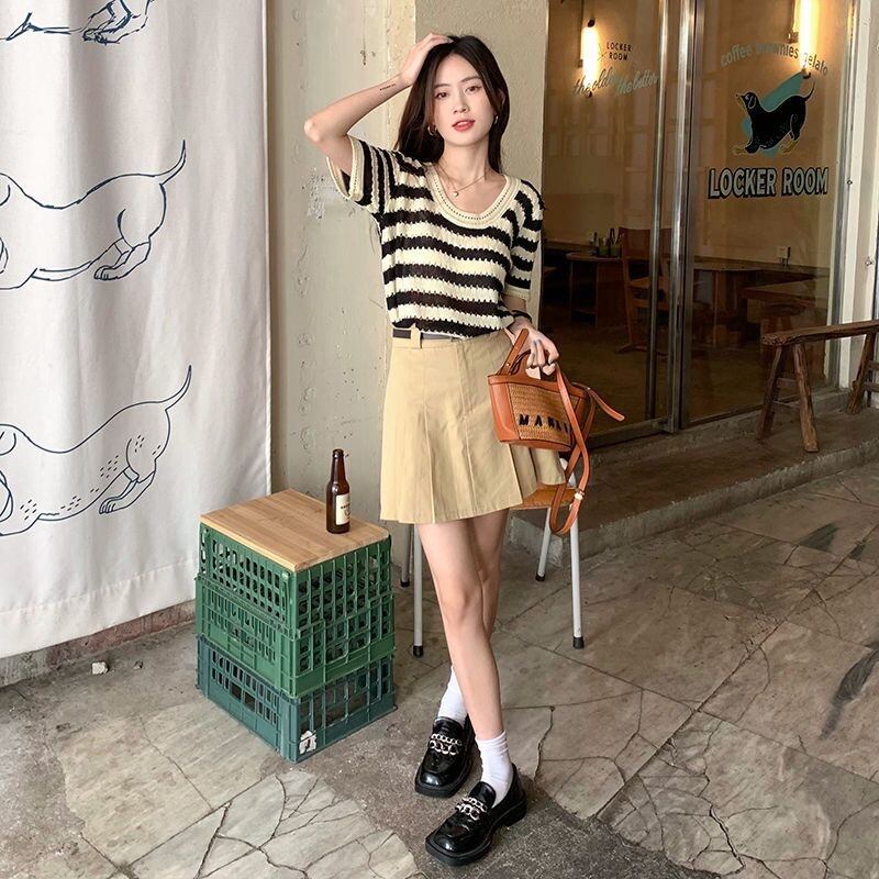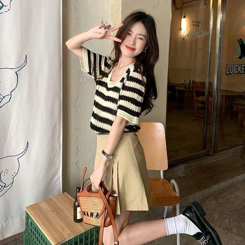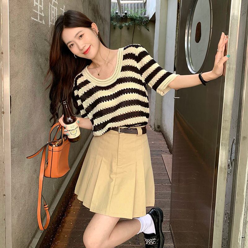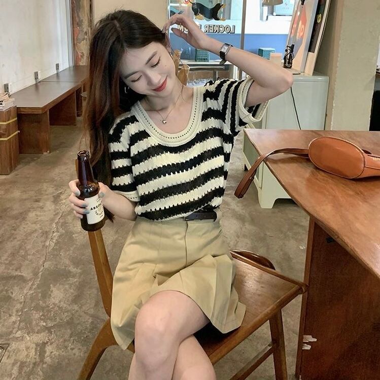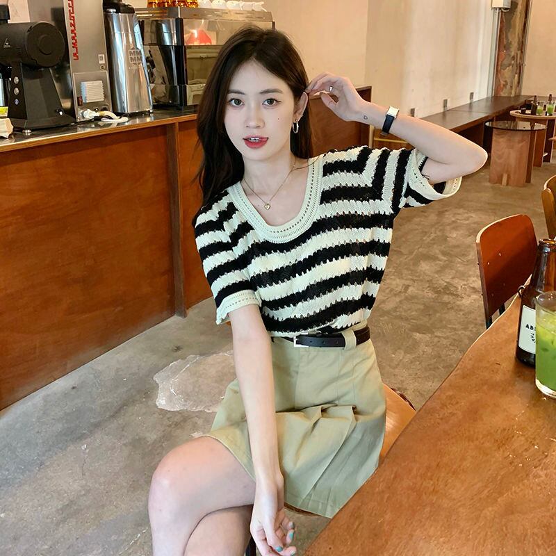 【tops】ボーダー柄配色ニットトップス RK3001