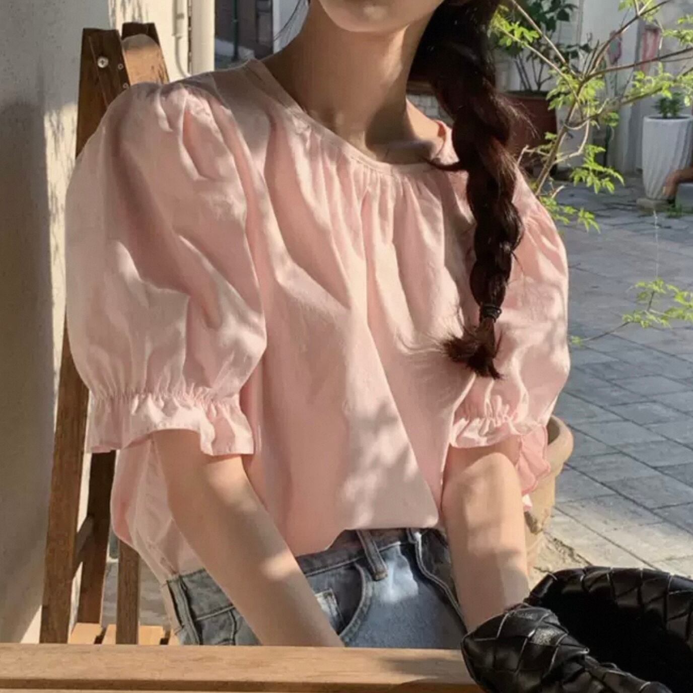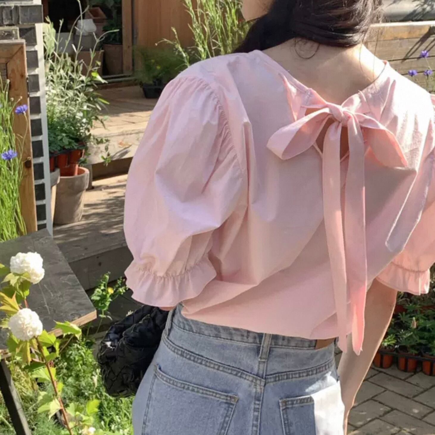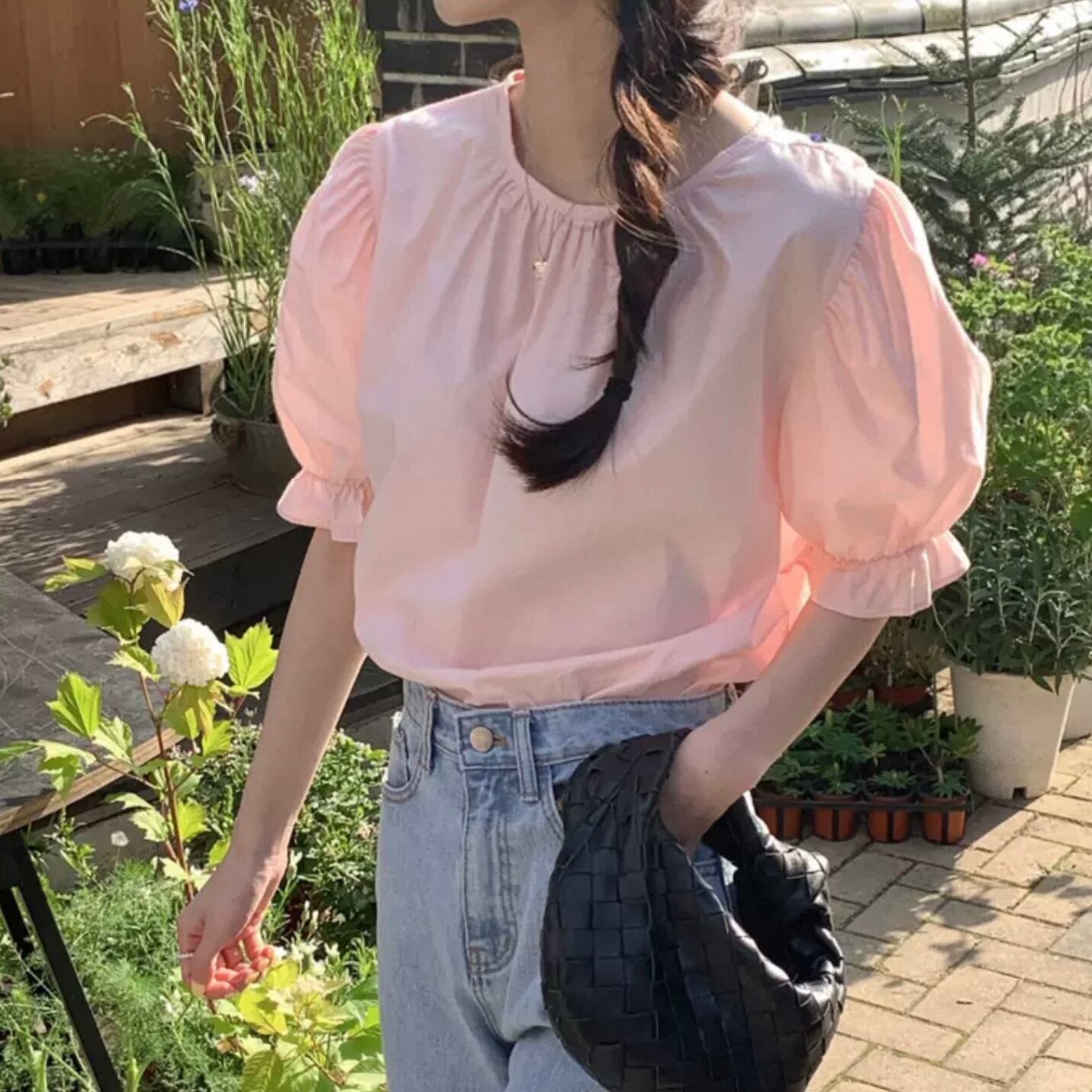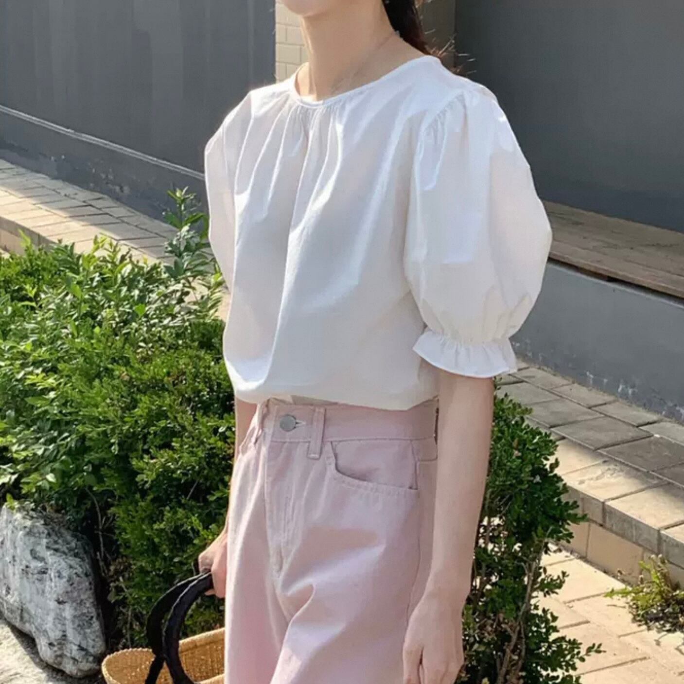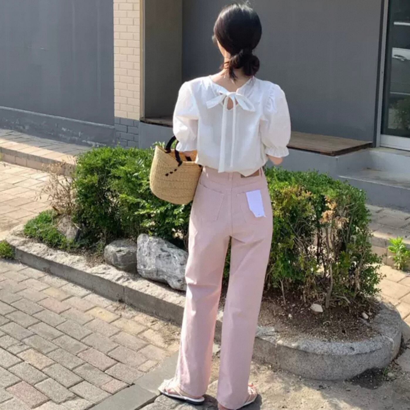 【tops】バックリボン半袖パフスリーブトップス2色 HK0120