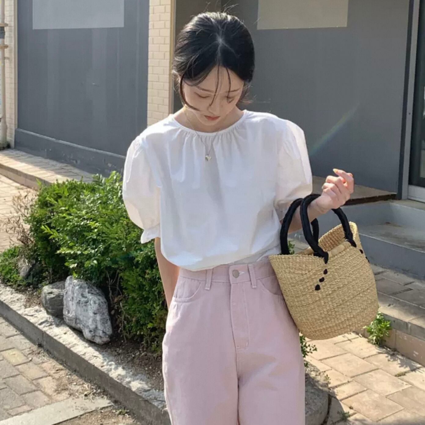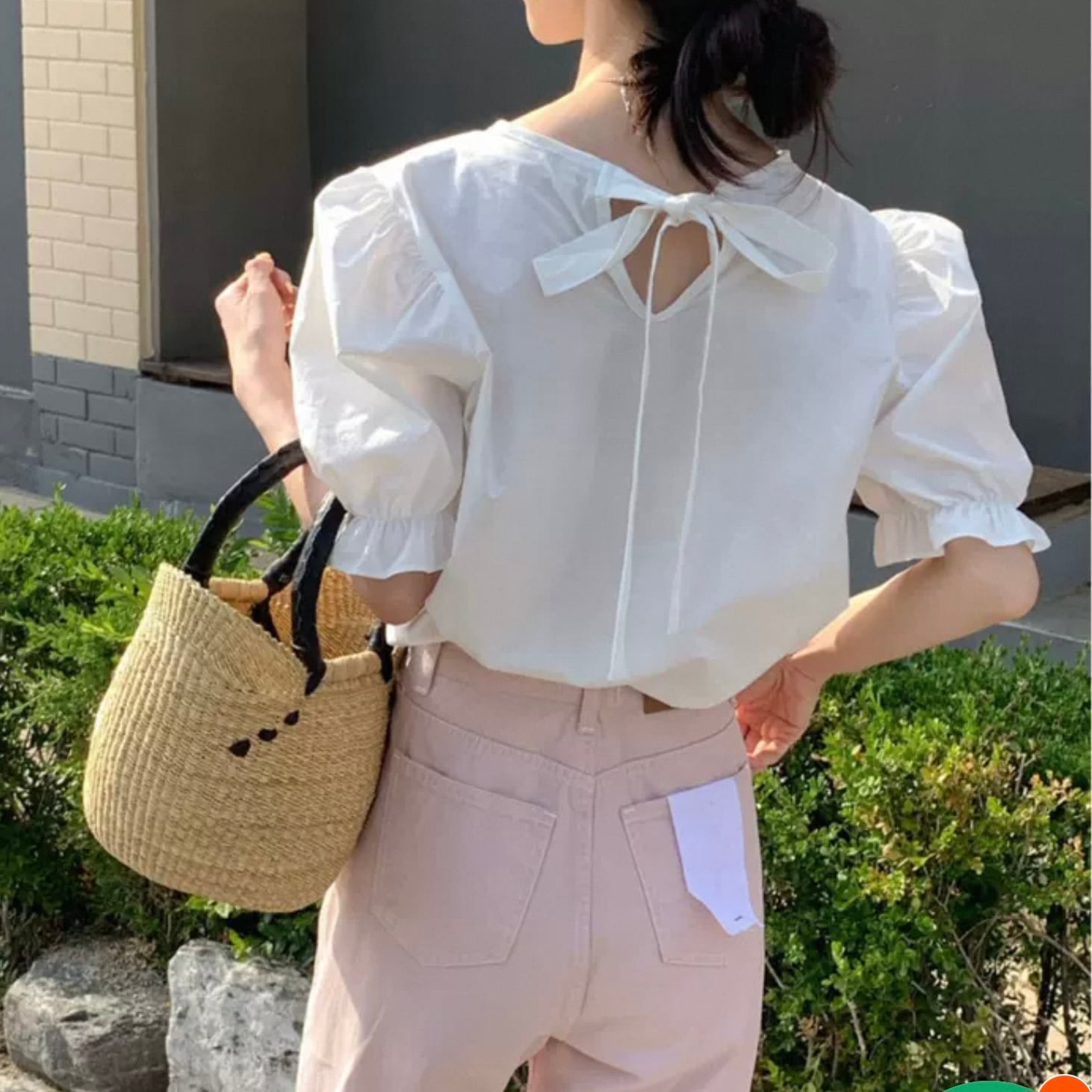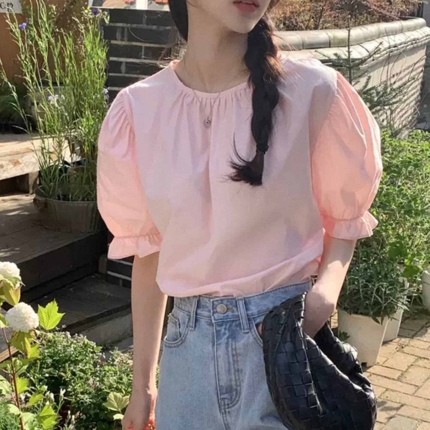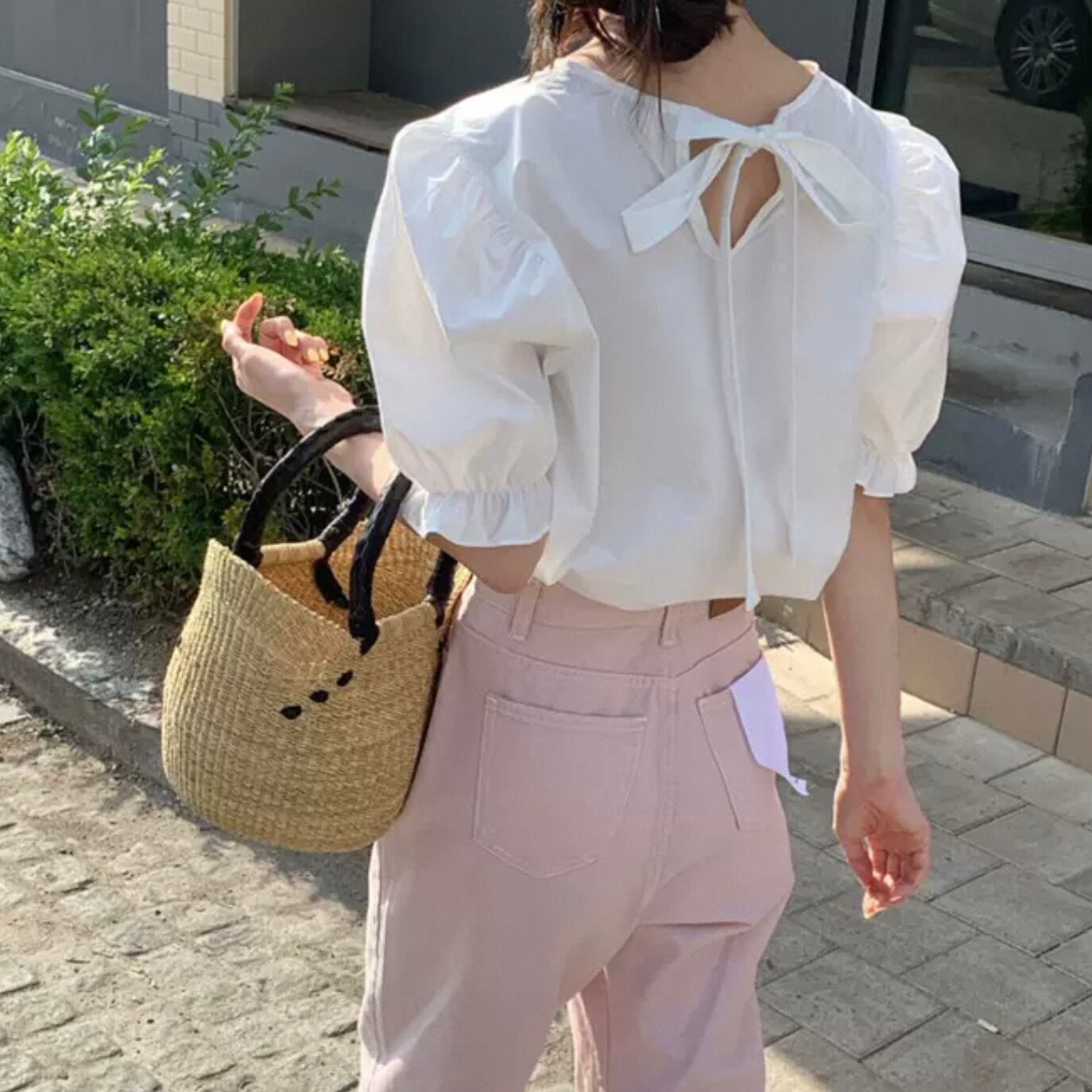 【tops】バックリボン半袖パフスリーブトップス2色 HK0120